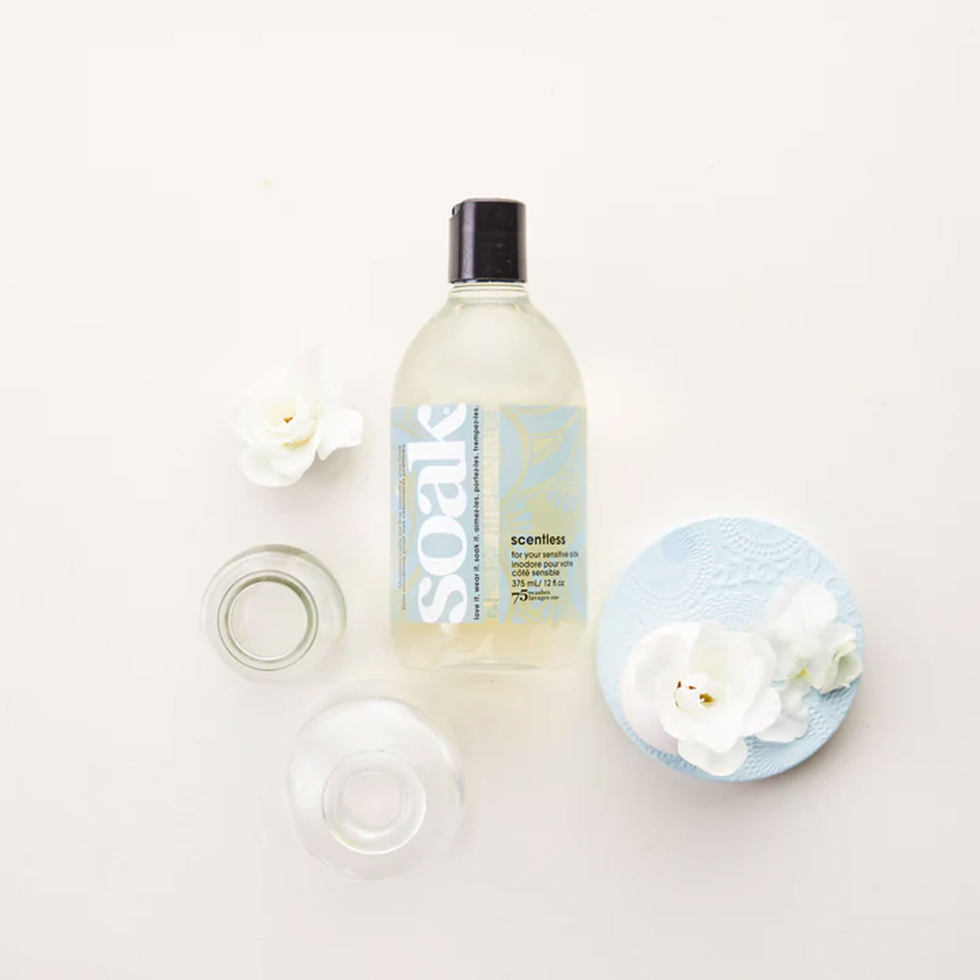 Enjoy quick and easy laundry care with Soak laundry soap. This gentle, no-rinse laundry soap is safe for hand or machine washing, perfect for the clothes you love. Choose the Scentless version for your sensitive side. Scentless keeps your washables soft, clean and fragrance-free.