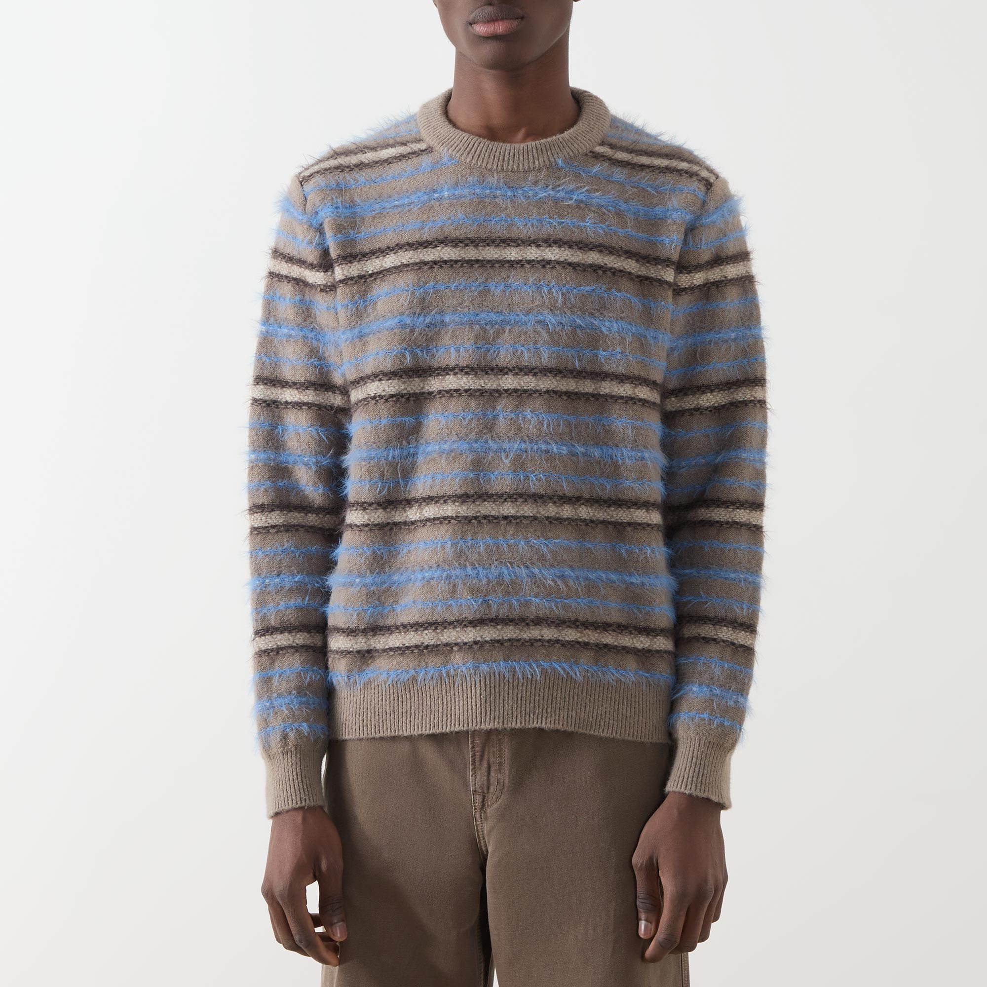 - Crew neckline, long sleeves, striped, straight hemline, ribbed trims