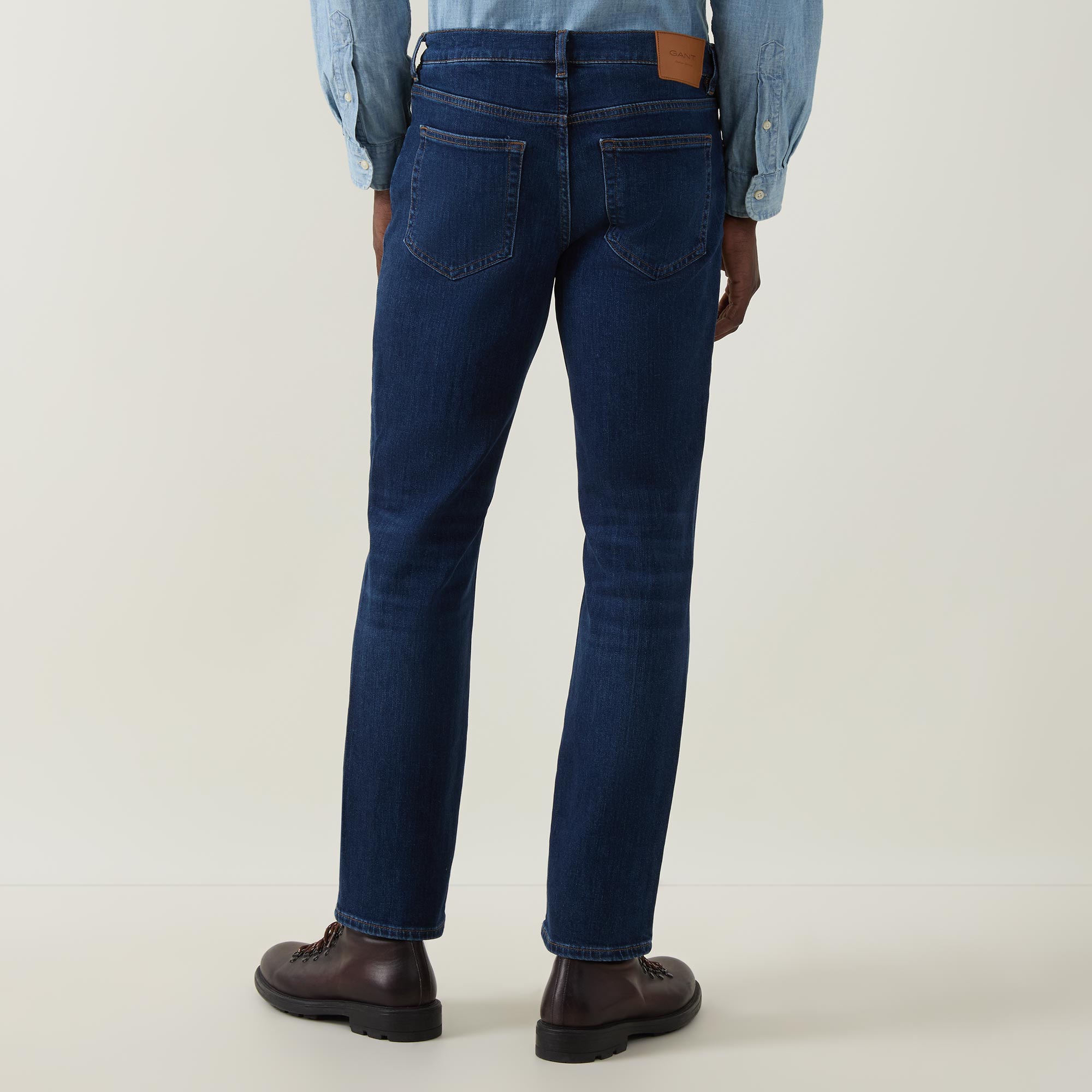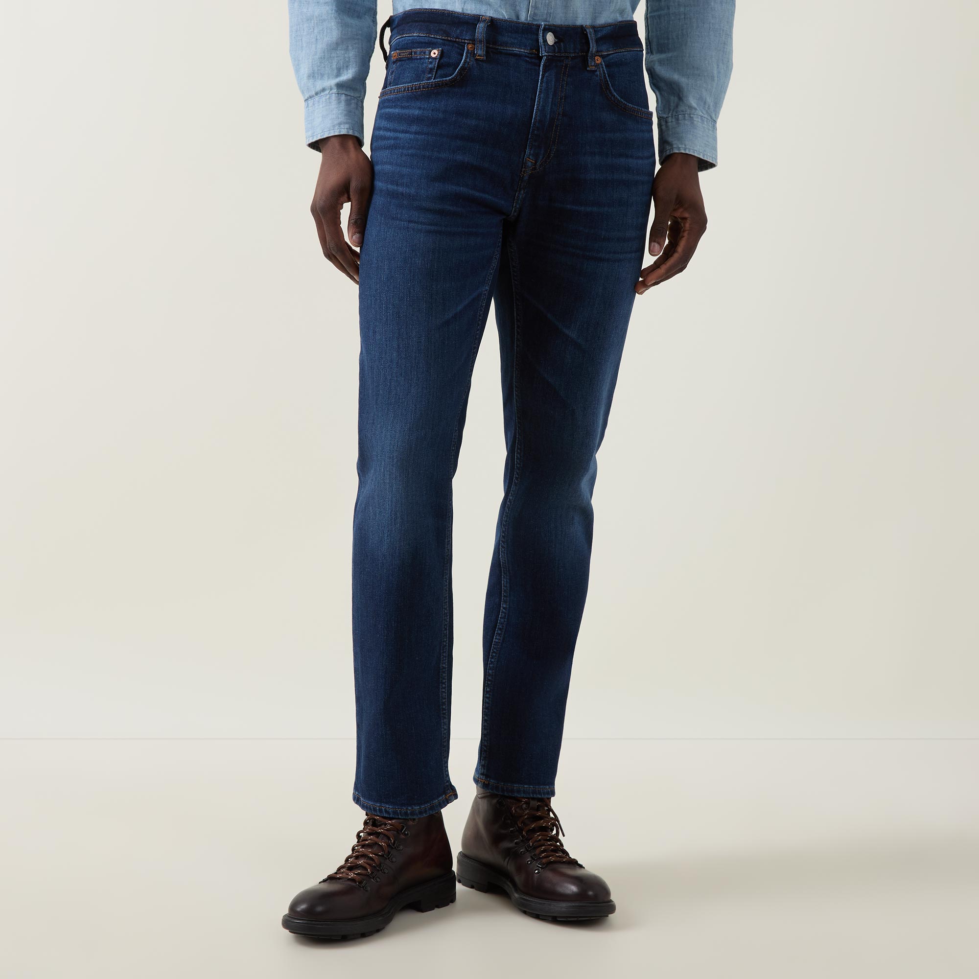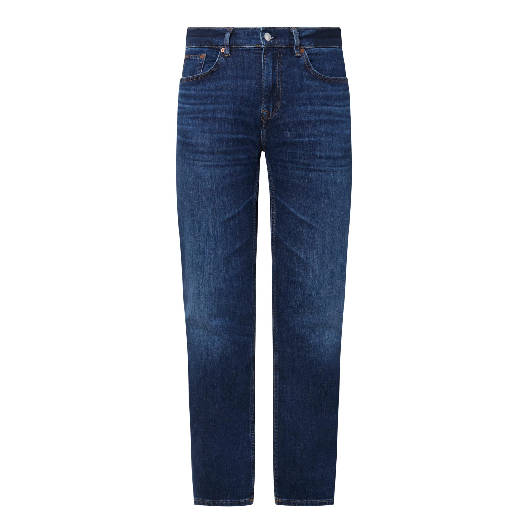 • Button and fly zip fastening, belt loops, five-pocket style, whiskering and faded details, tobacco stitching, logo badge, comfort stretch denim