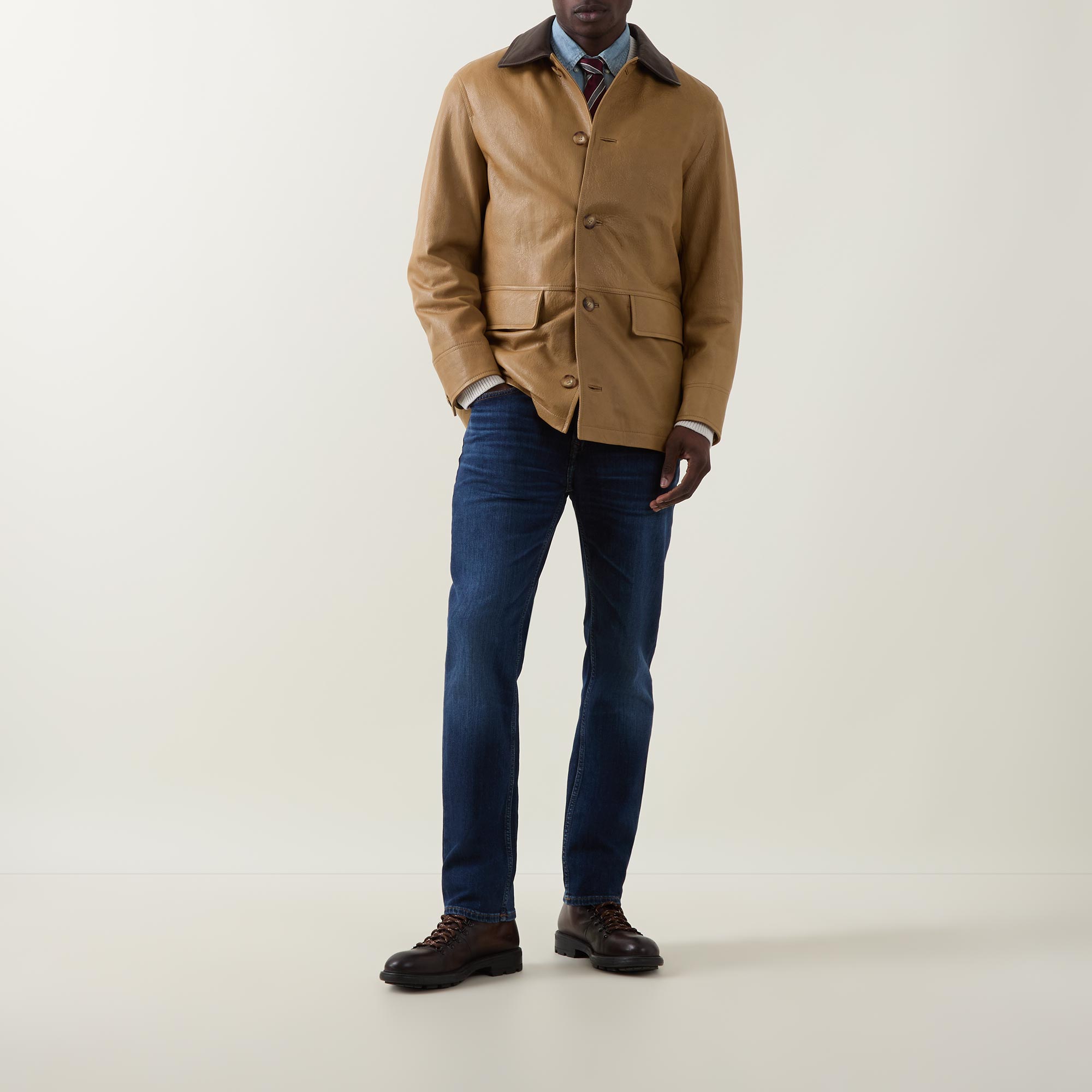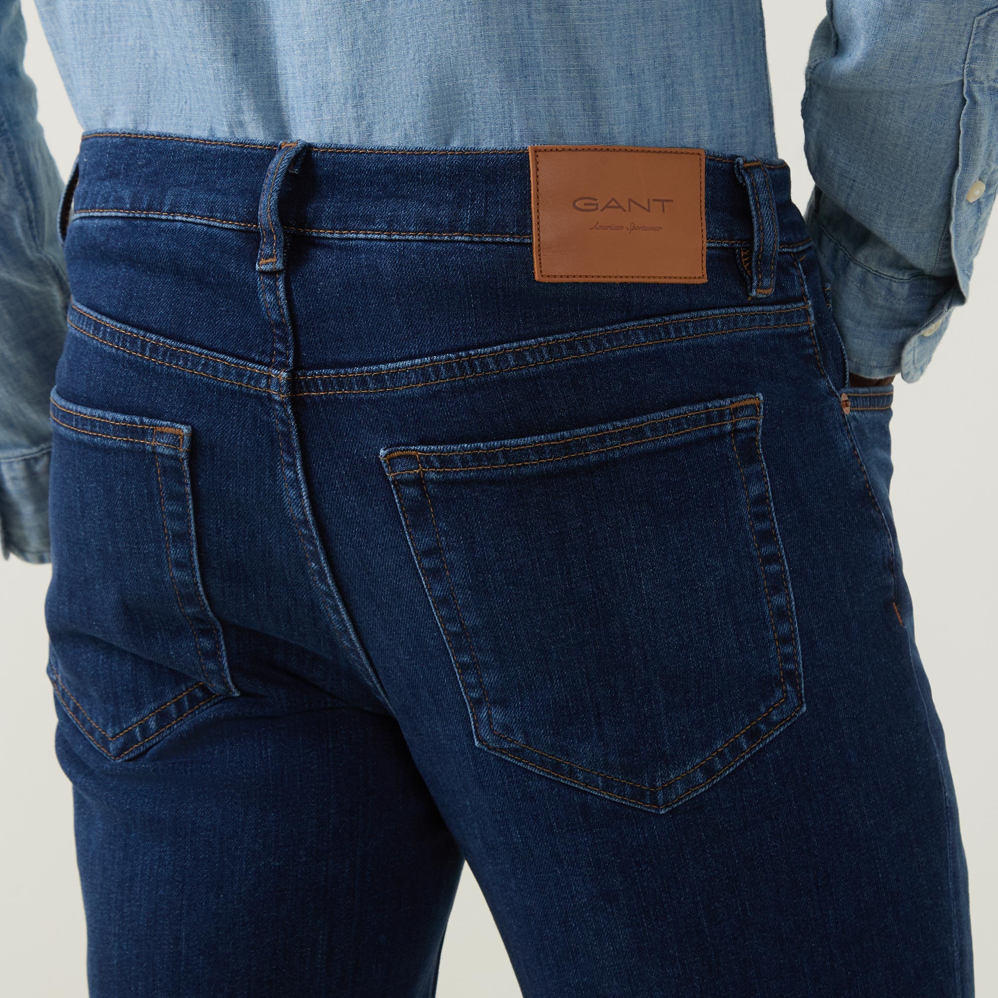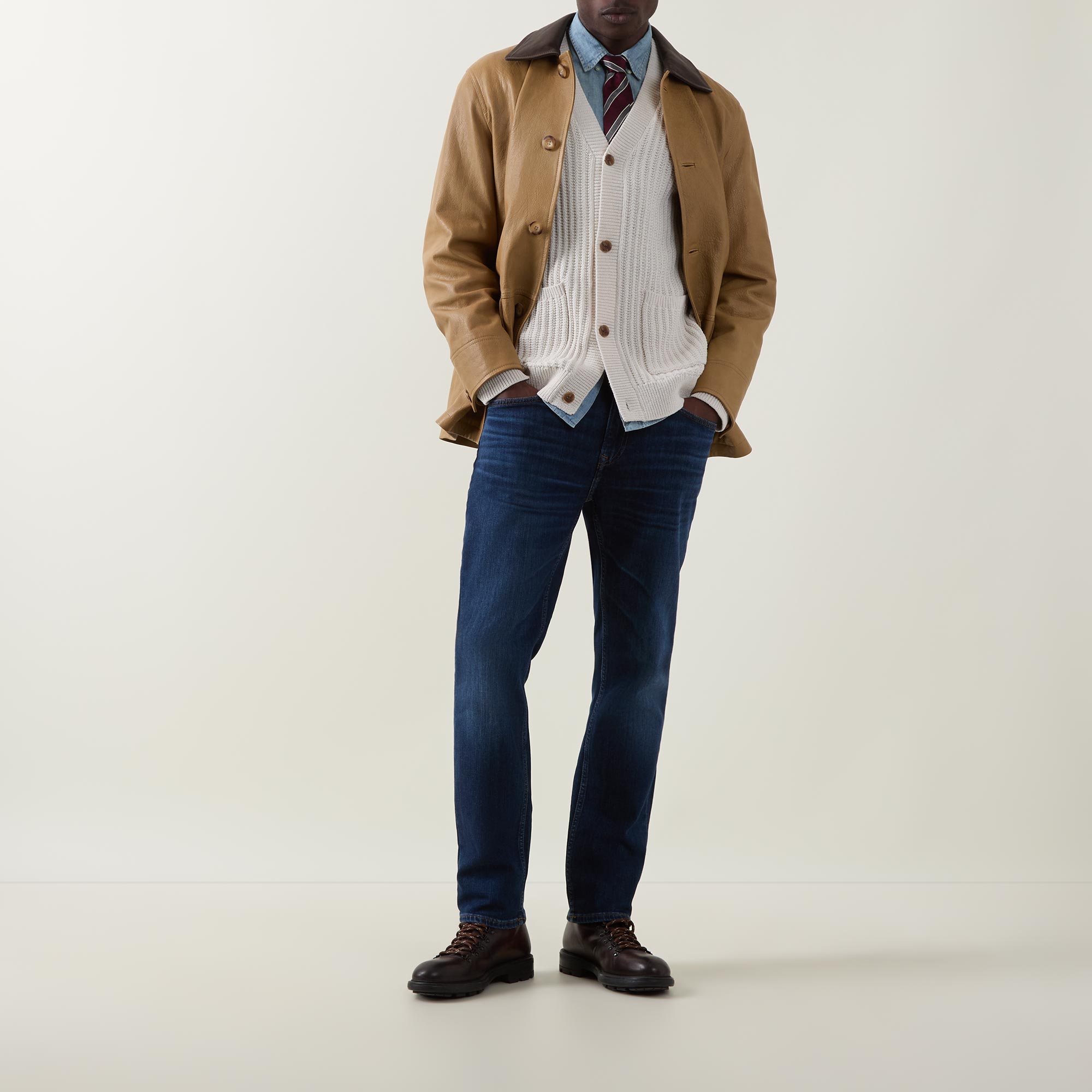 • Button and fly zip fastening, belt loops, five-pocket style, whiskering and faded details, tobacco stitching, logo badge, comfort stretch denim