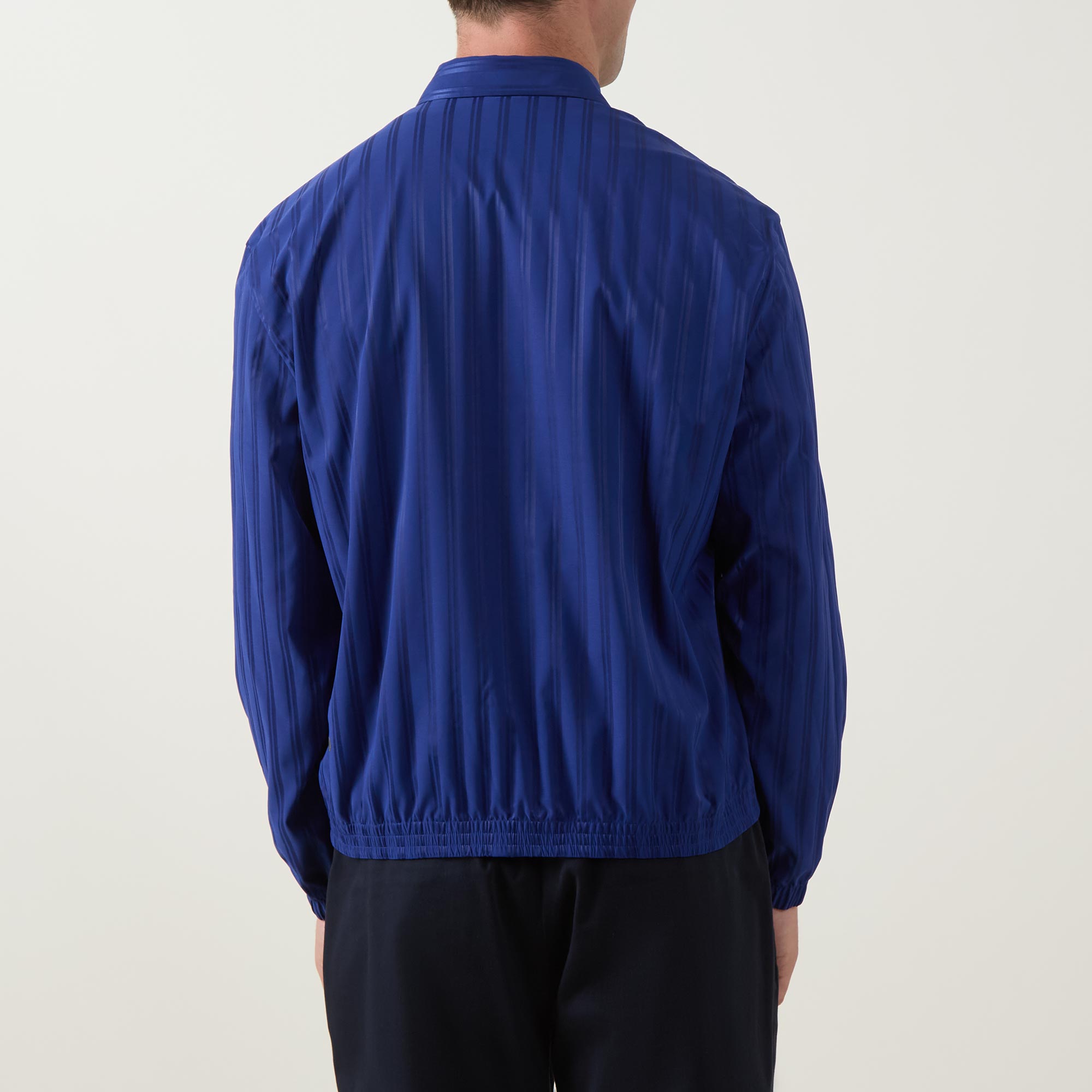 Shine on. Sleek satin fabric with a subtle stripe elevate this streetwear-inspired jacket from post-workout sweats to high-polish style.