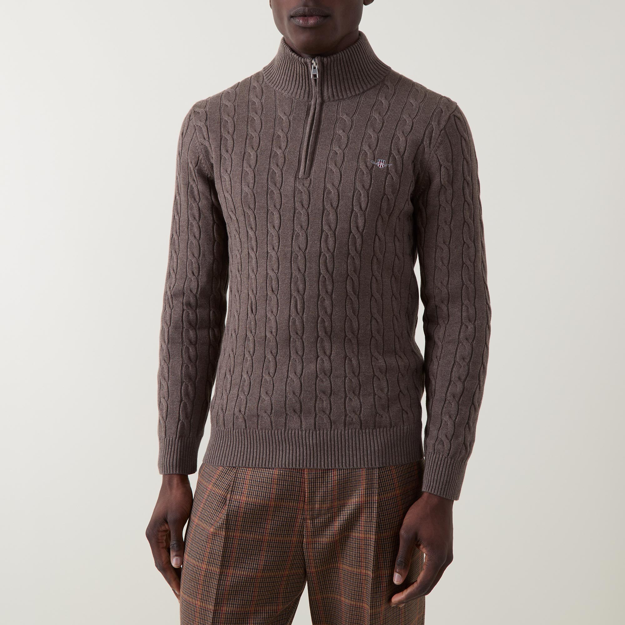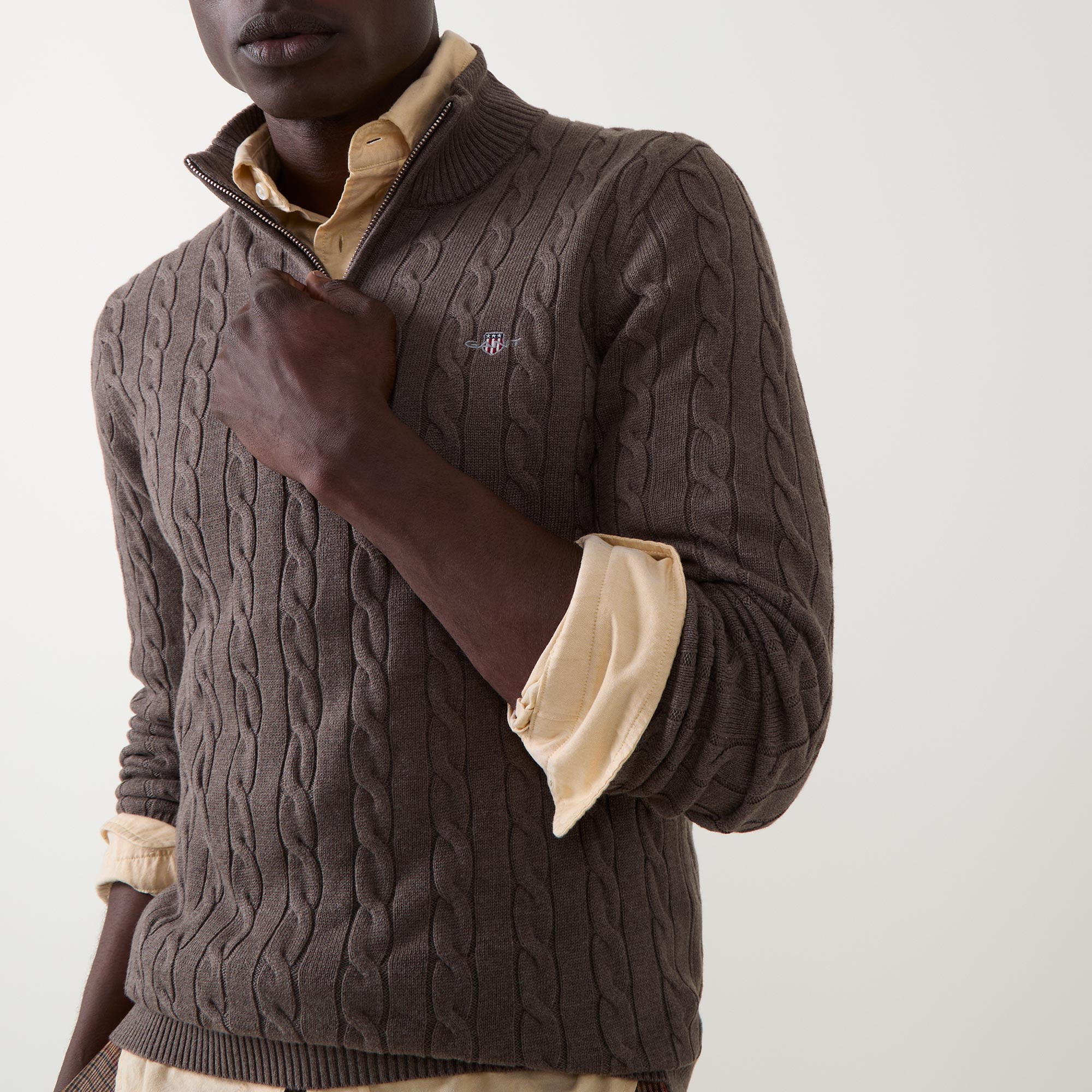 GANT Shield Logo Half-Zip Cable Knit Sweater