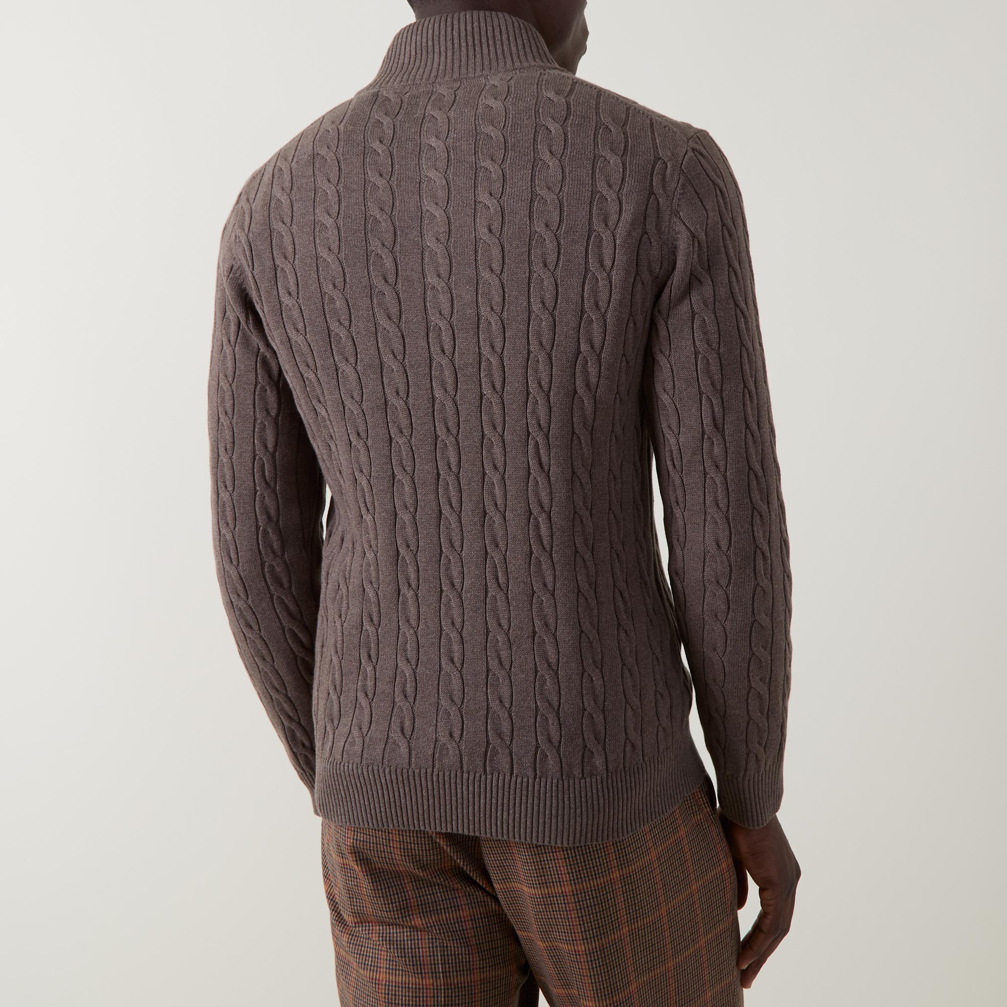 - Stand-up collar, long sleeves, half zip-fastening placket, shield logo embroidery, ribbed trims, cable-knit finish