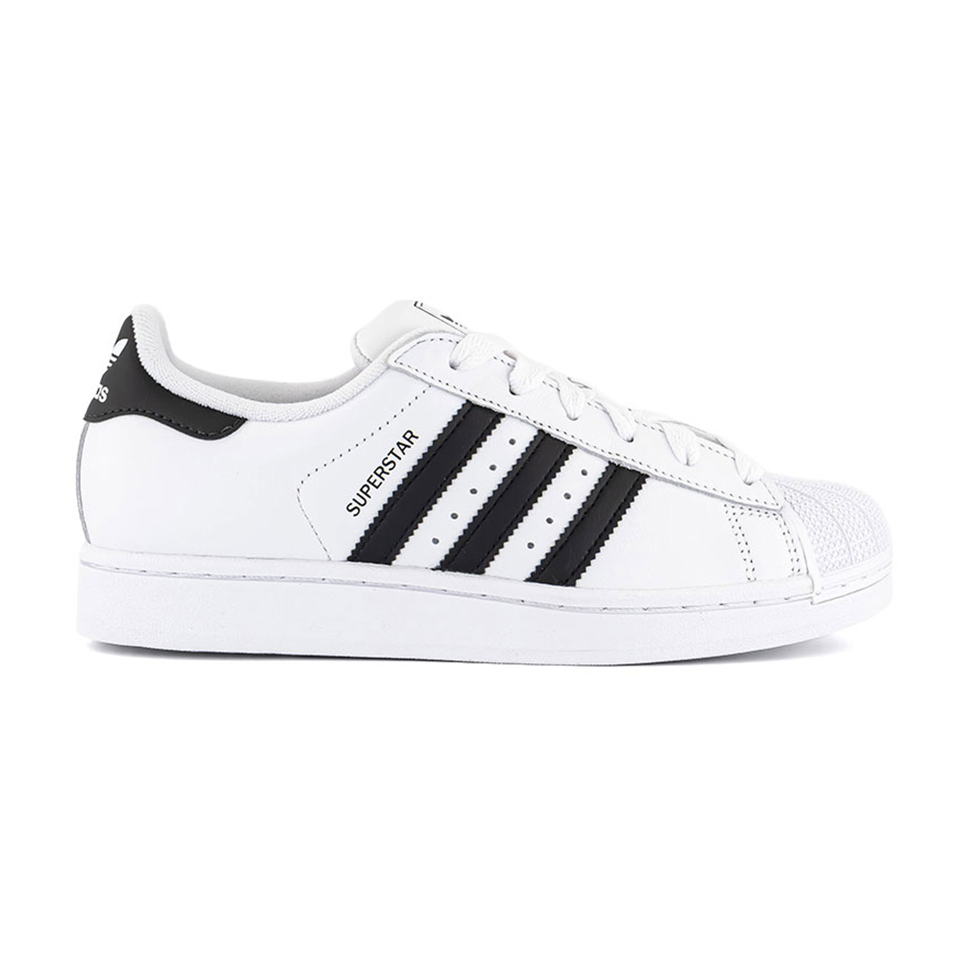 • Distinctive rubber shell toe, padded tongue, lace up fastening, grippy rubber sole, triple stripe detailing, branded details