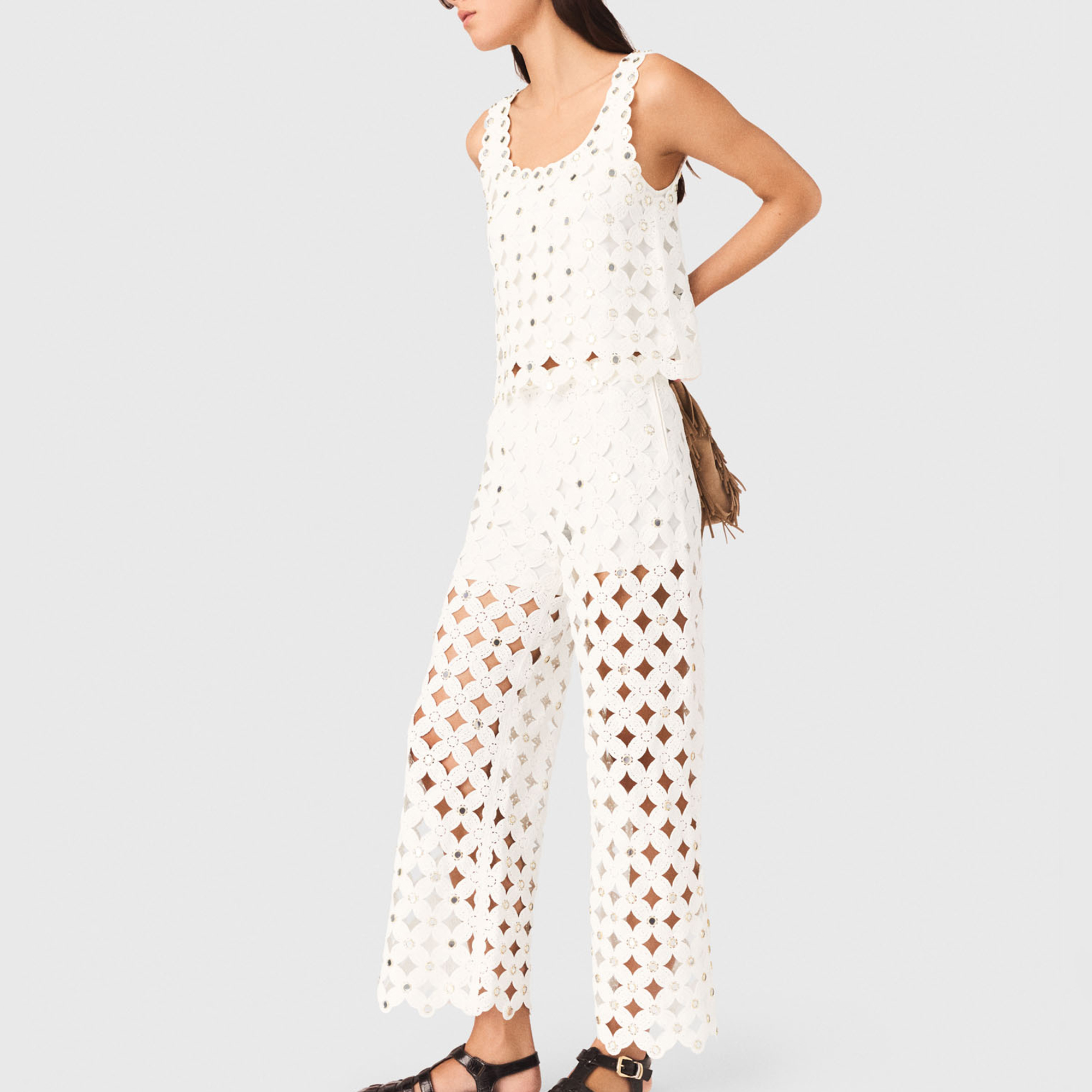 MAJE Mirror Crochet Straight Leg Trousers