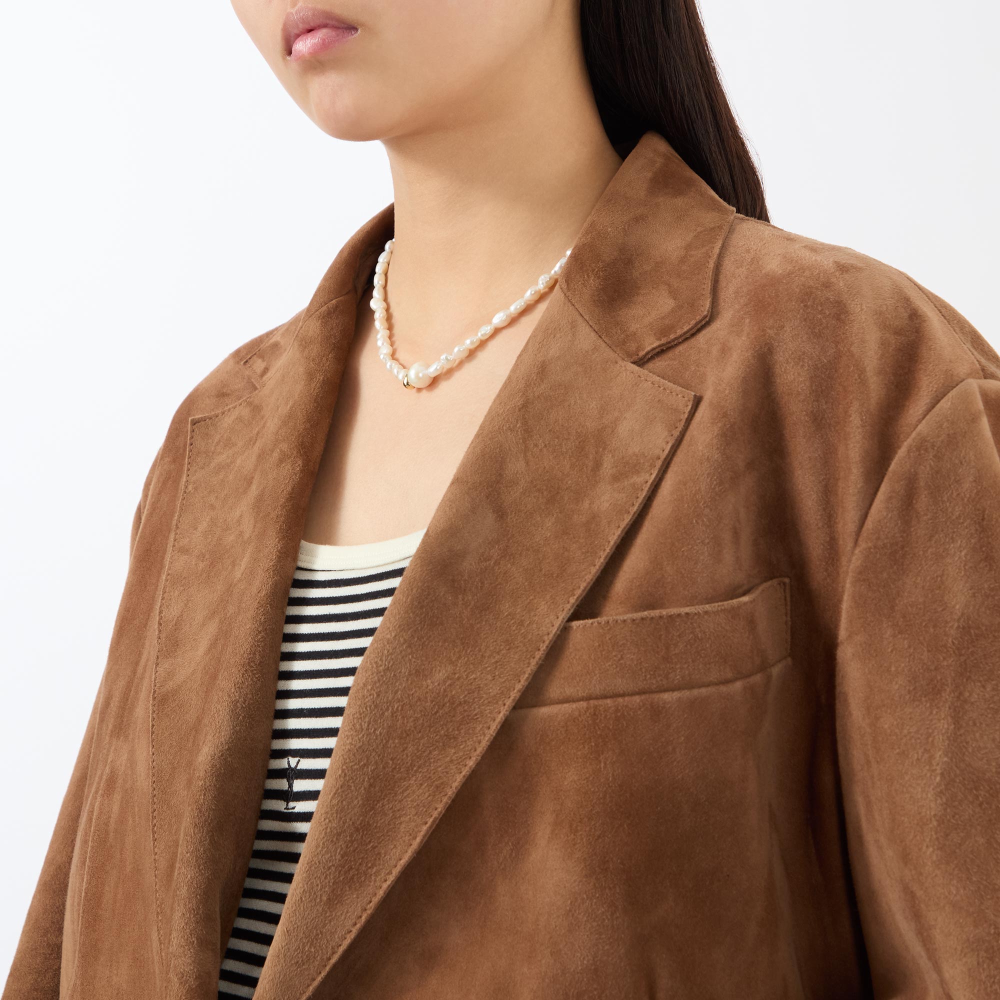 - Lobster claw clasp, gold-tone hardware, engraved logo nameplate, pearl beaded design