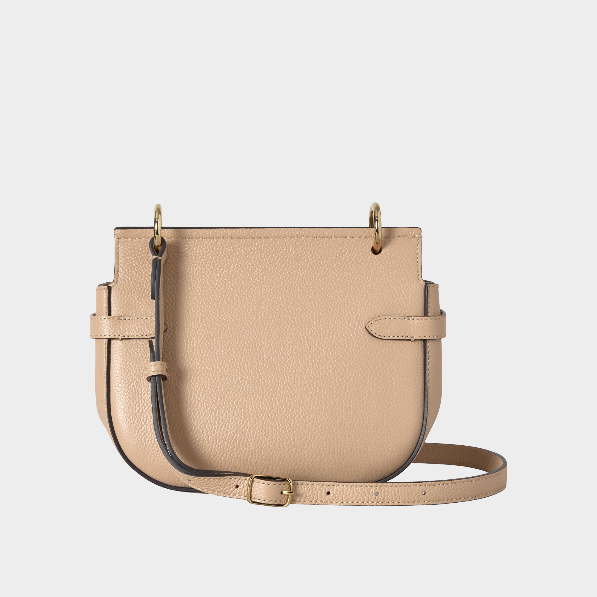 • Equestrian styling, geometrical Rider's Lock closure, soft gold-tone hardware finish, adjustable shoulder strap, functional buckle detailing, foil-embossed signature logo, side belt detail