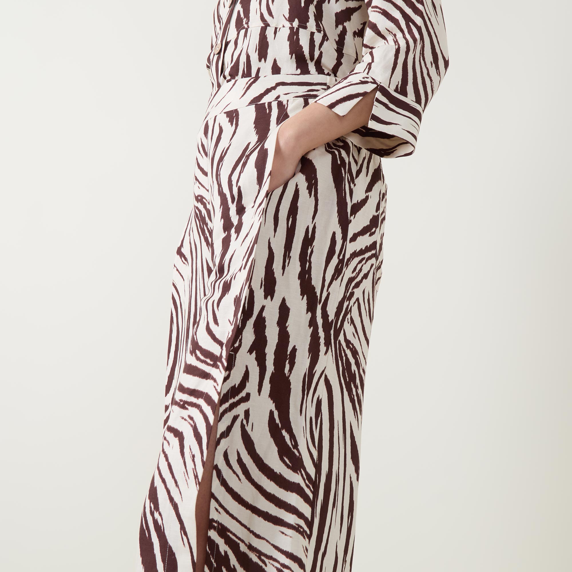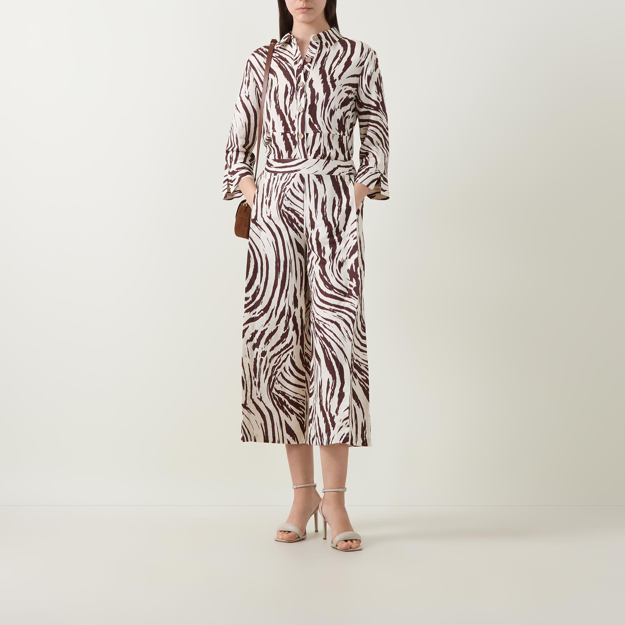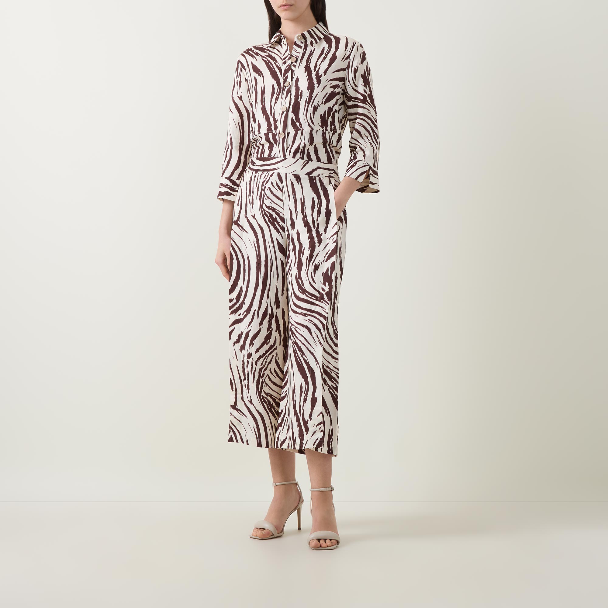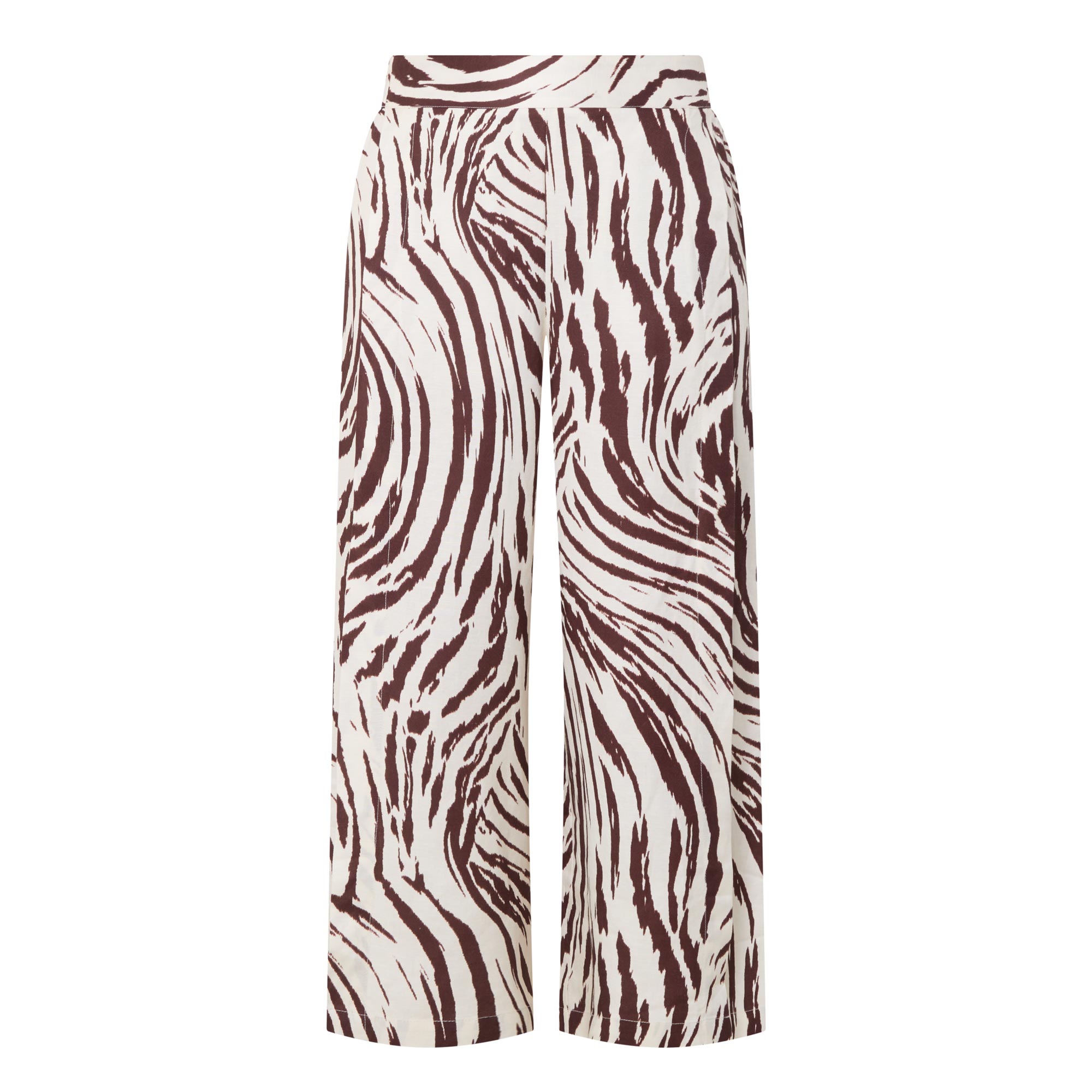 • Part-elasticated waist, pull-on style, wide-cut culottes legs with slit side seams, animal print, side entry pockets, rear welt pockets