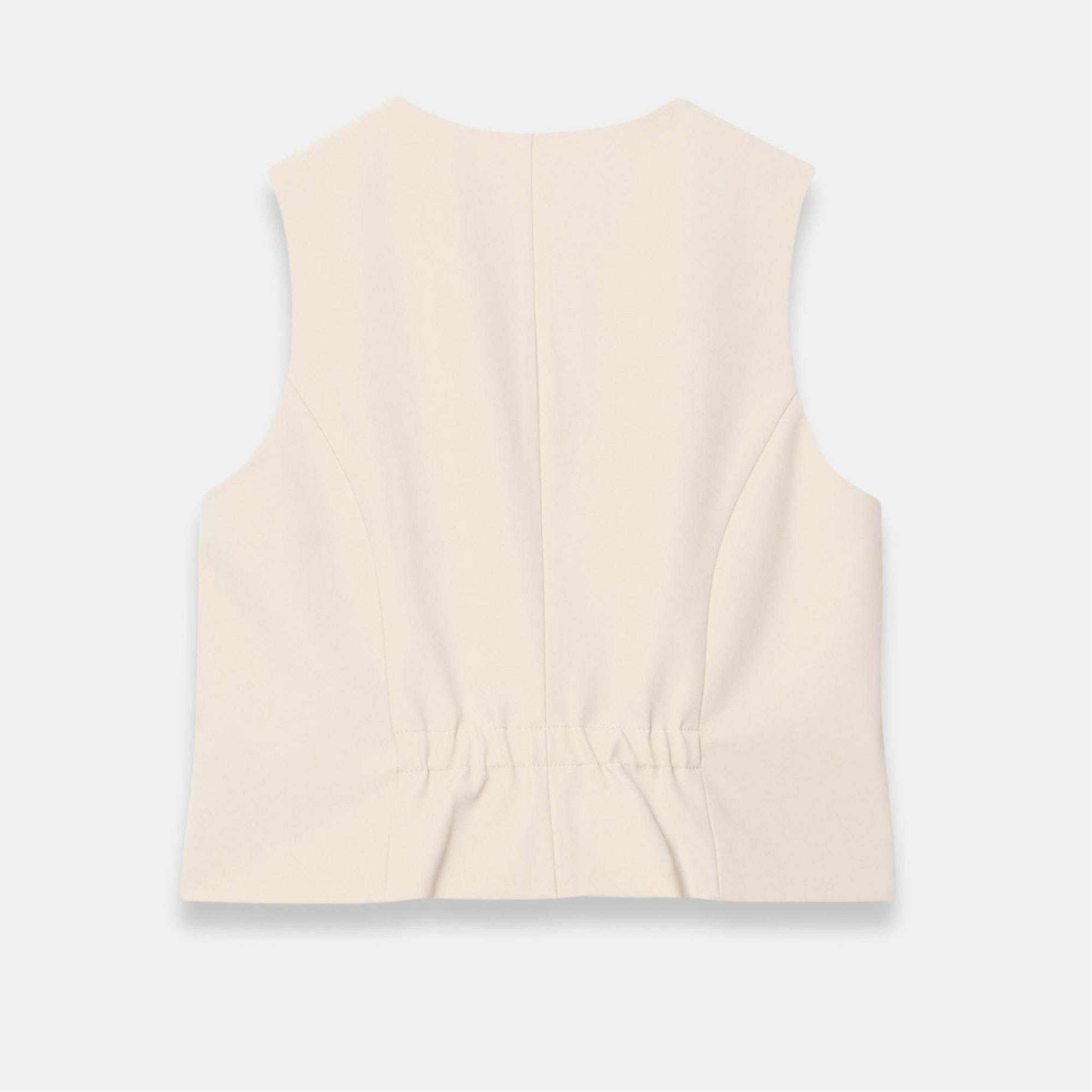 - V-neckline, welt pockets, split front, gathered back, front button fastenings, fully lined