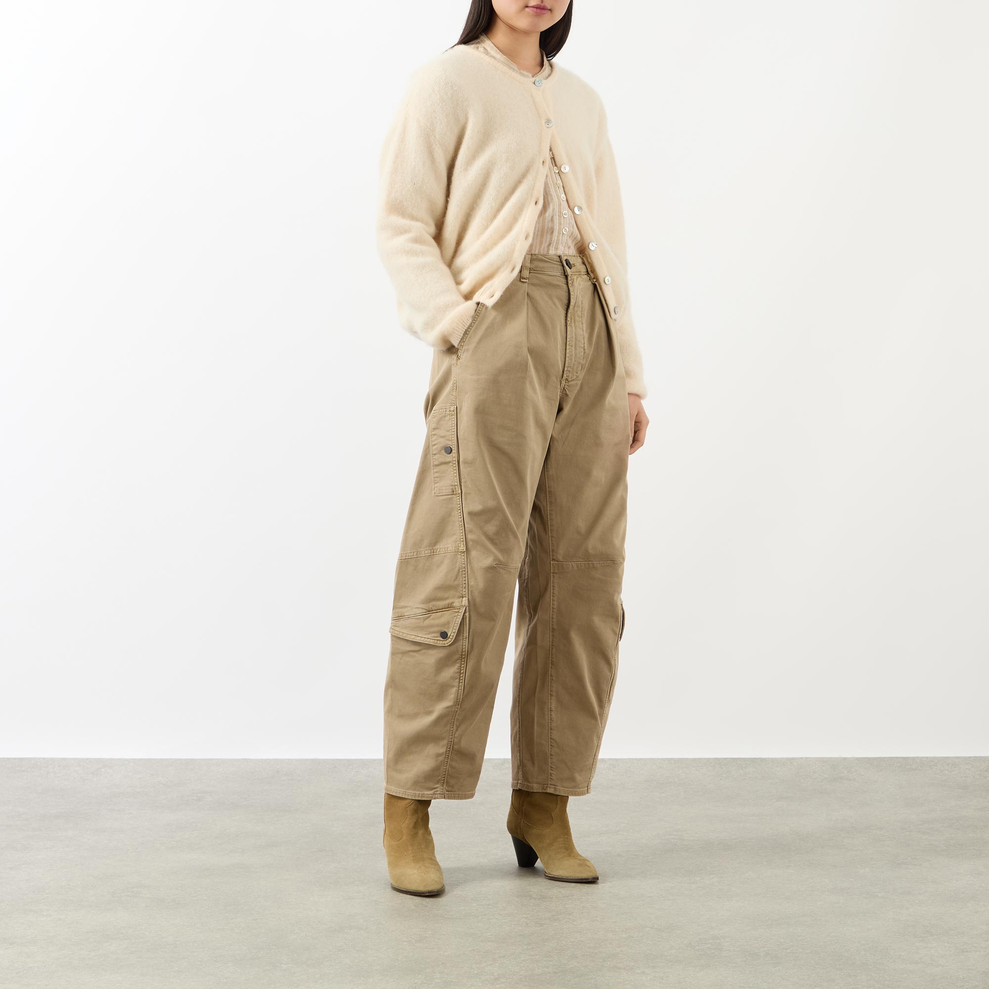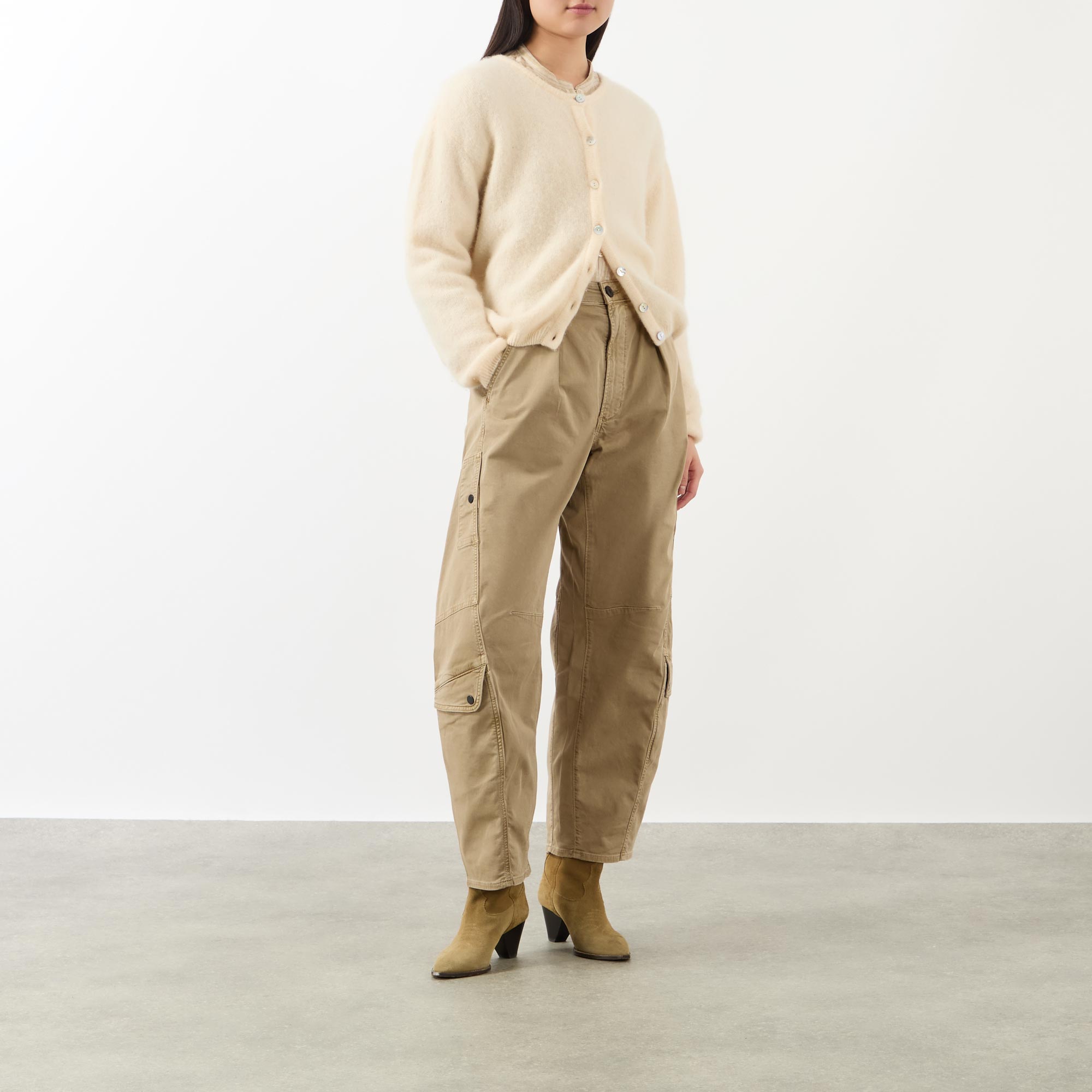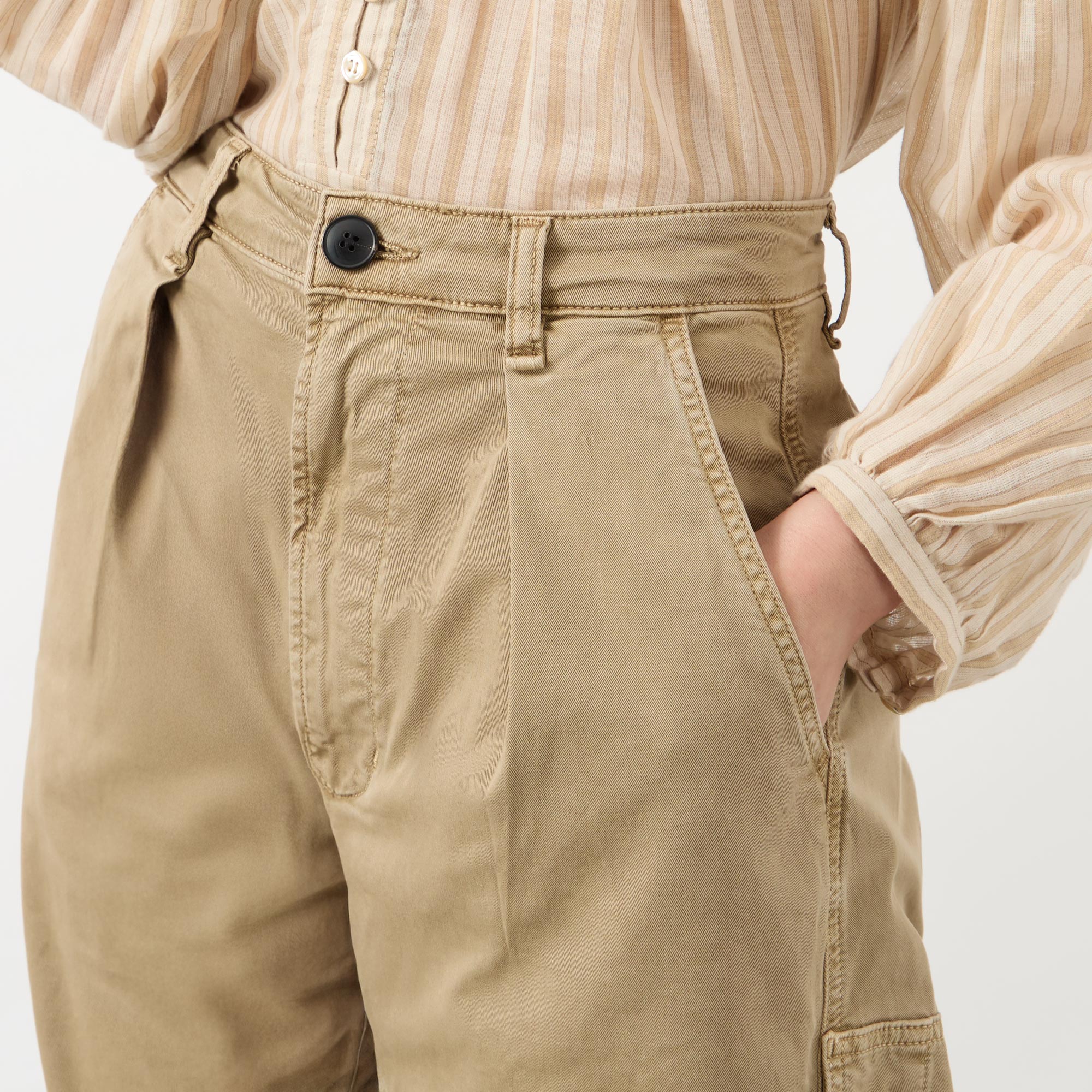 - Zip fly fastening, belt loops, four pockets, zip fly fastening, cargo pockets