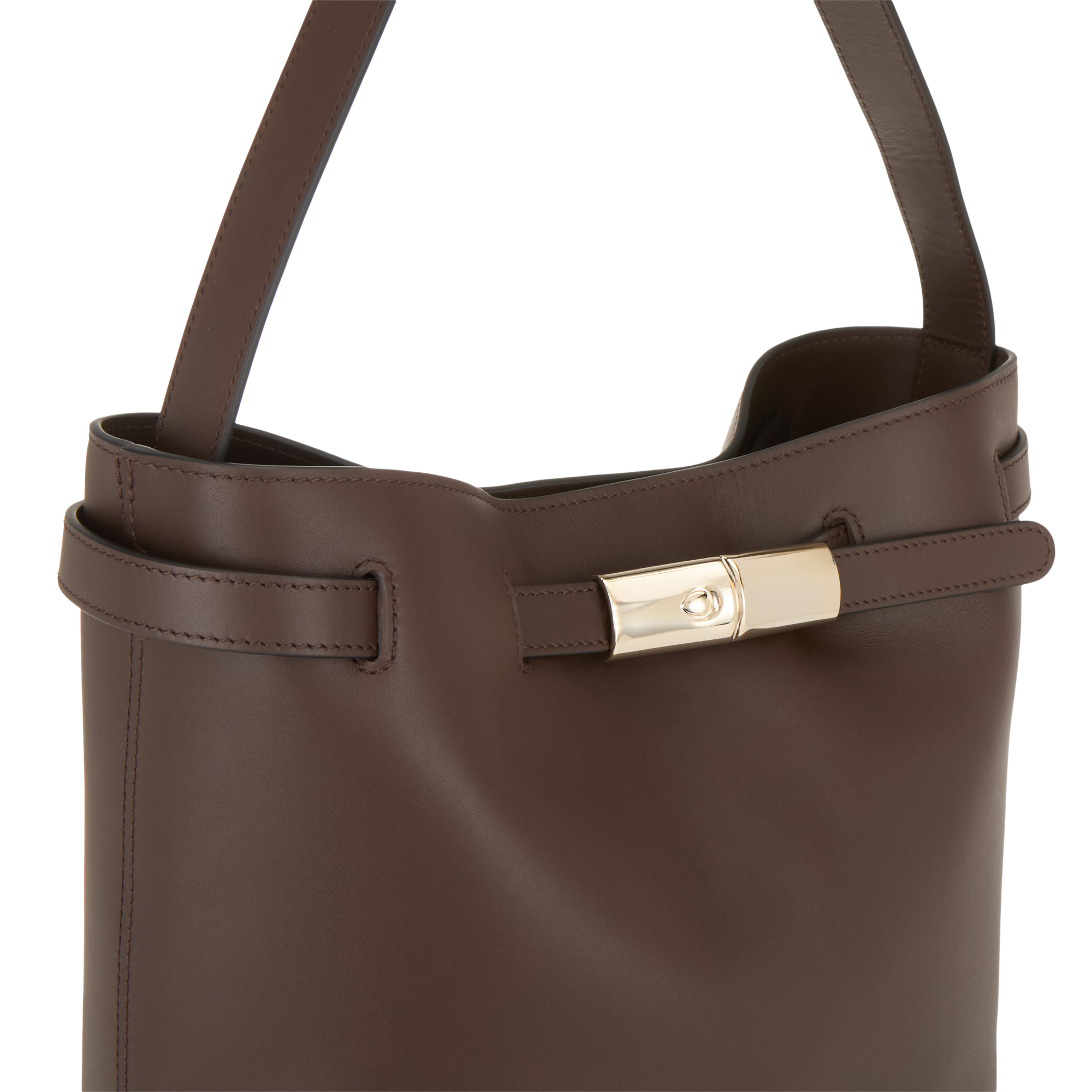 - Adjustable shoulder strap, magnetic snap fastening, belt detail with clasp hardware, gold-tone hardware, structured silhouette, tonal stitching, smooth finish