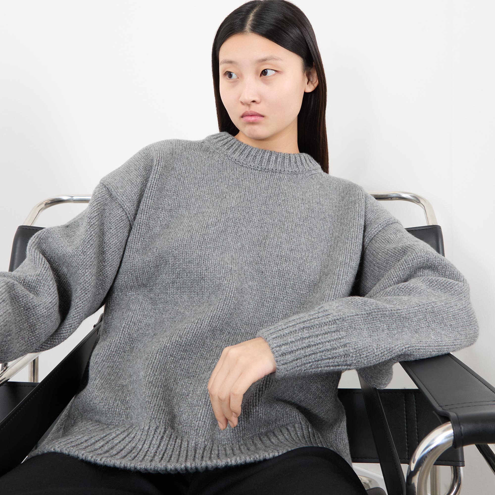The Ophelia sweater from the Row is part of the brand's Essentials collection. Spun from a heavyweight wool-cashmere blend, it features a crew neckline and long sleeves, finished with ribbed trims and dropped shoulders.
