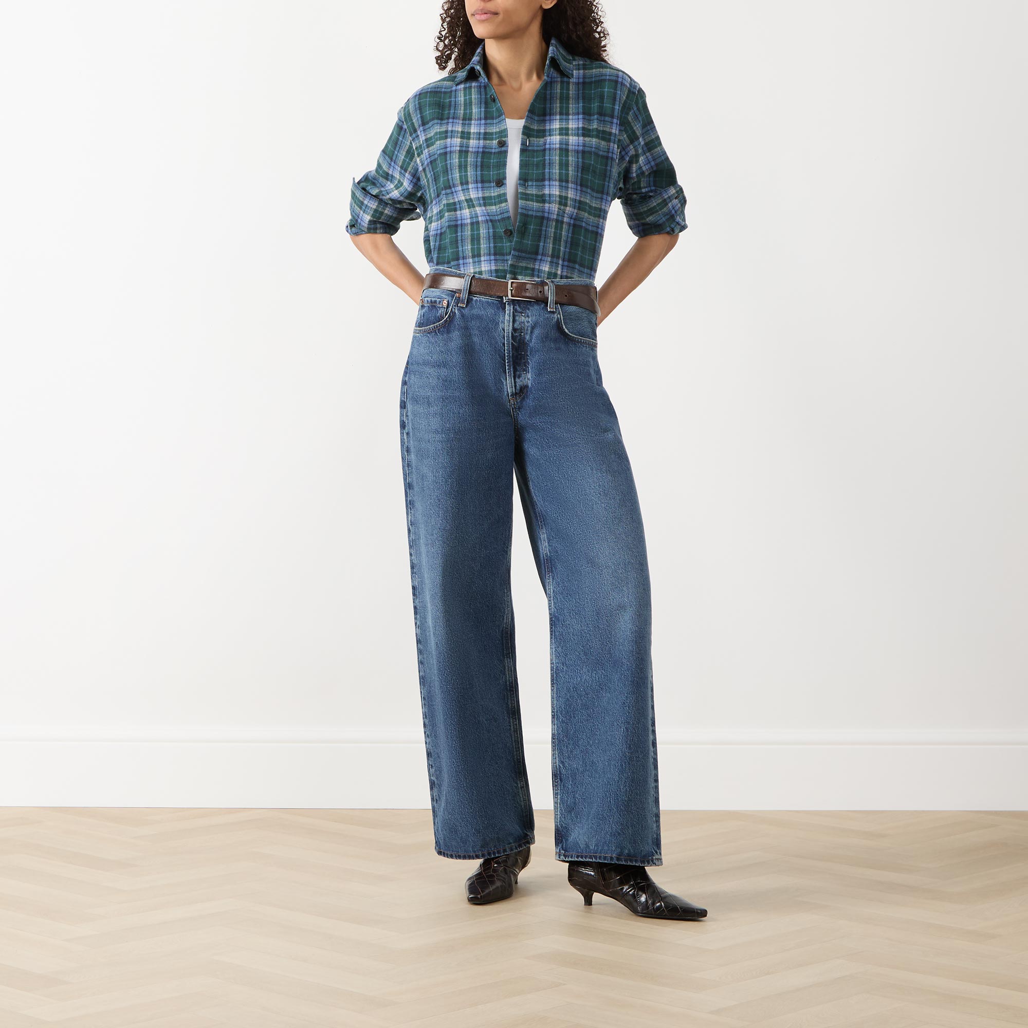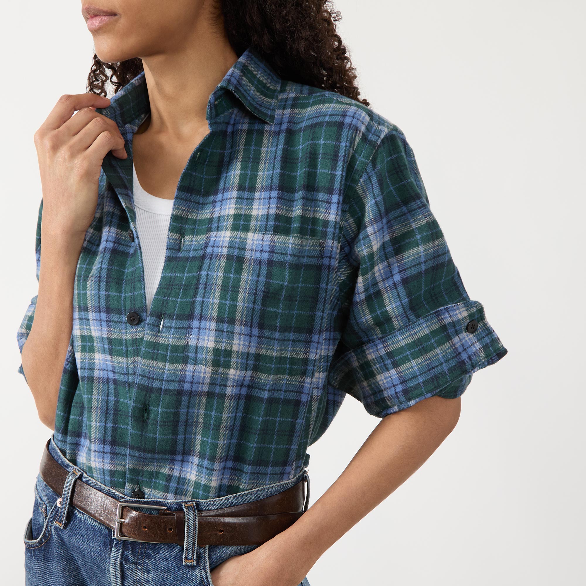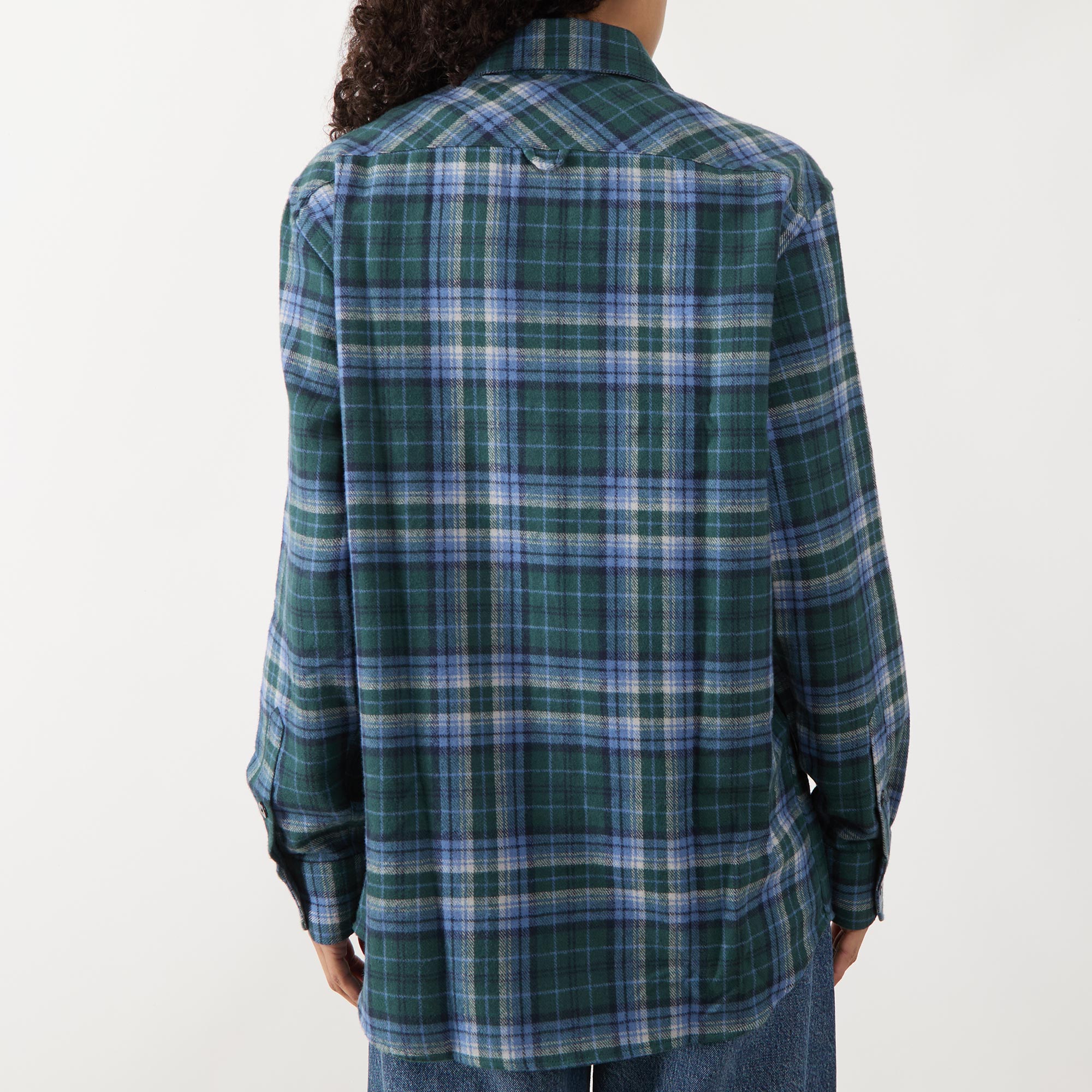 • Point collar, dropped shoulders, long sleeves, buttoned cuffs, front button fastening, one chest patch pocket, curved hem, rear locker loop, check print, flannel finish