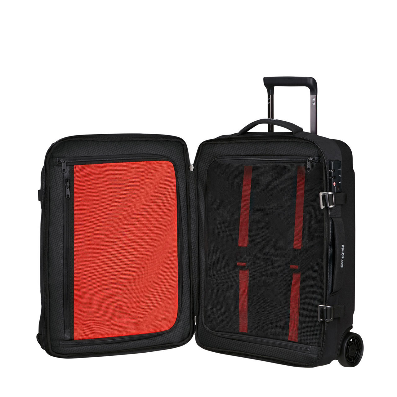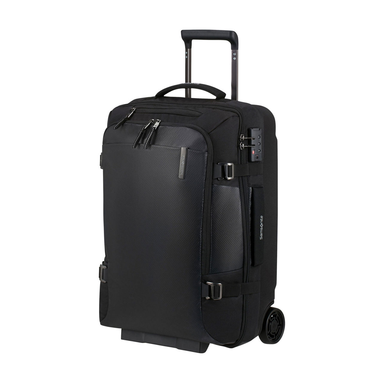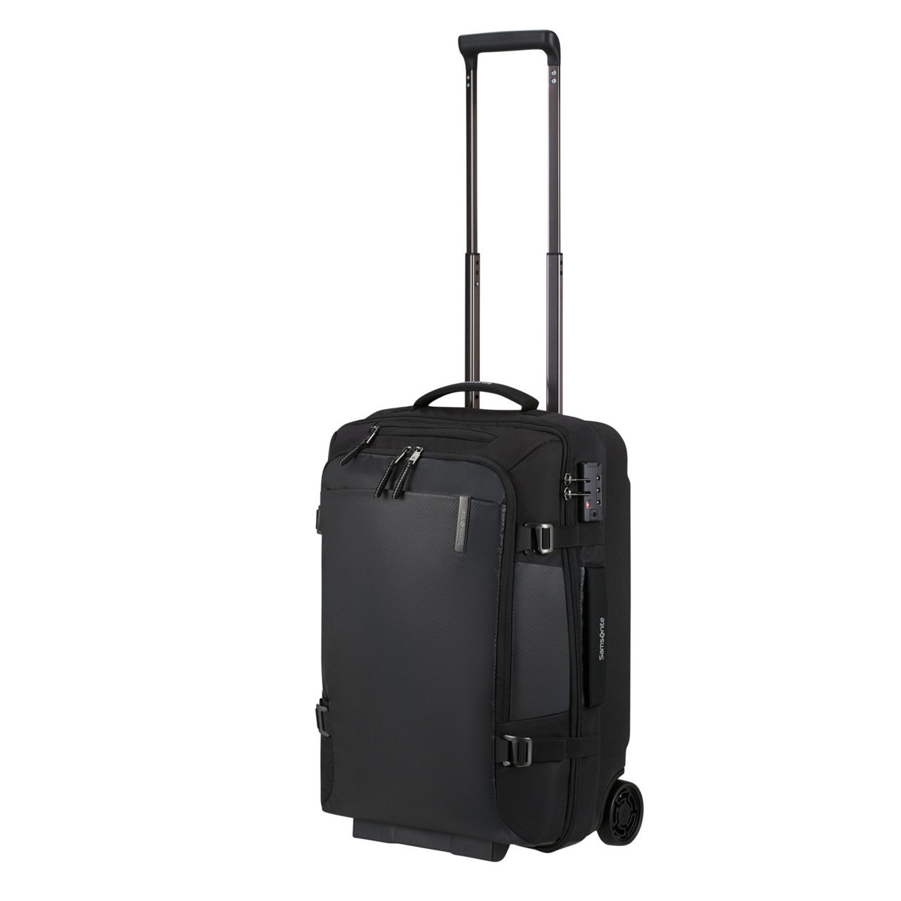 - Features: Softside, zip fastening, Combi lock with TSA, top and side handles, reflective details, compression straps, bottom grip, integrated ID tag, double tube wheel handle, two shock and noise reducing suspension wheels