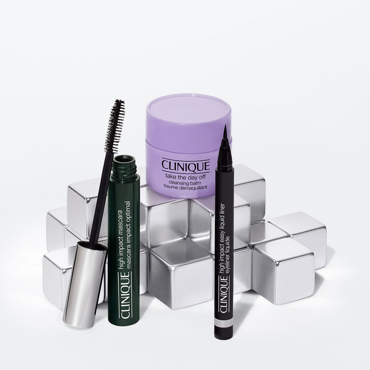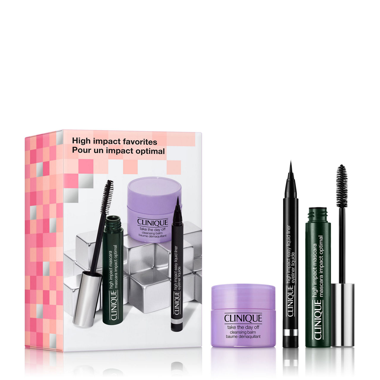 Description: This 3-piece gift set from Clinique features a mix of High Impact™ eye products and a make-up removing balm.