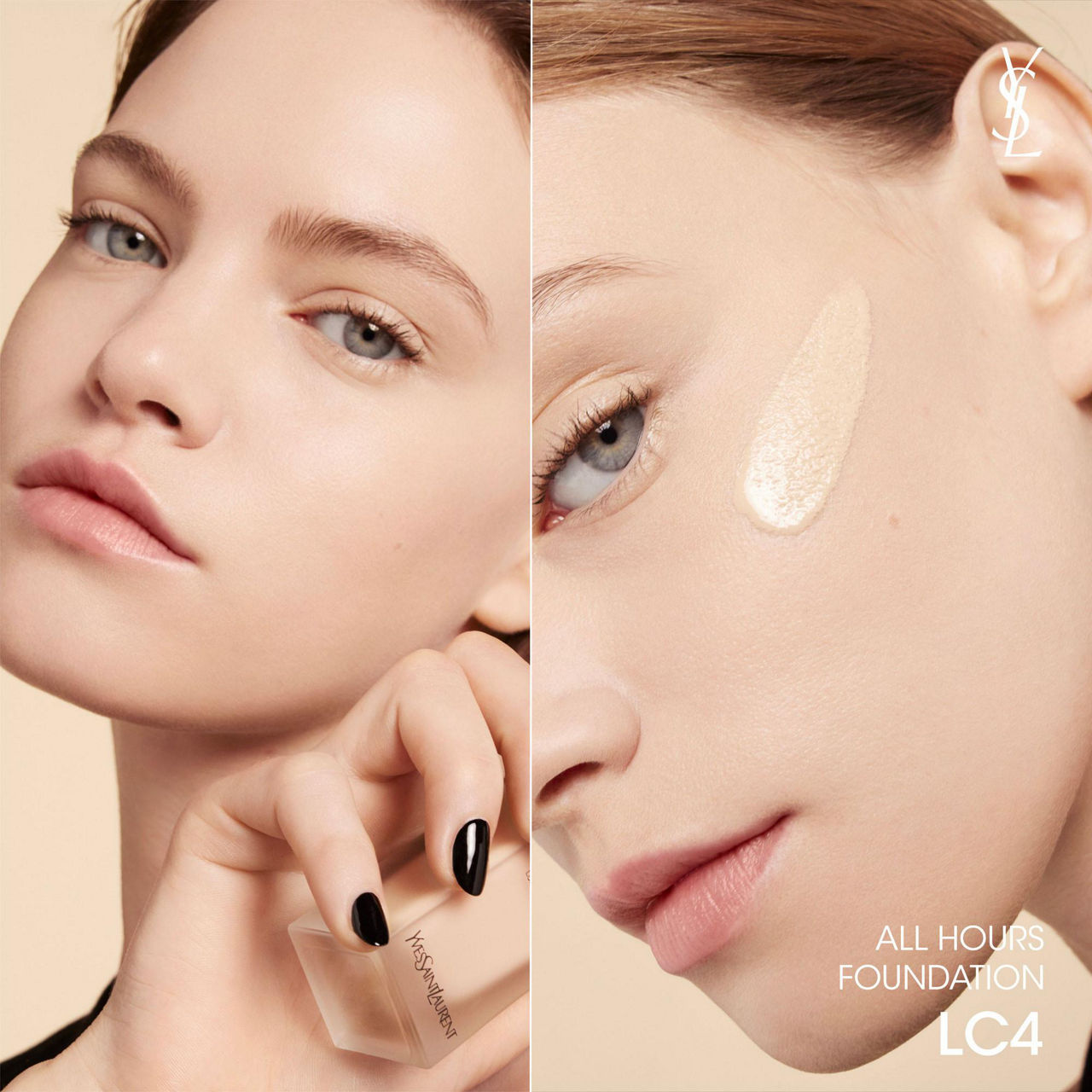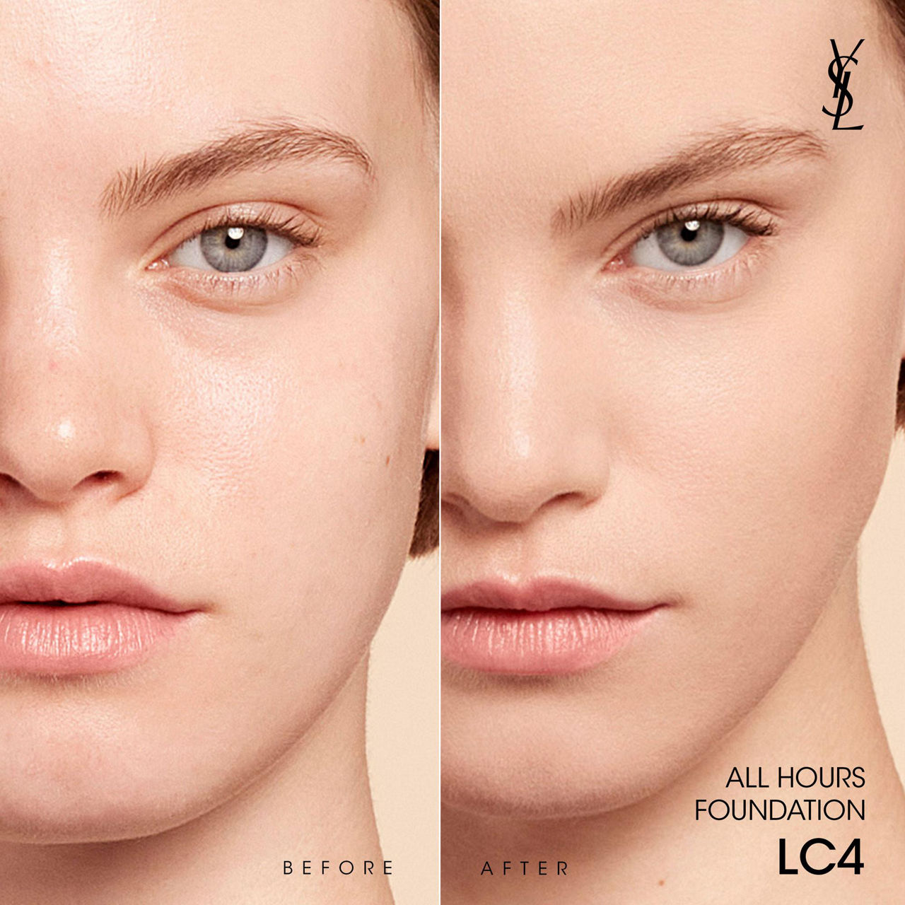 New and Improved YSL Beauty All Hours Foundation, the complexion that you can rely on all day. Now with an upgraded, breathable formula that provides up to 24H full coverage and a weightless light as air feel, as if your skin was bare.