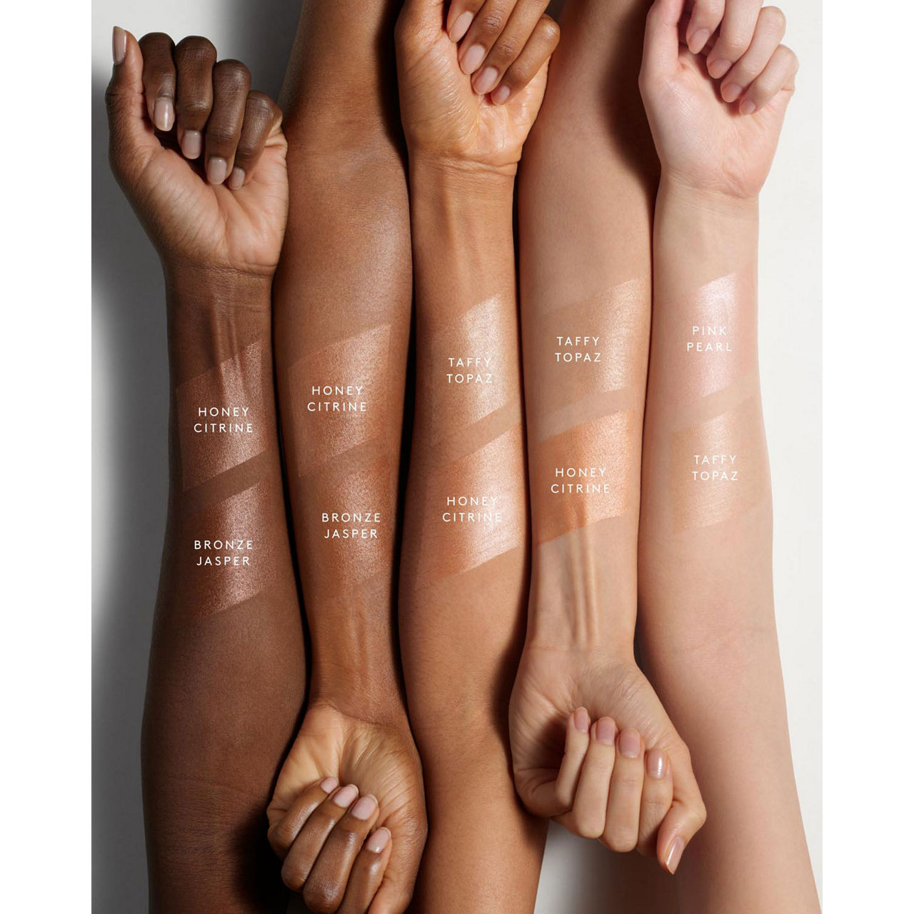 - All Ingredients: Taffy Topaz: Aqua/Water/Eau, Glycereth-26, Dimethicone, Glycerin, Dipropylene Glycol, Triisostearin, 1,2-Hexanediol, Dipentaerythrityl Hexa C5-9 Acid Esters, Betaine, Mica, Phenoxyethanol, Isodecyl Neopentanoate, Sodium Hyaluronate, Cetearyl Olivate, Caprylic/Capric Triglyceride, Sorbitan Olivate, Hydroxyethyl Acrylate/Sodium Acryloyldimethyl Taurate Copolymer, C14-22 Alcohols, Tocopheryl Acetate, Squalane, Tromethamine, Carbomer, C12-20 Alkyl Glucoside, Punica Granatum Pericarp Extract, Synthetic Fluorphlogopite, Polysorbate 60, Disodium Edta, Silica, Tin Oxide, Sorbitan Isostearate, Xanthan Gum, Opuntia Tuna Fruit Extract, Silybum Marianum Extract, Alumina, Iron Oxides (Ci 77491), Titanium Dioxide (Ci 77891)