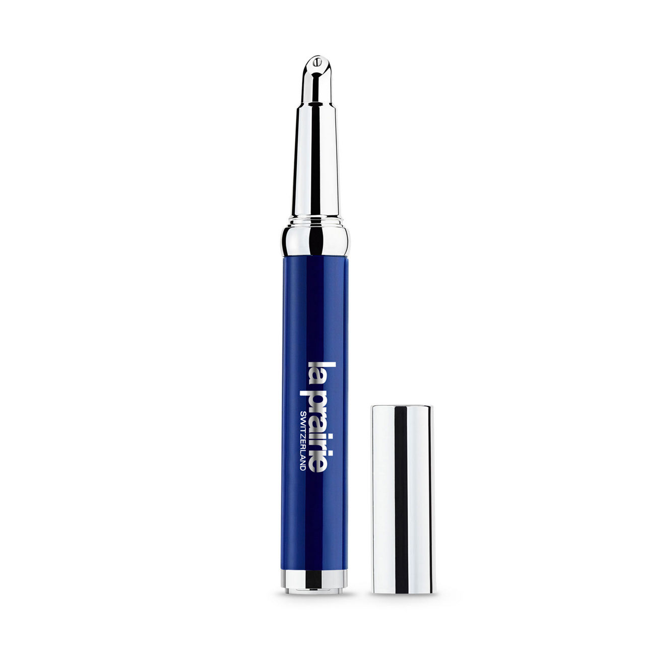 It blends seamlessly to give the eye a luminous, fresh look. Its minimal cobalt blue case includes a cool metal tip to gently massage away under-eye puffiness, while an innovative ring releases the perfect dose.