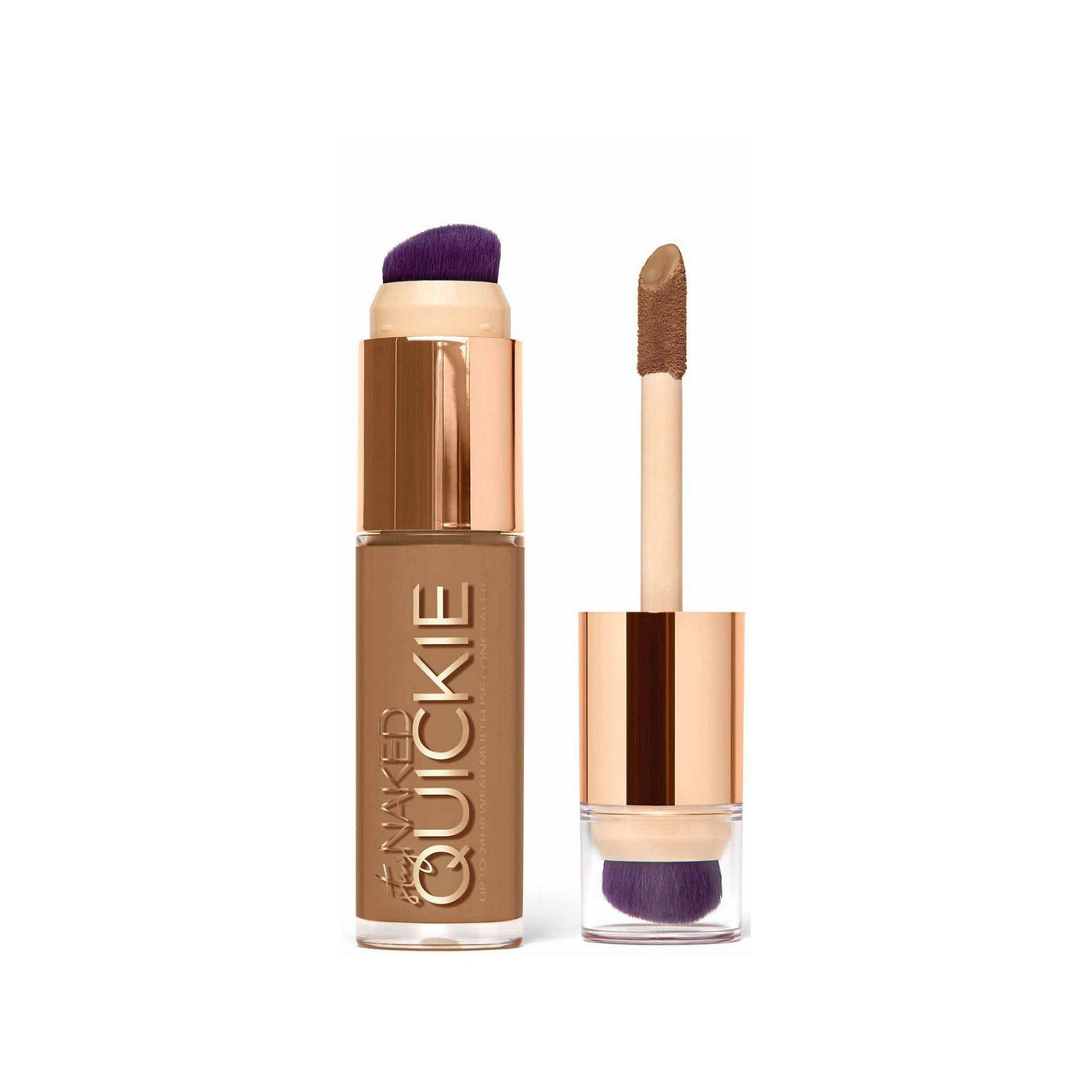 Ready for quick and easy coverage? Acne, dark circles, under eyes, hyperpigmentation — our lightweight Quickie Multi-Use Concealer covers it all for up to 24 hours with a natural finish. Where coverage meets convenience - its fast, finger-free application means buildable coverage can be achieved wherever you are. Tap it on for targeted or all-over usage. Buff it in with the washable vegan* brush. Done.