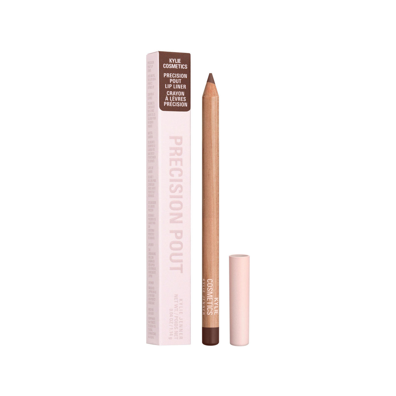 Sculpt, define, and contour with the Kylie Cosmetics Precision Pout Lip Liner Pencil. This ultra-precise, wooden lip pencil makes it easy to create perfect lines and a fuller-looking pout. Featuring a waxy texture and long-lasting formula, this Kylie lip liner pencil grips onto lips for seamless, tug-free application, and stays put without smudging or feathering.