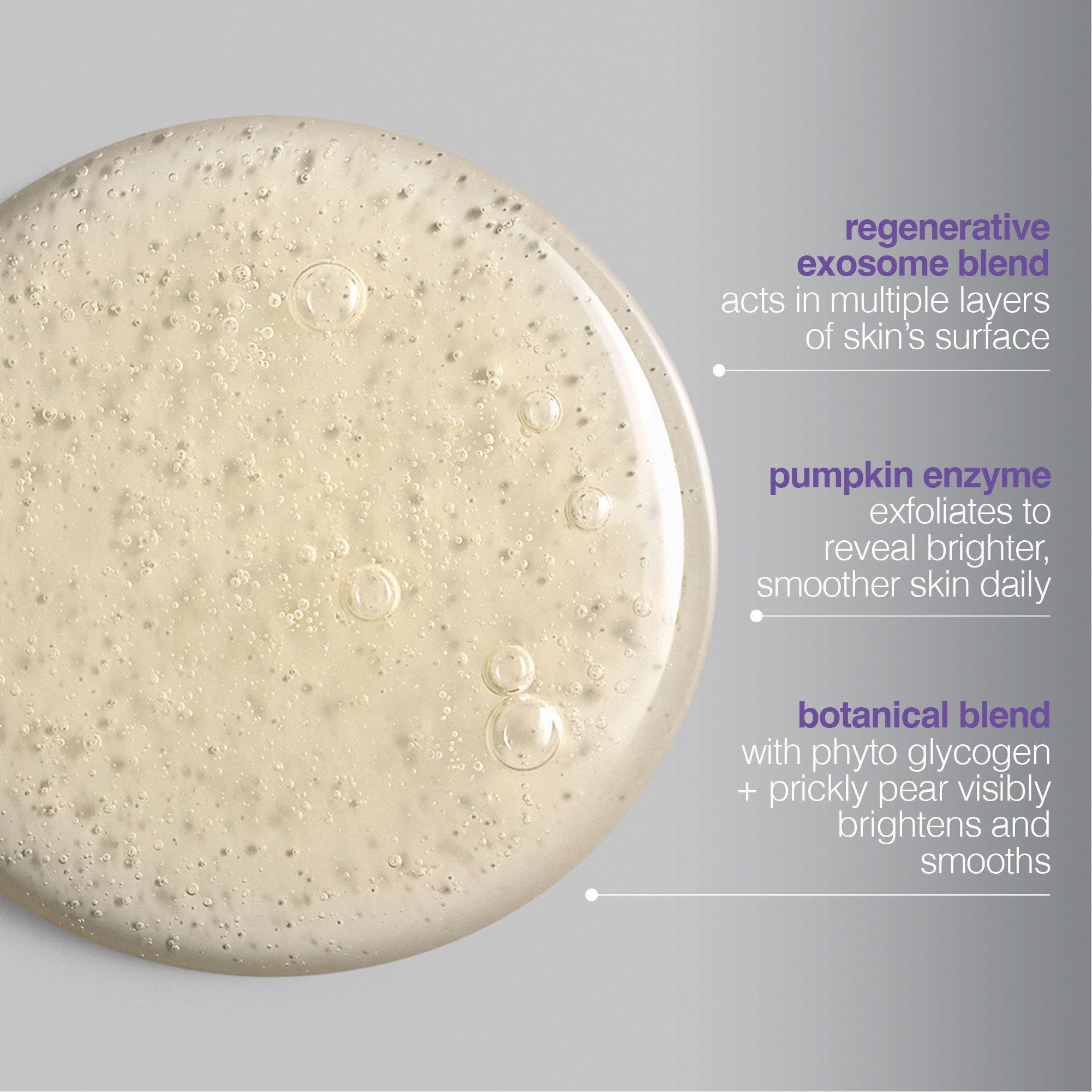 - Exfoliating enzymes help clear away dull surface cells