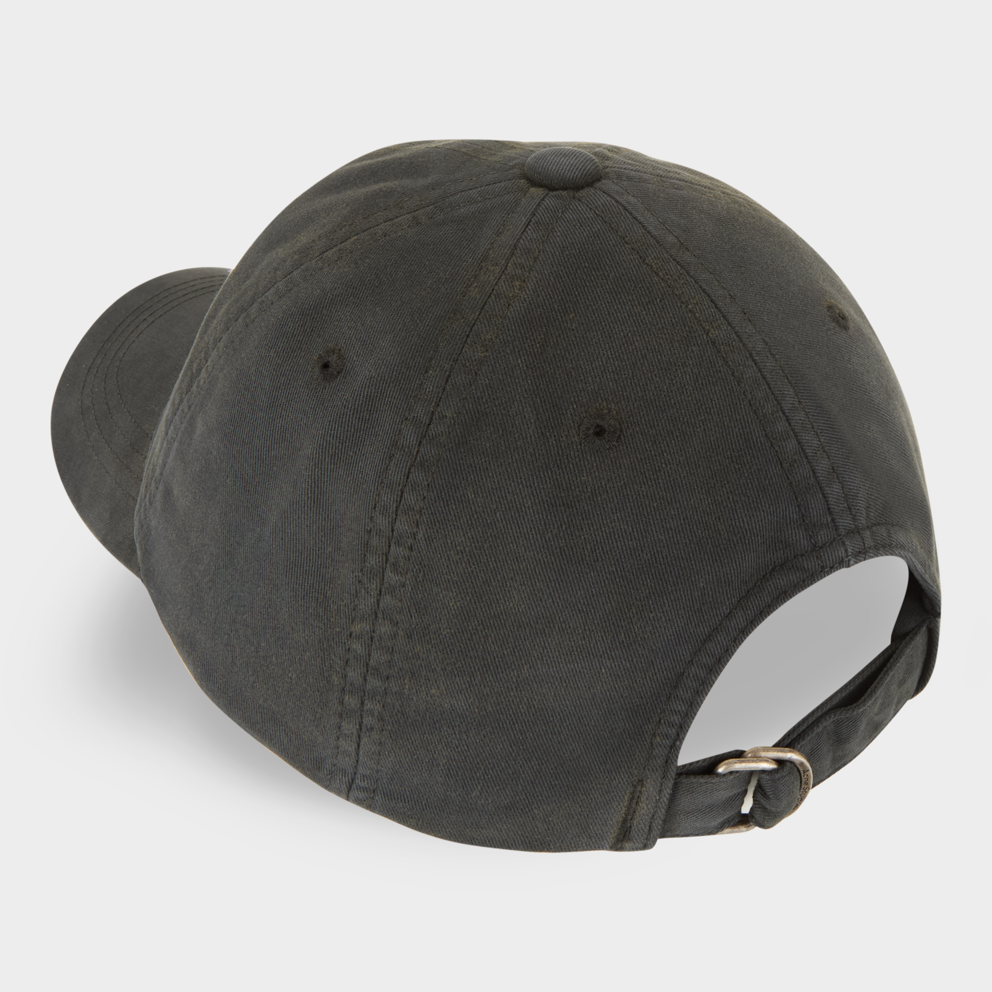- Peaked visor, adjustable strap, logo detail, six-panel design