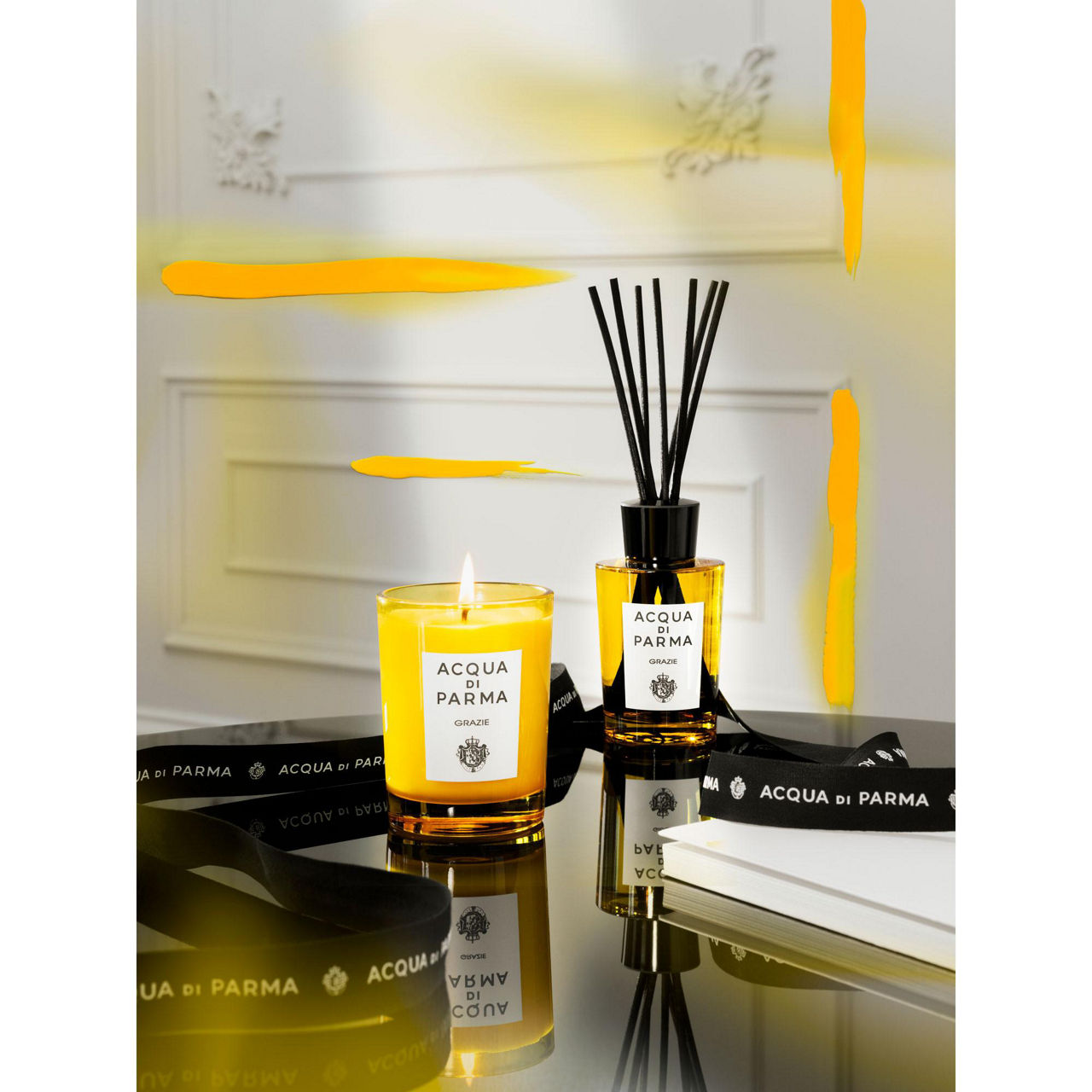 Share the pleasure of saying thank you with the Grazie candle. Celebrate with the precious and rich notes of ylang-ylang combined with the softness of rose petals. An enveloping and reassuring scent just as warm as the relations with your loved ones and the moments in life that we are most grateful for. A delightful contrast with the radiance of bergamot and delicate salty accents that bring vitality and joy.