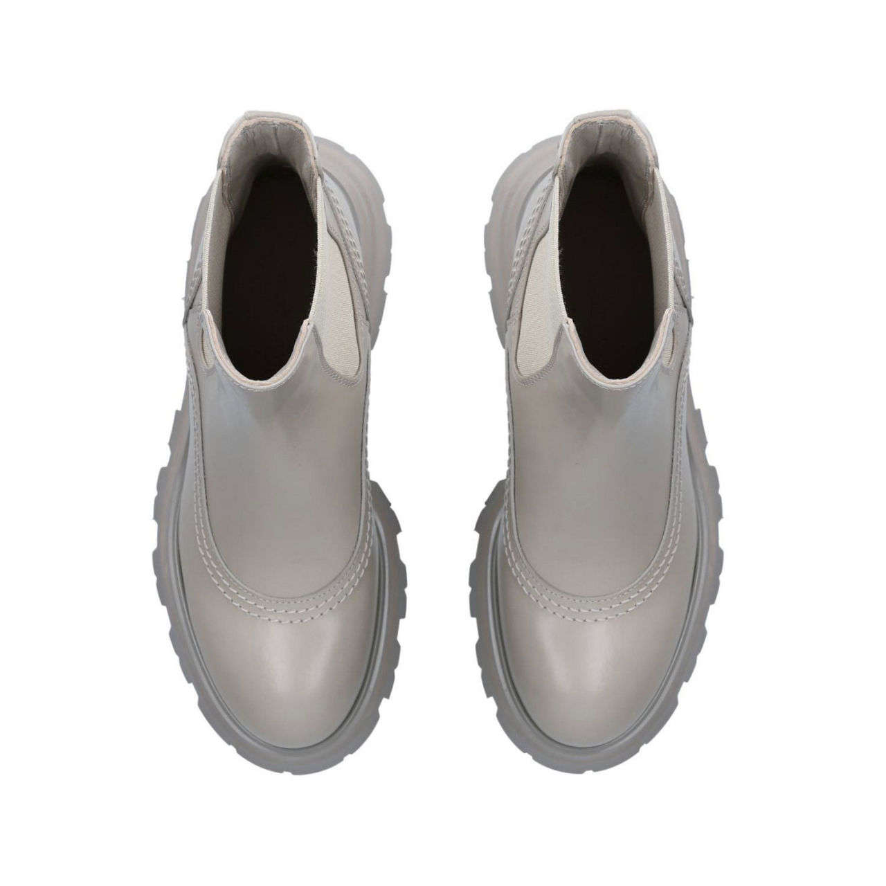 - Ankle height, pull on style, elasticated panels, platform sole, chunky silhouette, round toe, logo embossed heel tab.