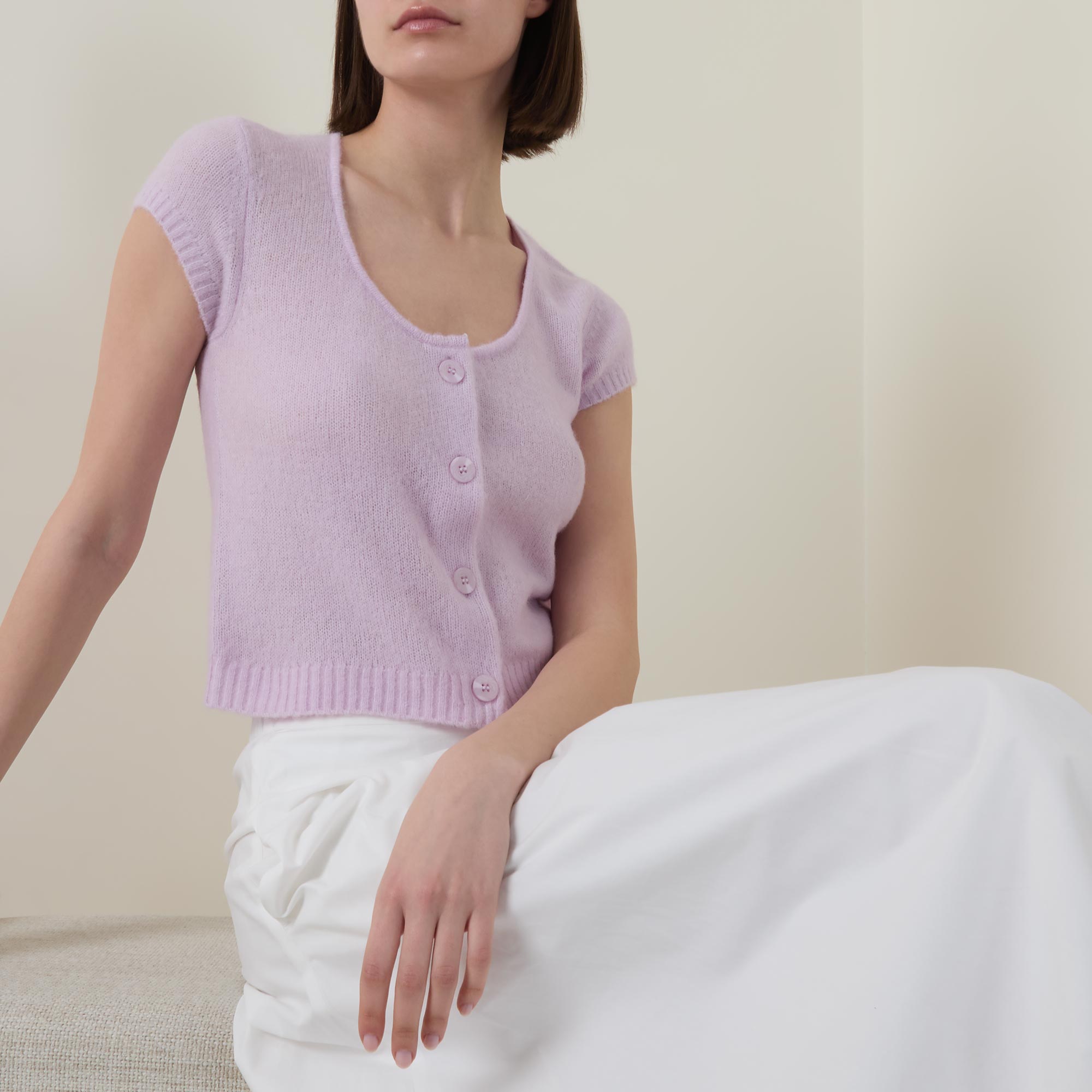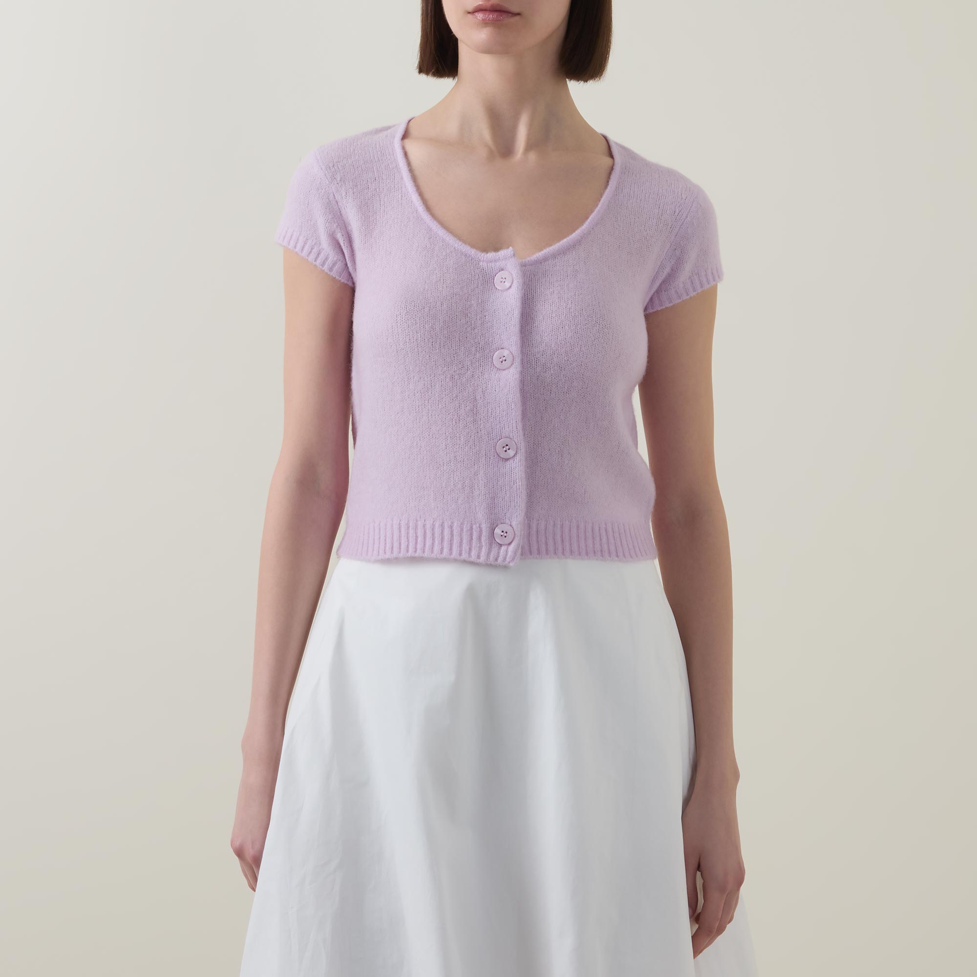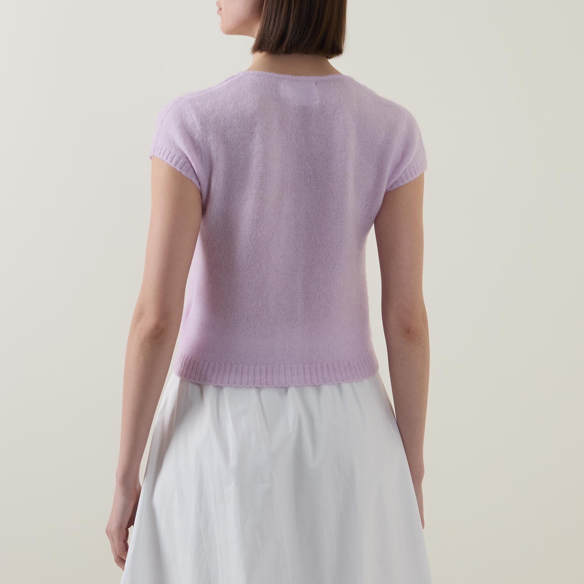 • Crew neckline, short sleeves, button fastenings, straight hemline