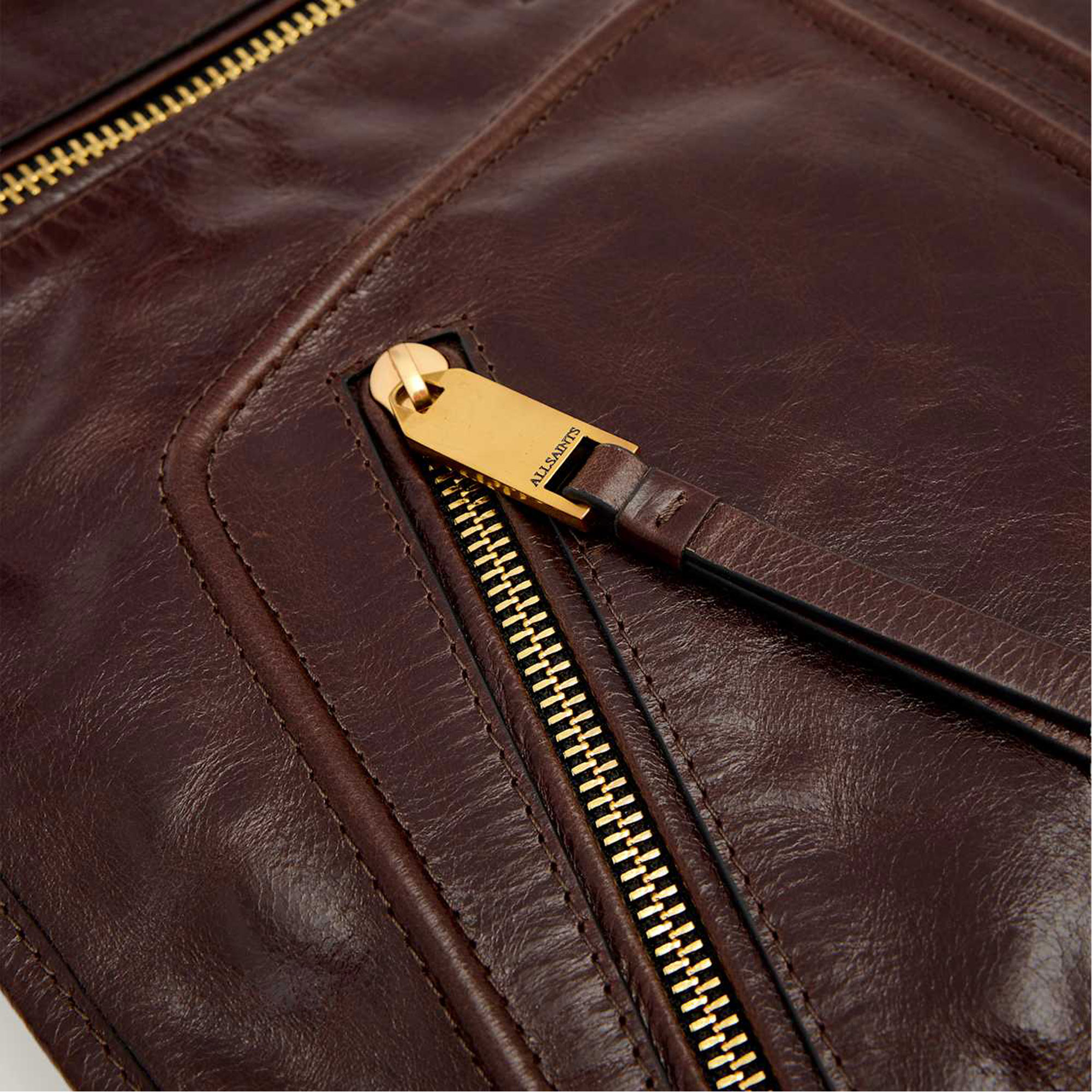 Founded in London in 1994, AllSaints has been crafting iconic leather pieces for decades. As well as statement jackets, biker boots, and accessories, the brand’s everyday items offer a dose of attitude with distressed detailing, daring prints and the signature Ramskull logo.