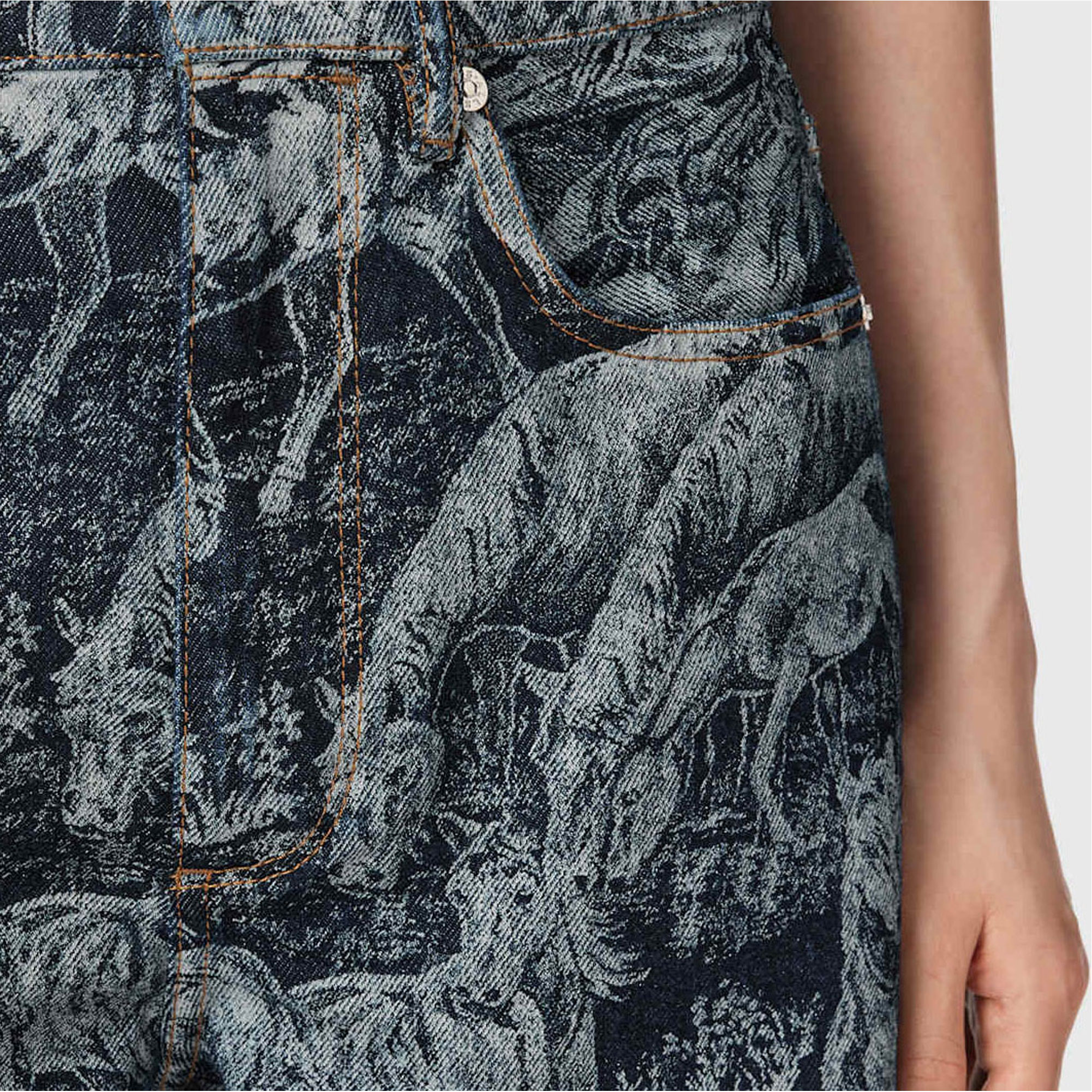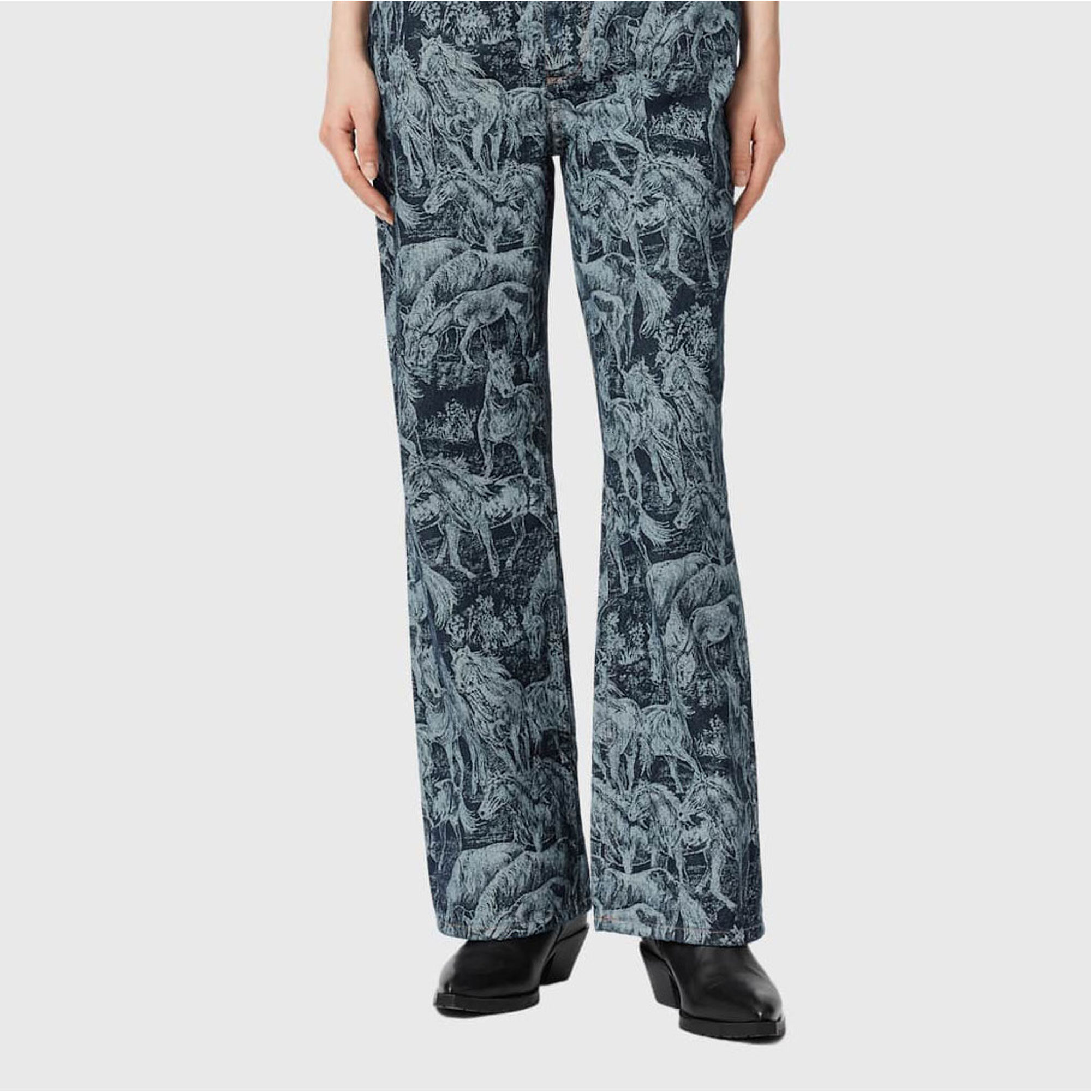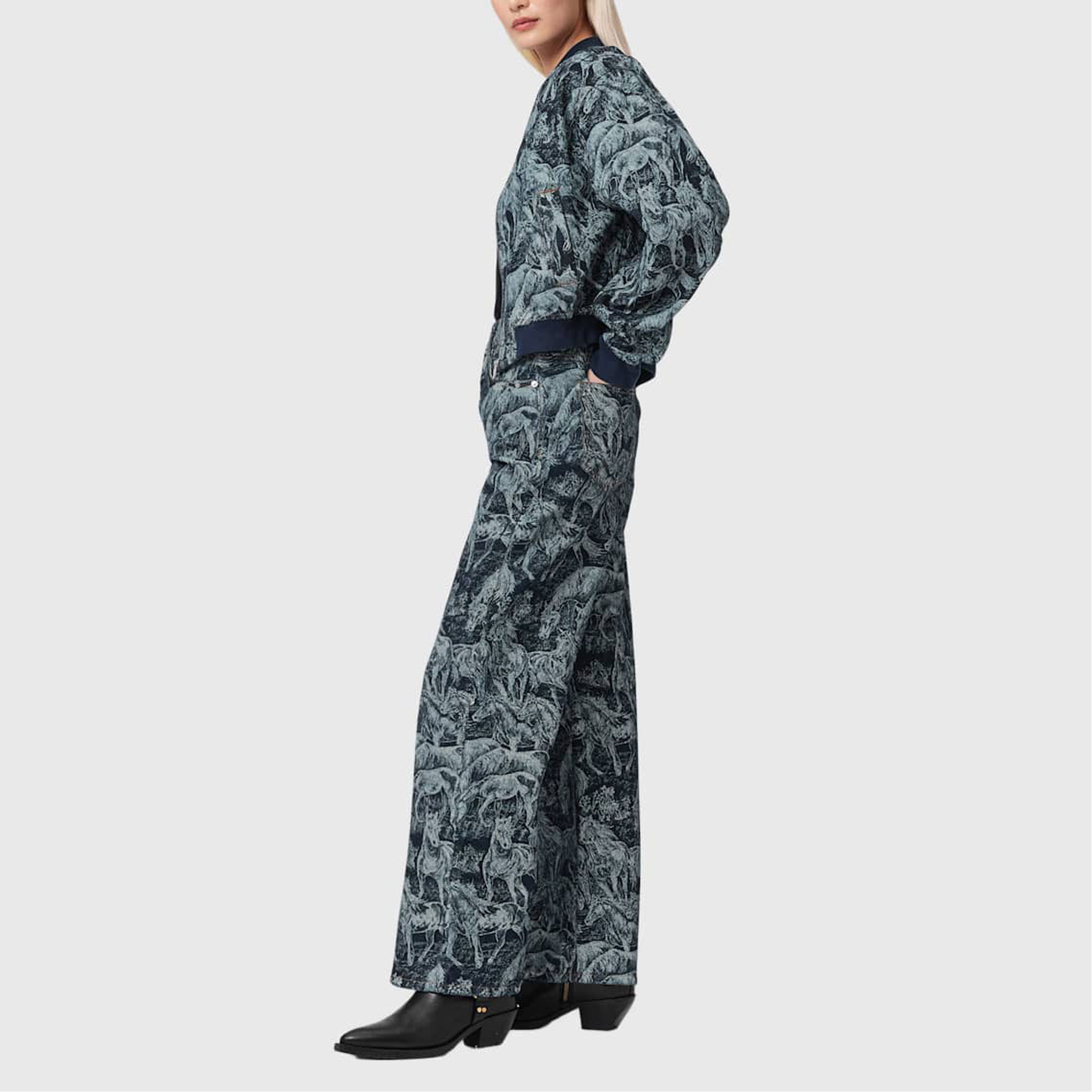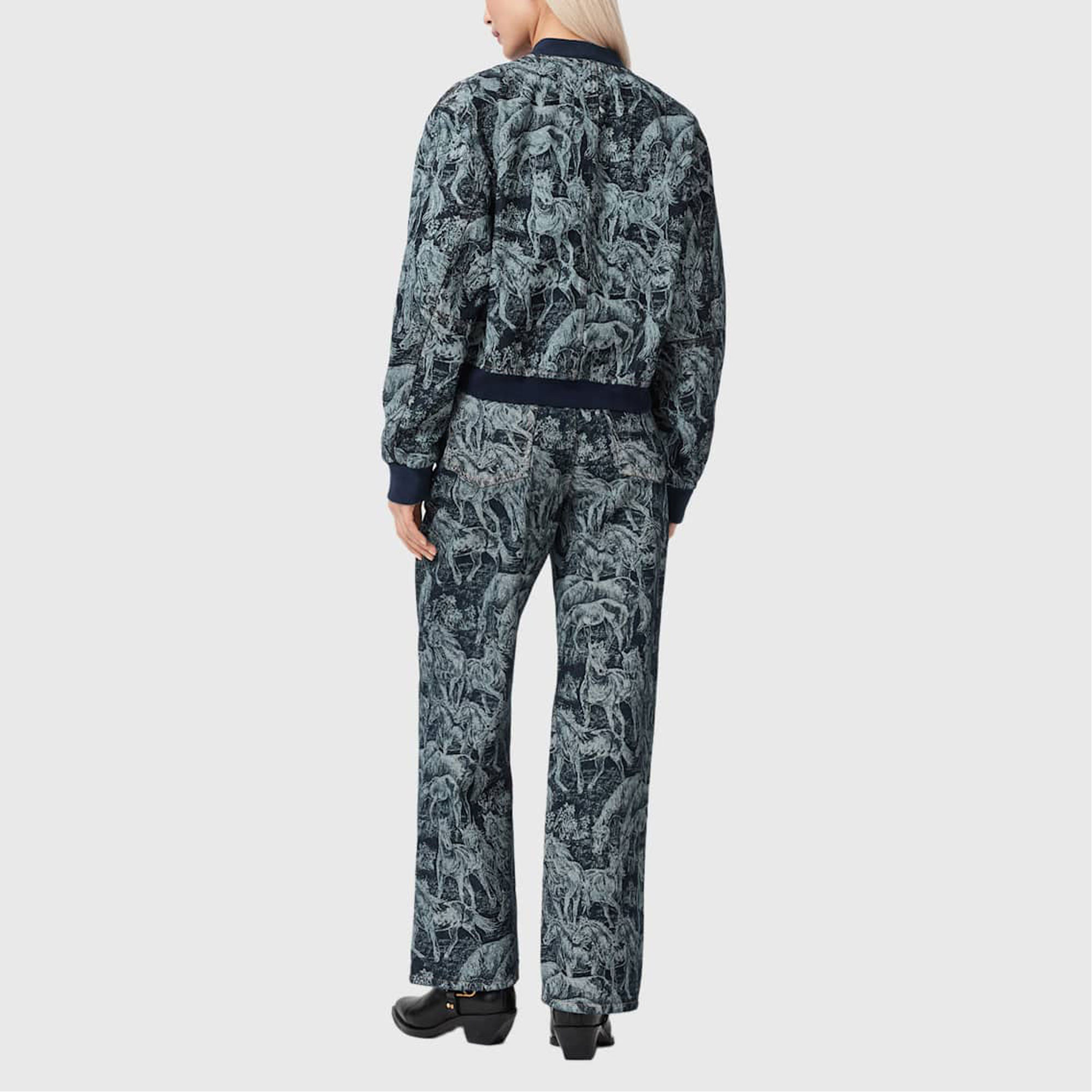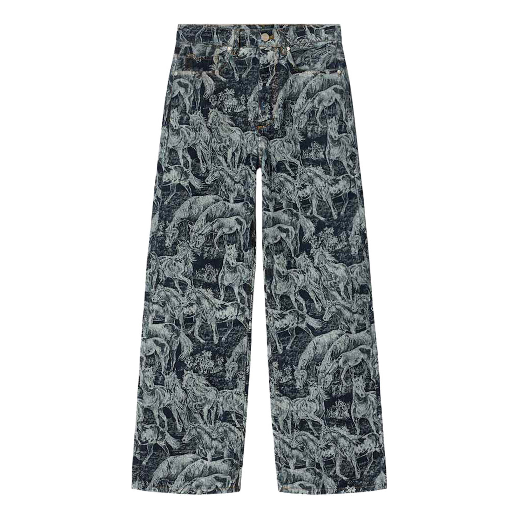 • Horse jacquard print, wide-cut leg, leather patch branding