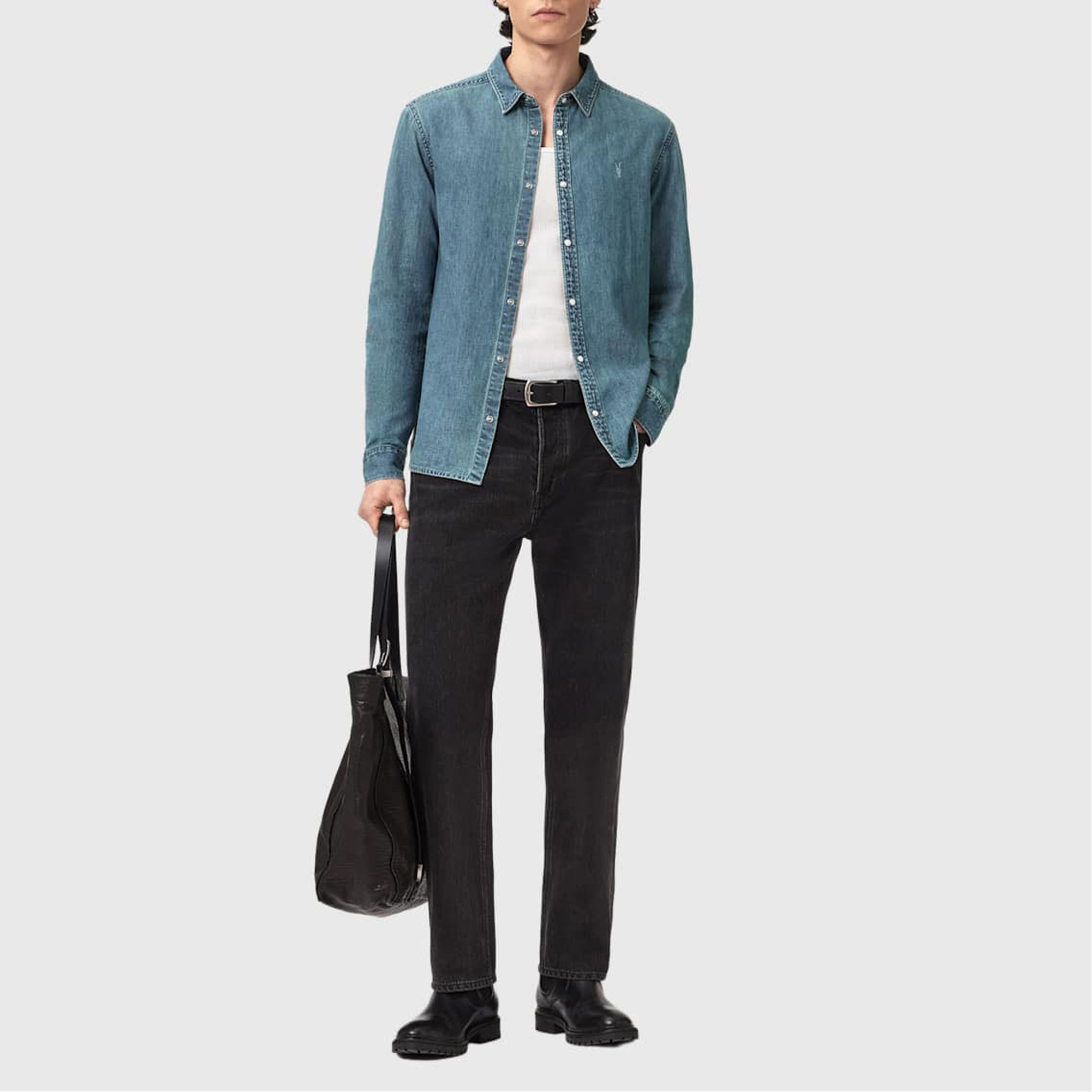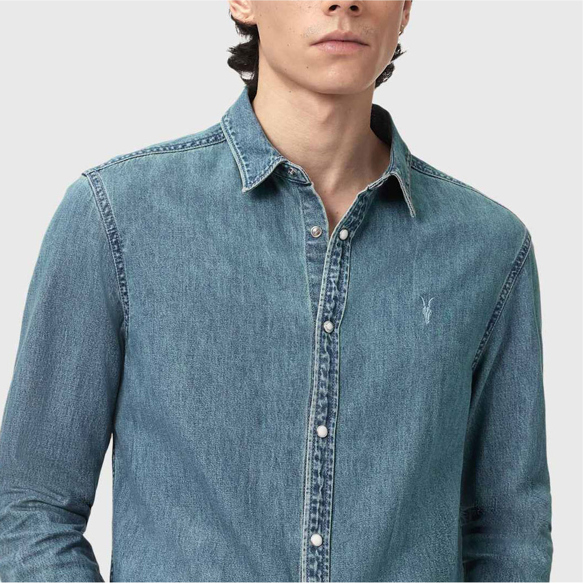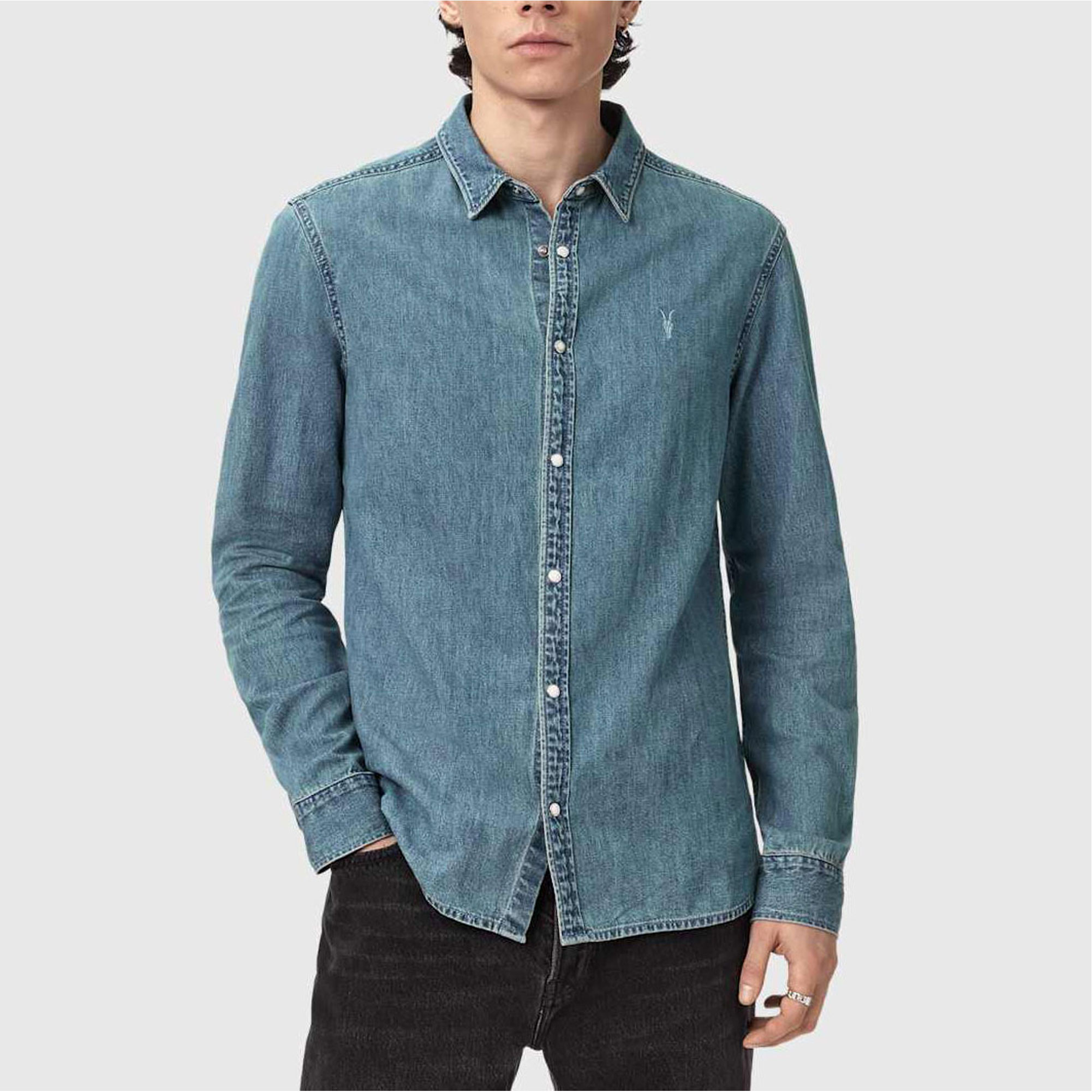 ALLSAINTS Gleason Ramskull Logo Denim Shirt