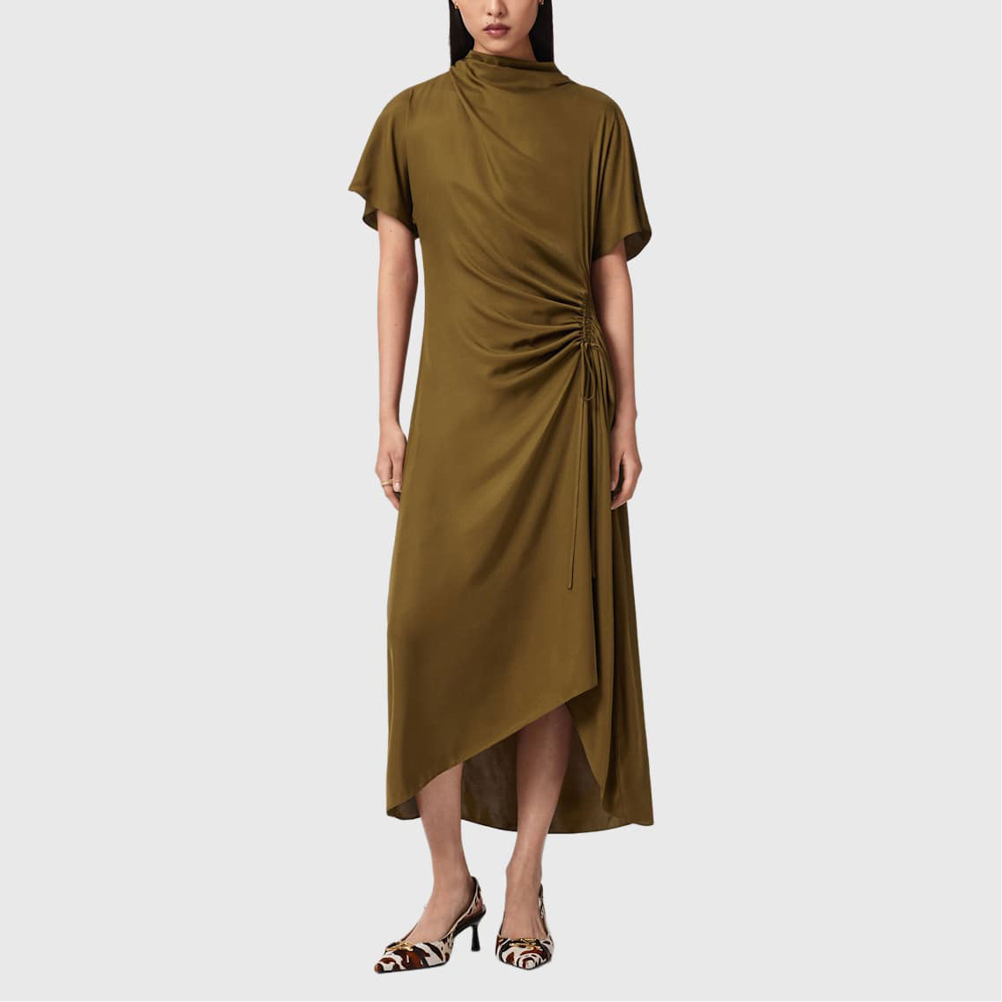 ALLSAINTS Rosie Cowl Ruched Flared Dress