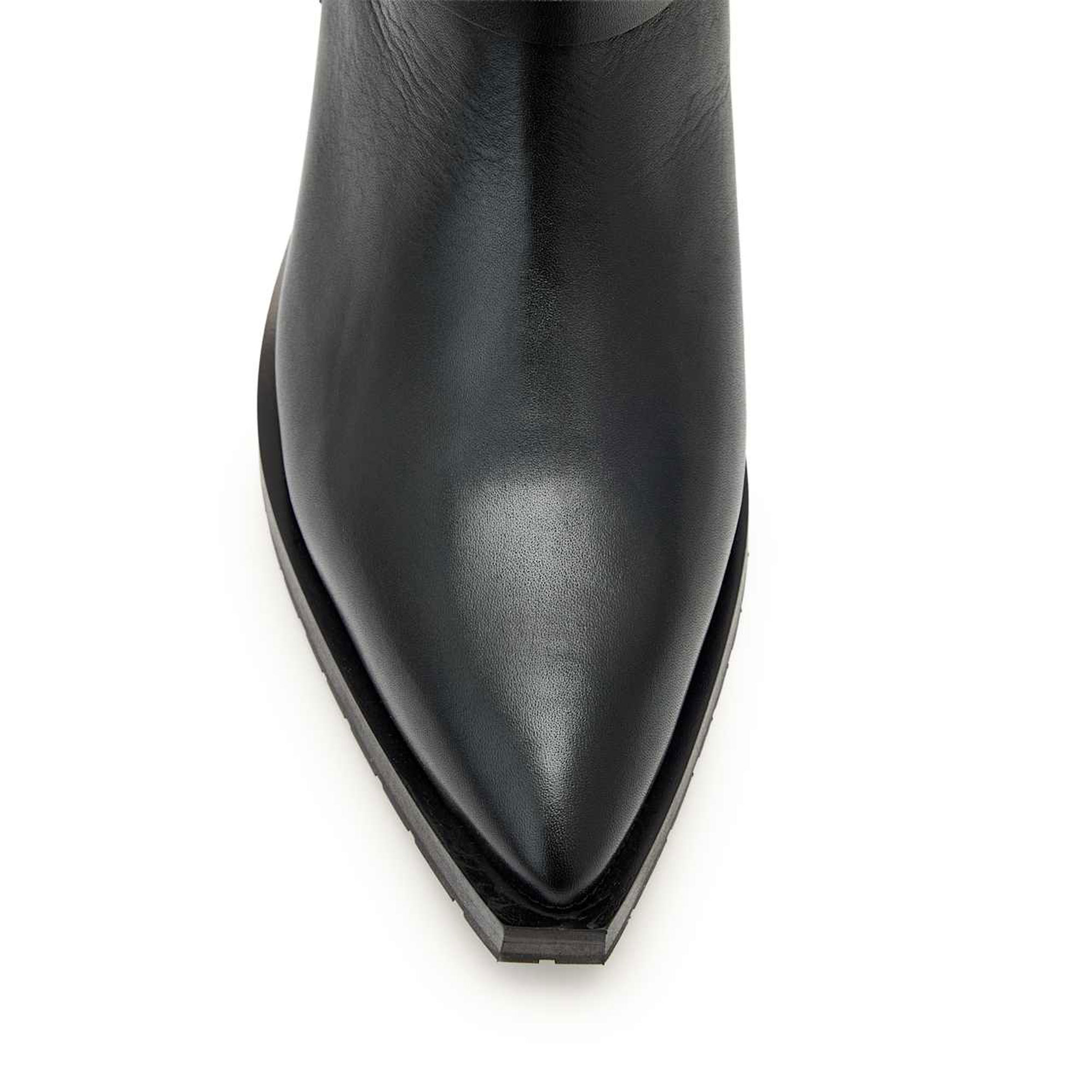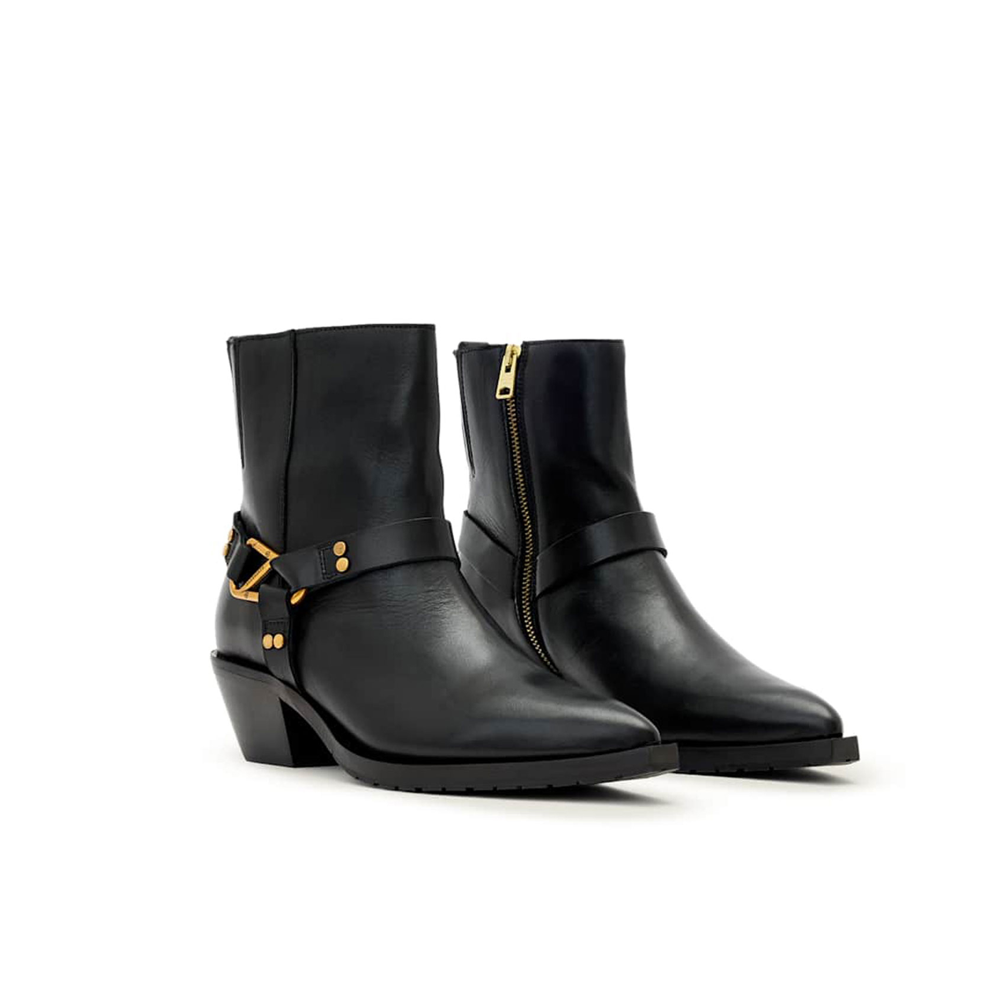 - Western-inspired carabiner harness detail, soft leather, pointed toe, zip fastening, slight heel