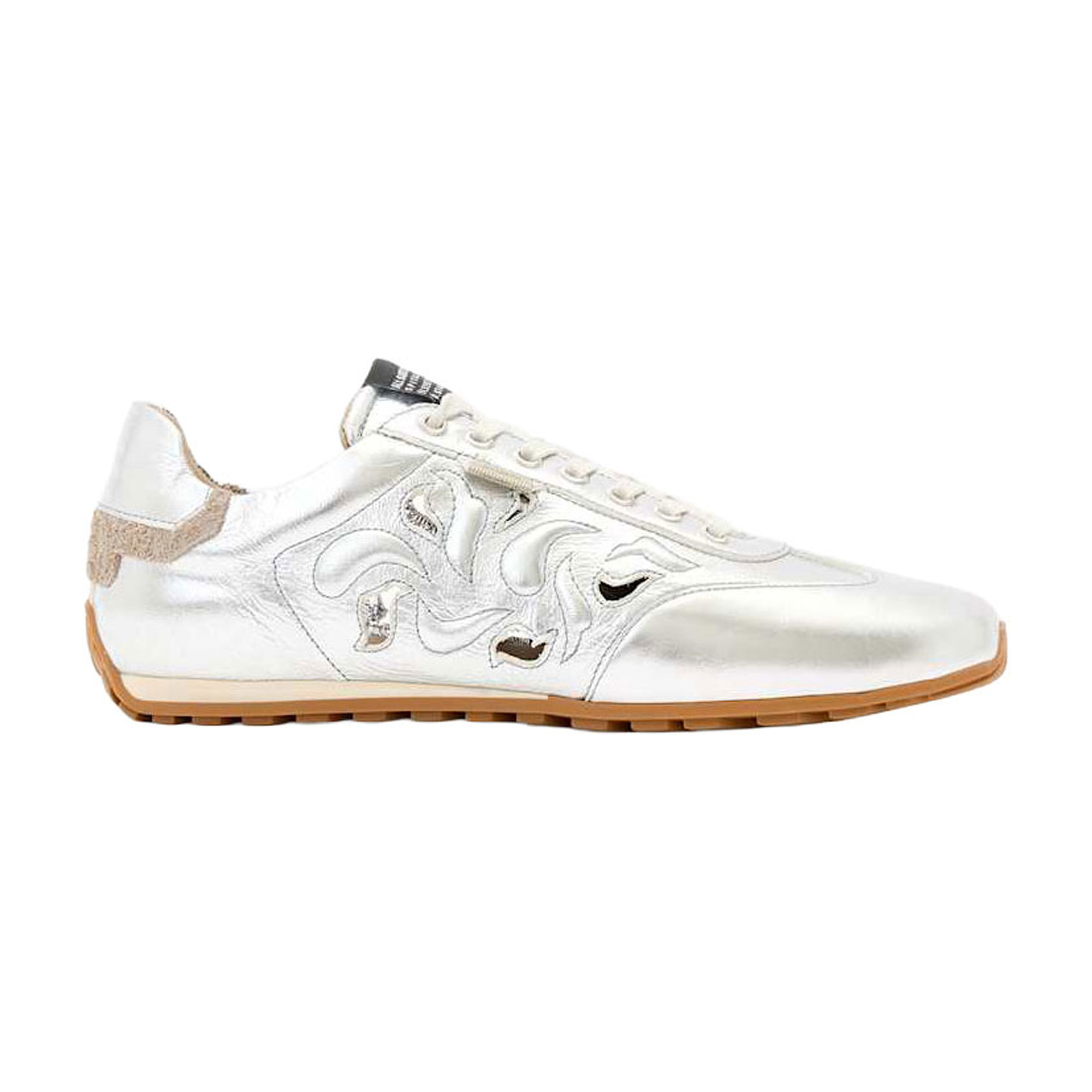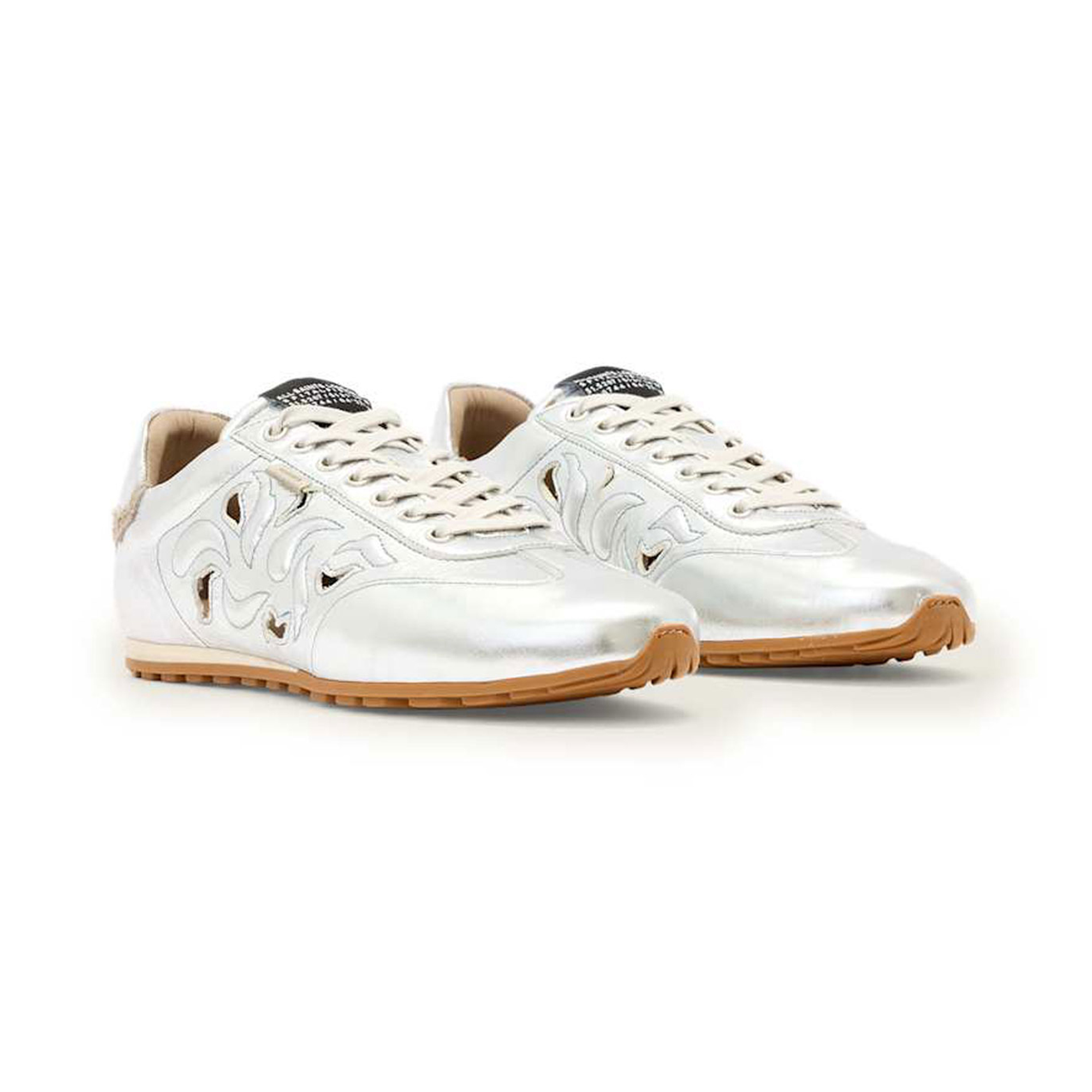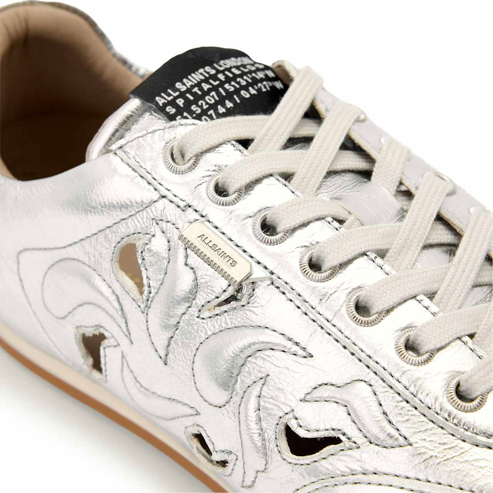 • Metallic finish, lace-up front