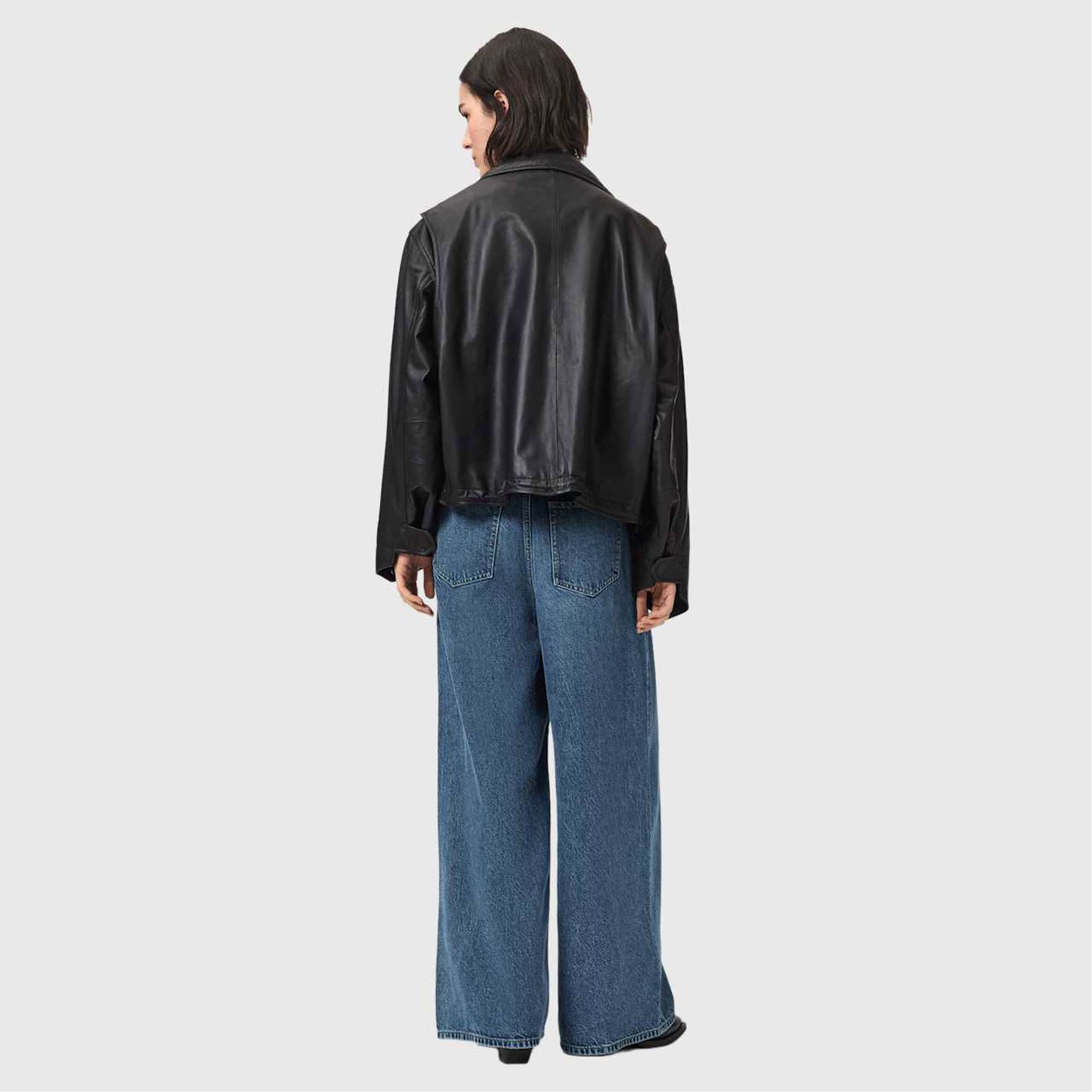 Founded in London in 1994, AllSaints has been crafting iconic leather pieces for decades. As well as statement jackets, biker boots, and accessories, the brand’s everyday items offer a dose of attitude with distressed detailing, daring prints and the signature Ramskull logo.