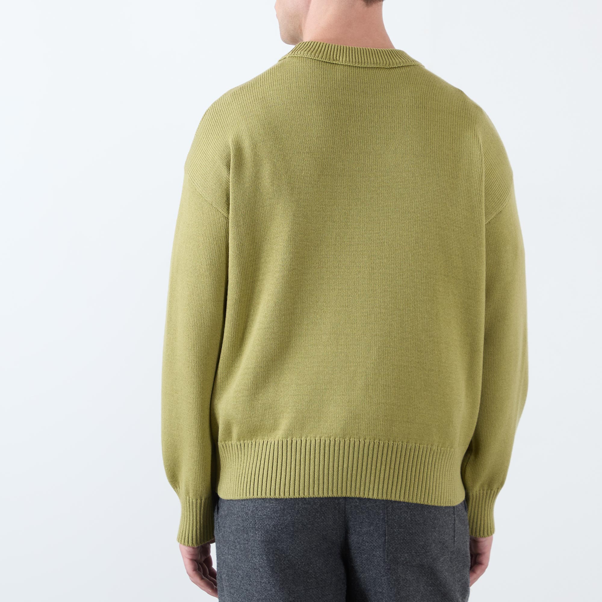 - Crew neckline, dropped shoulders, long sleeves, straight hem, ribbed trims, contrasting jacquard logo on the chest, knit construction