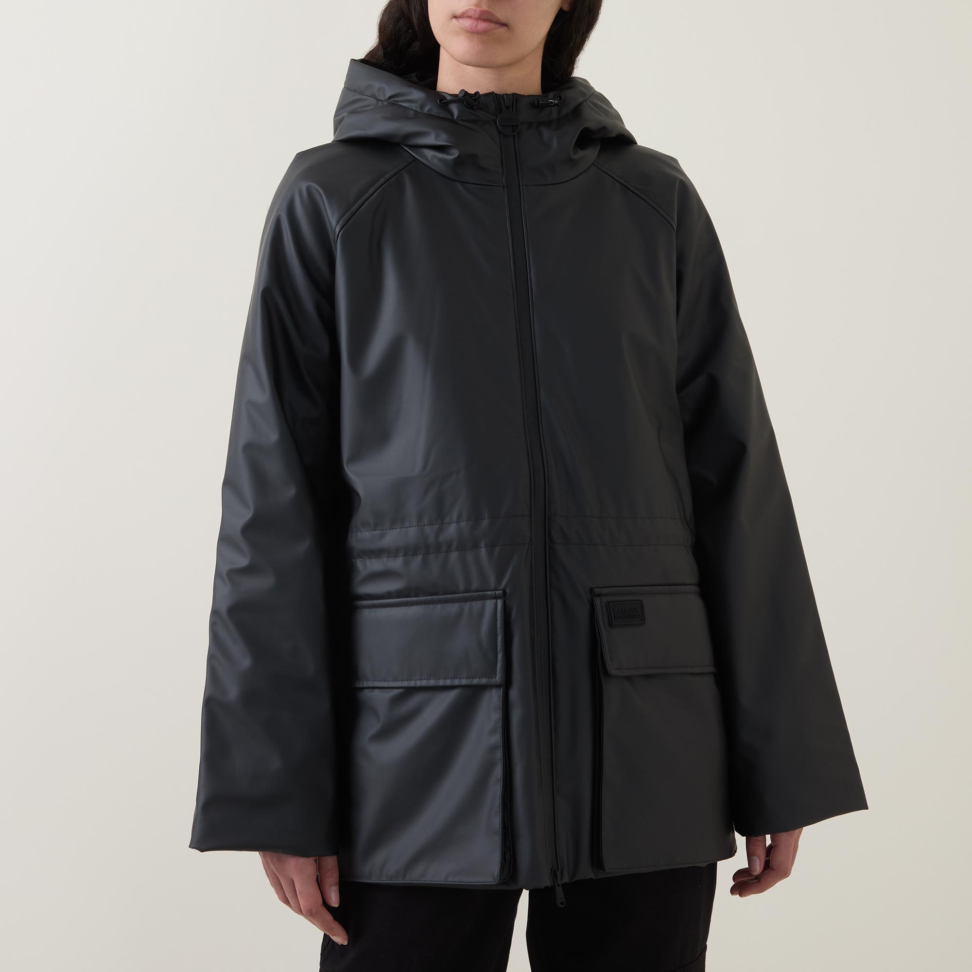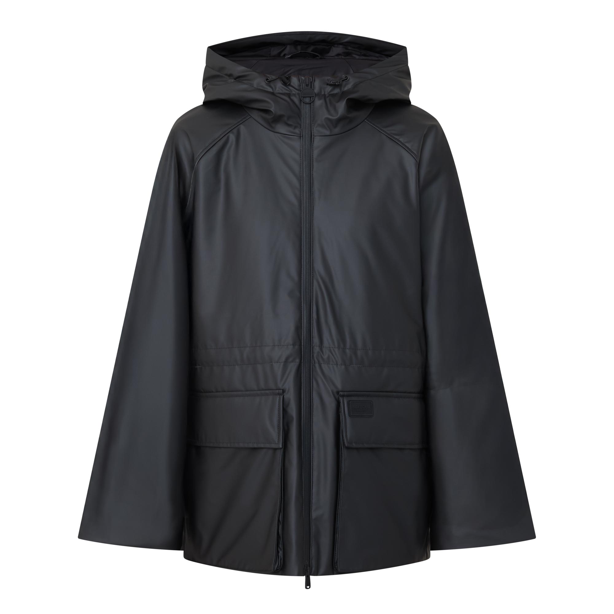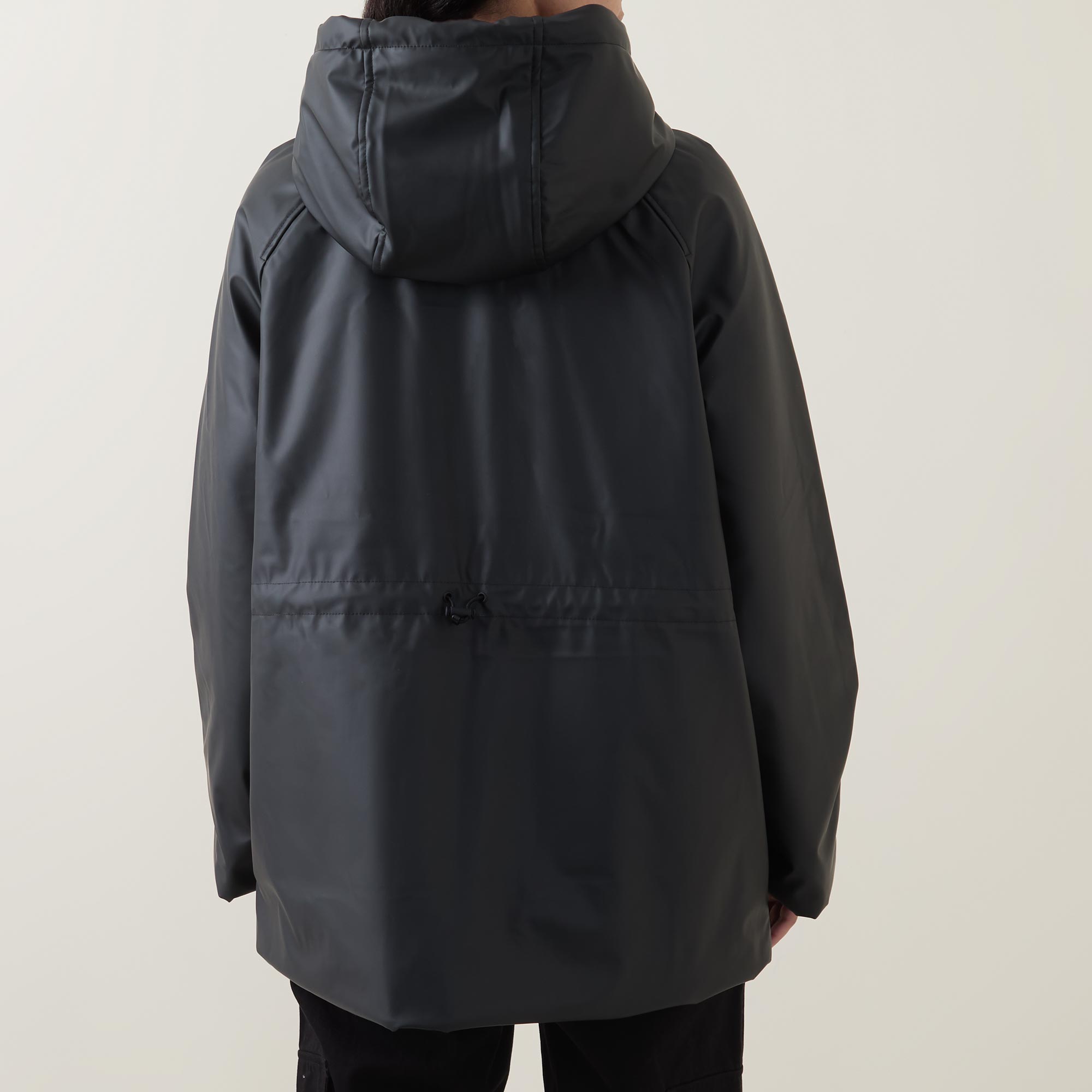 - Lightweight protection, modern minimal design, adjustable drawstring waist, large funnel neck hood with adjustable drawstring, logo detail, two spacious pockets with handy side entry, zip up fastening