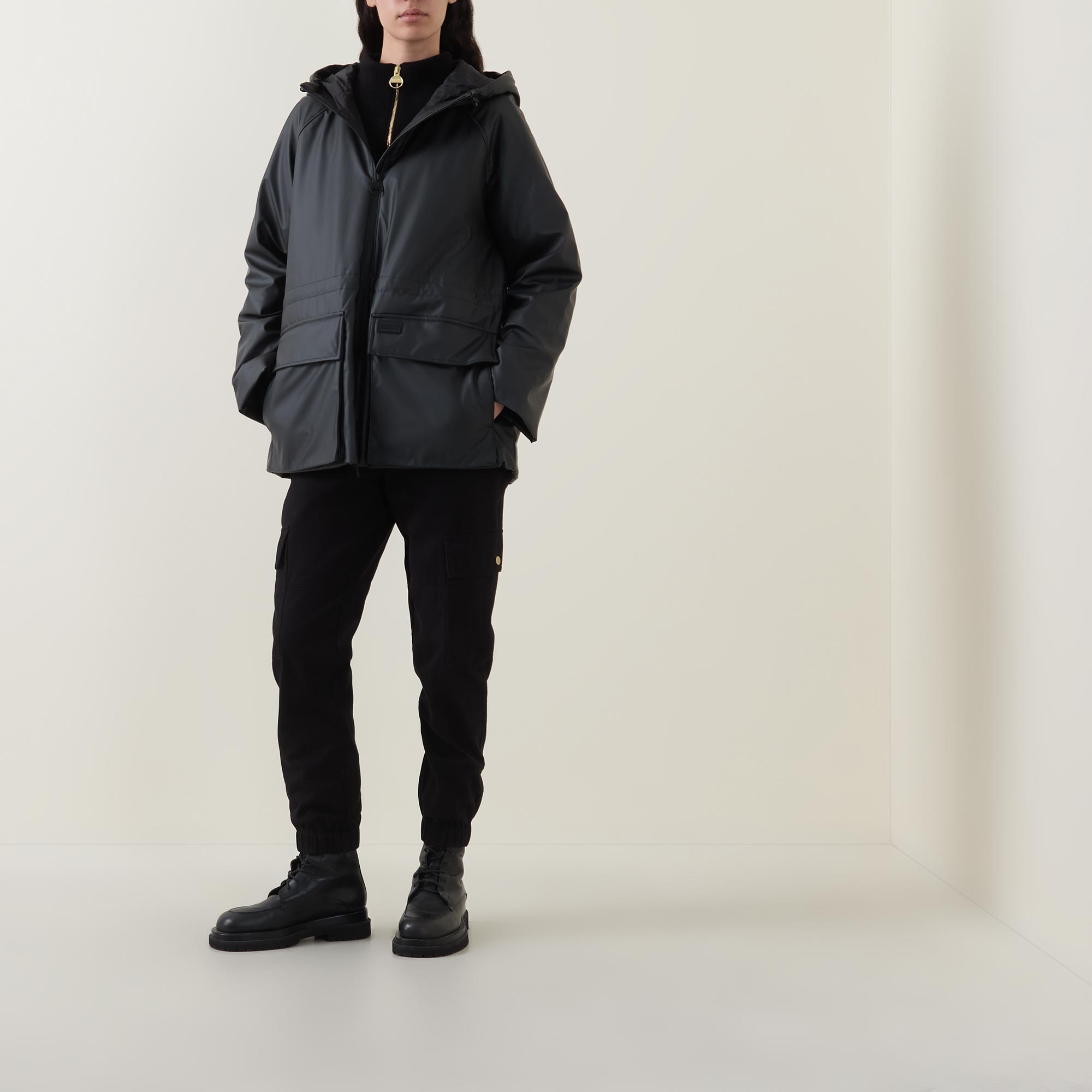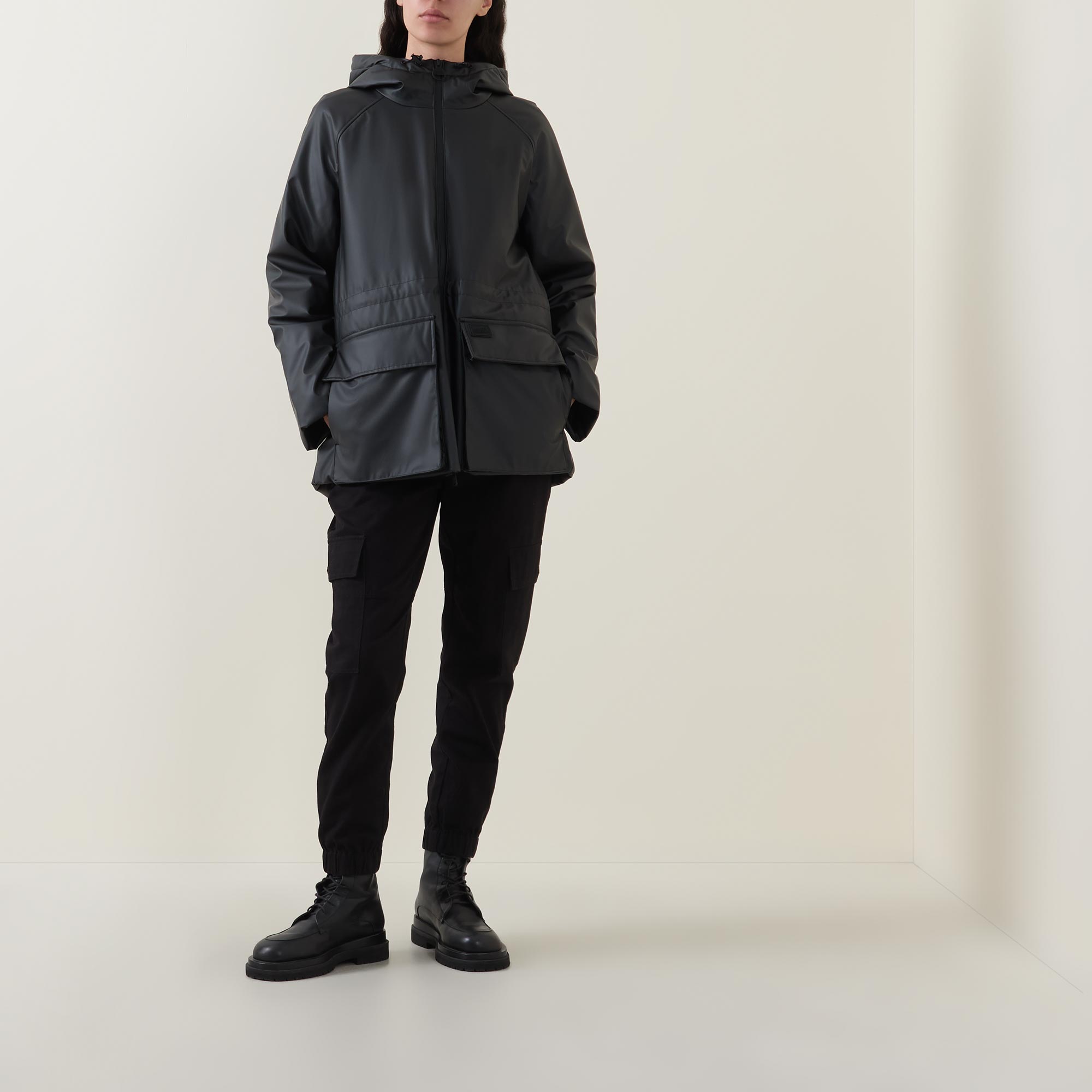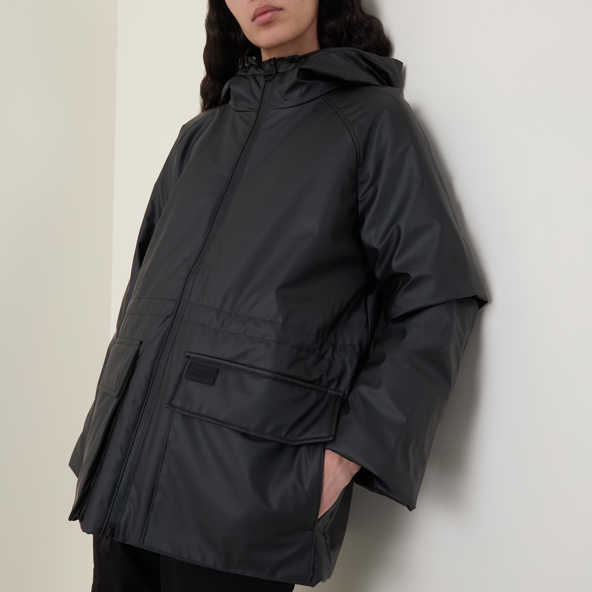 - Lightweight protection, modern minimal design, adjustable drawstring waist, large funnel neck hood with adjustable drawstring, logo detail, two spacious pockets with handy side entry, zip up fastening