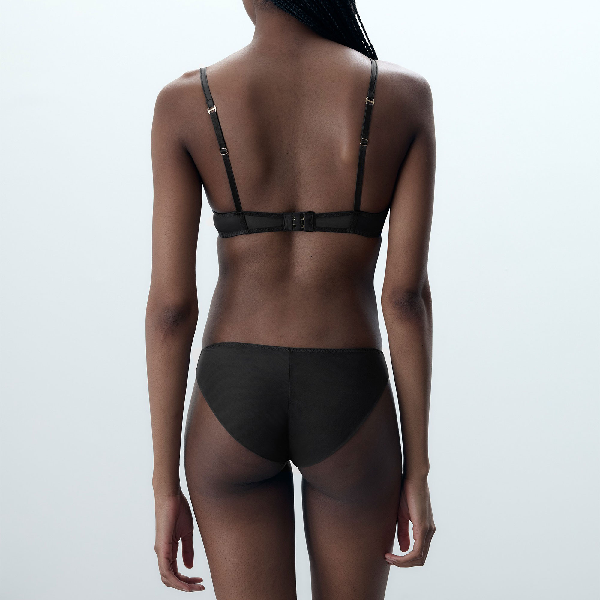 - Satin front, sheer stretch-fused mesh back, breathable, smooth, line-free finish under clothing, dipped waistband, soft bamboo gusset