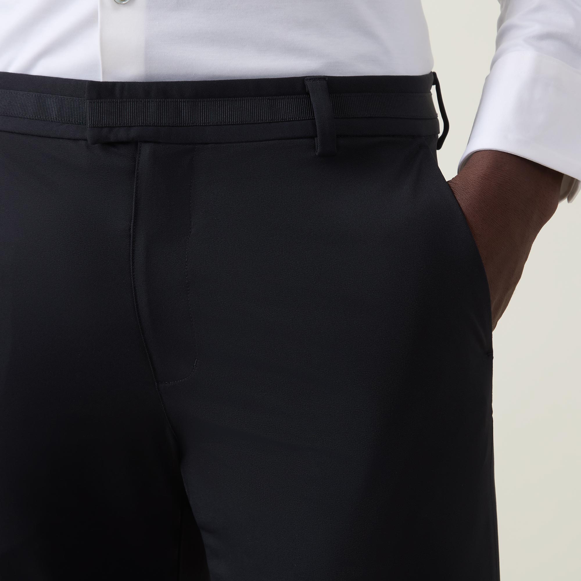 - Wrinkle free, stretch-fused fabric, breathable