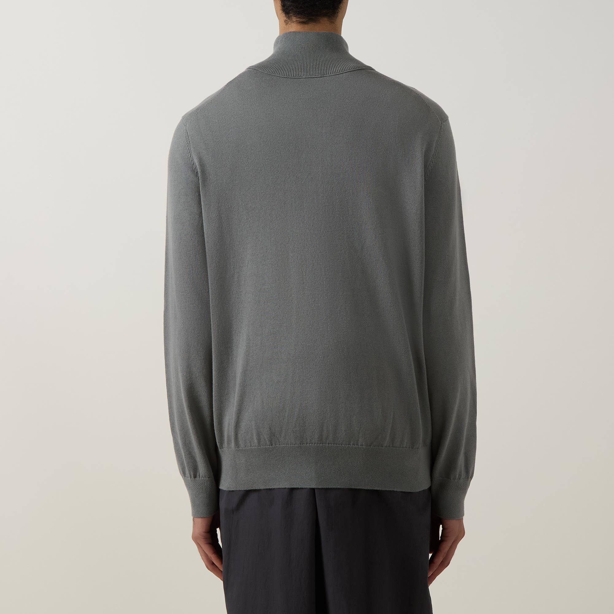 • Funnel neck, half-zip placket, long sleeves, straight hem, ribbed trims, embroidered logo badge on the chest, knit construction, soft textured finish