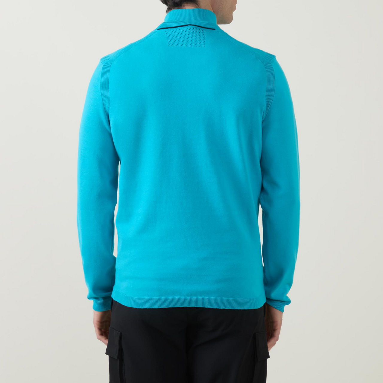 - Half-zip fastening, funnel neckline, long sleeves, ribbed trims, logo detail, straight hemline