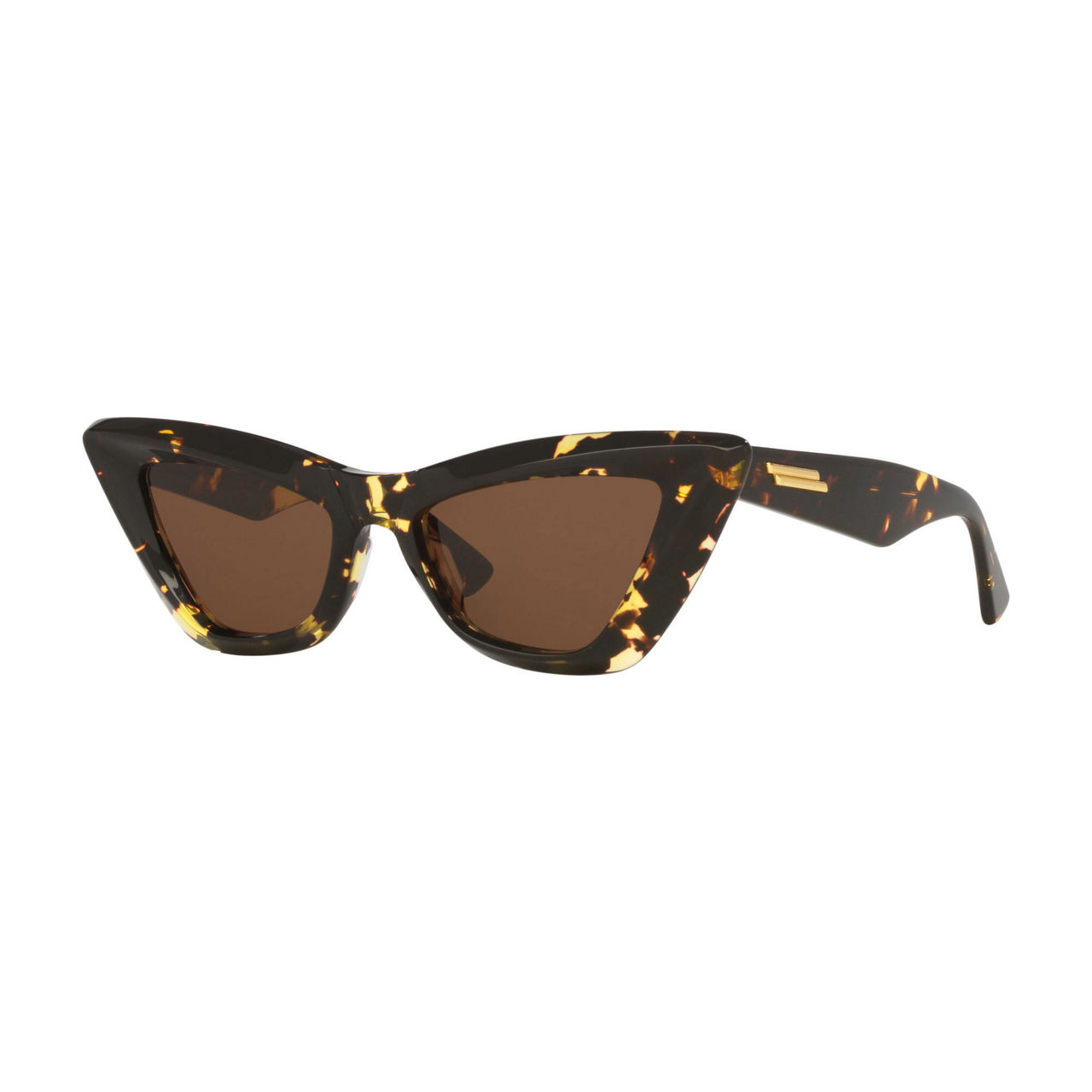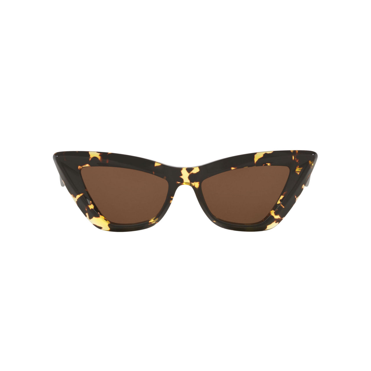 Elevating the iconic cat-eye frame to new heights the Bottega Veneta BV1101S sunglasses pay tribute to the brand's heritage and craftsmanship. The solid brown lenses are complemented by a sophisticated tortoise colour on the front while the temples bear an engraved signature. With its fashionable yet timeless design these shades embody both elegance and comfort in one exquisite package.