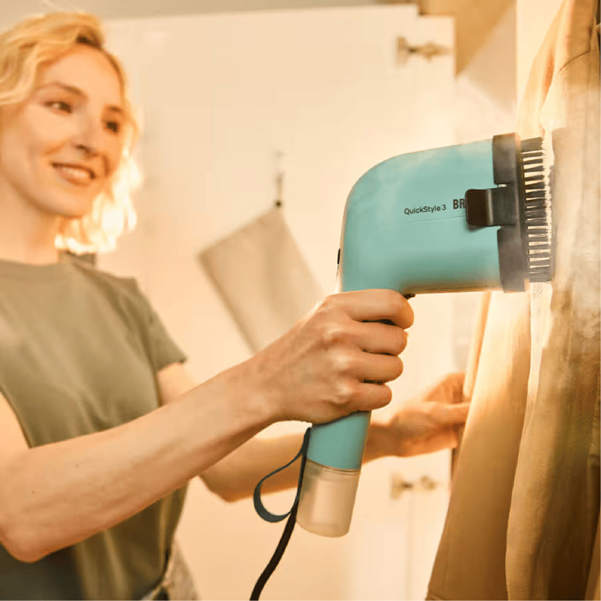 Sleek and space-saving, Braun’s new QuickStyle 3 features an ultra-slim design perfect for travelling – and is super simple to store at home. Just hang it on a hook or stuff it in a drawer or carry-on trolley. FastSteam Technology provides easy de-wrinkling on the go with up to 20 g/min steam rate. And when it comes to travelling, the QuickStyle 3 comes with clever accessories that are perfect to help you look good out of a suitcase: like a convenient lint remover, a brush and a heat resistant storage bag.