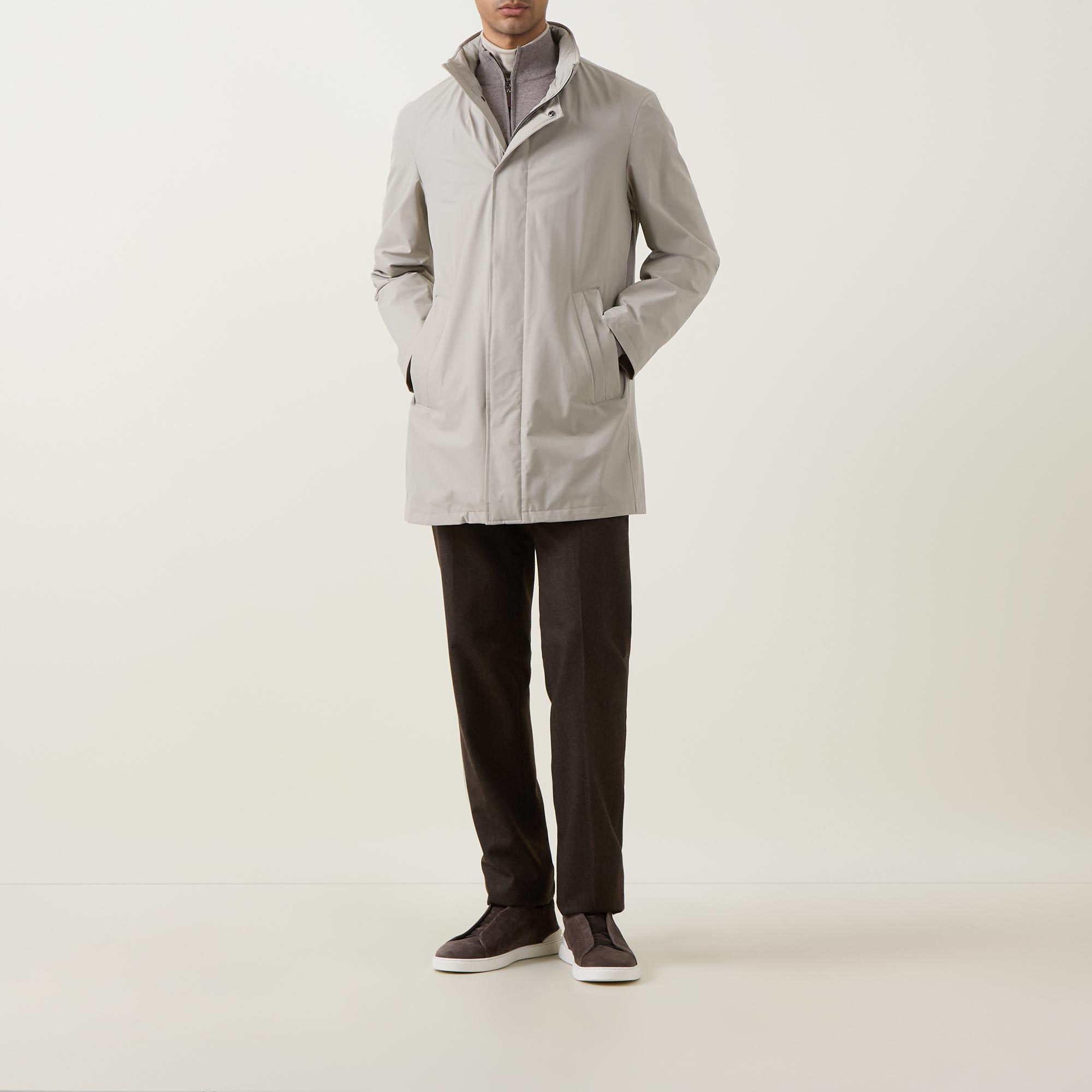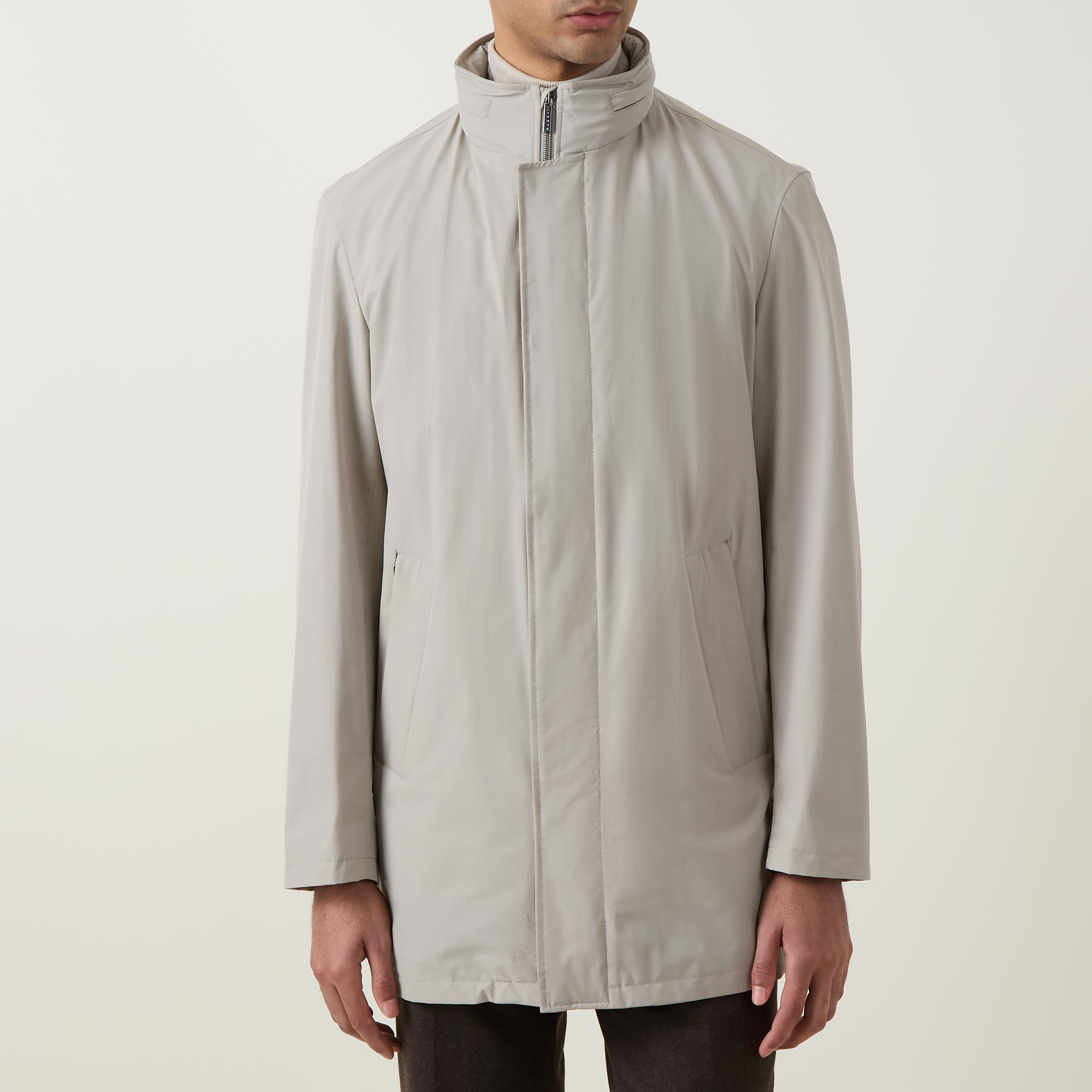 - High neckline, part-concealed zip and snap button fastening, stowable hood, vent to the rear, side entry pockets, logo details