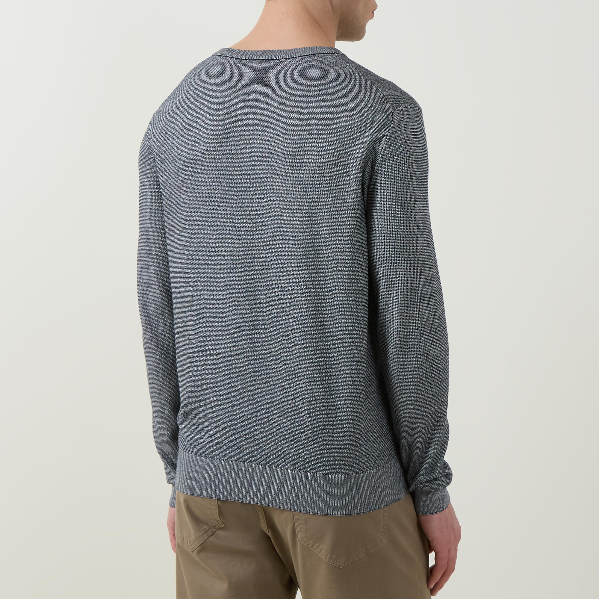 - Crew neckline, textured finish, long sleeves, straight hemline, ribbed trims