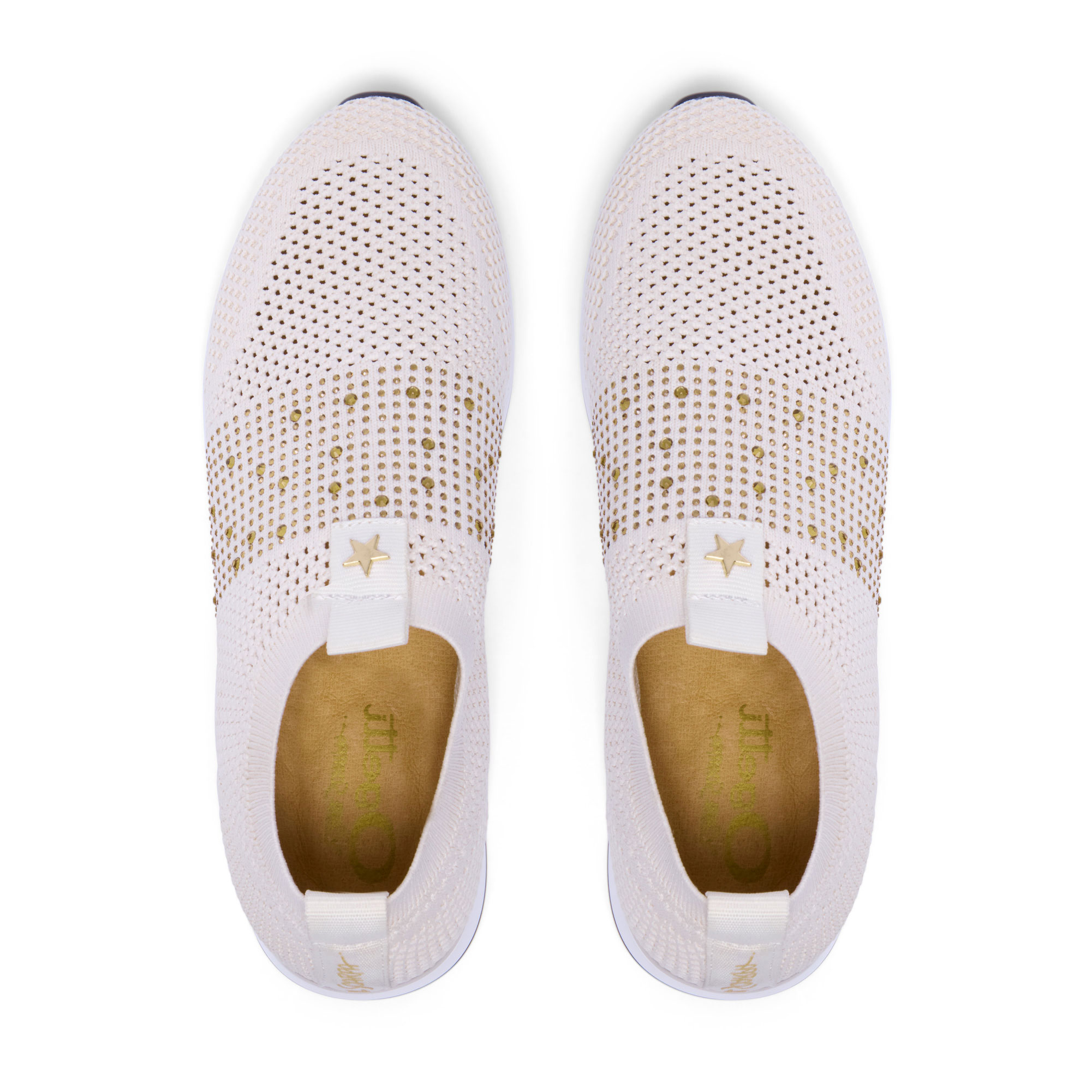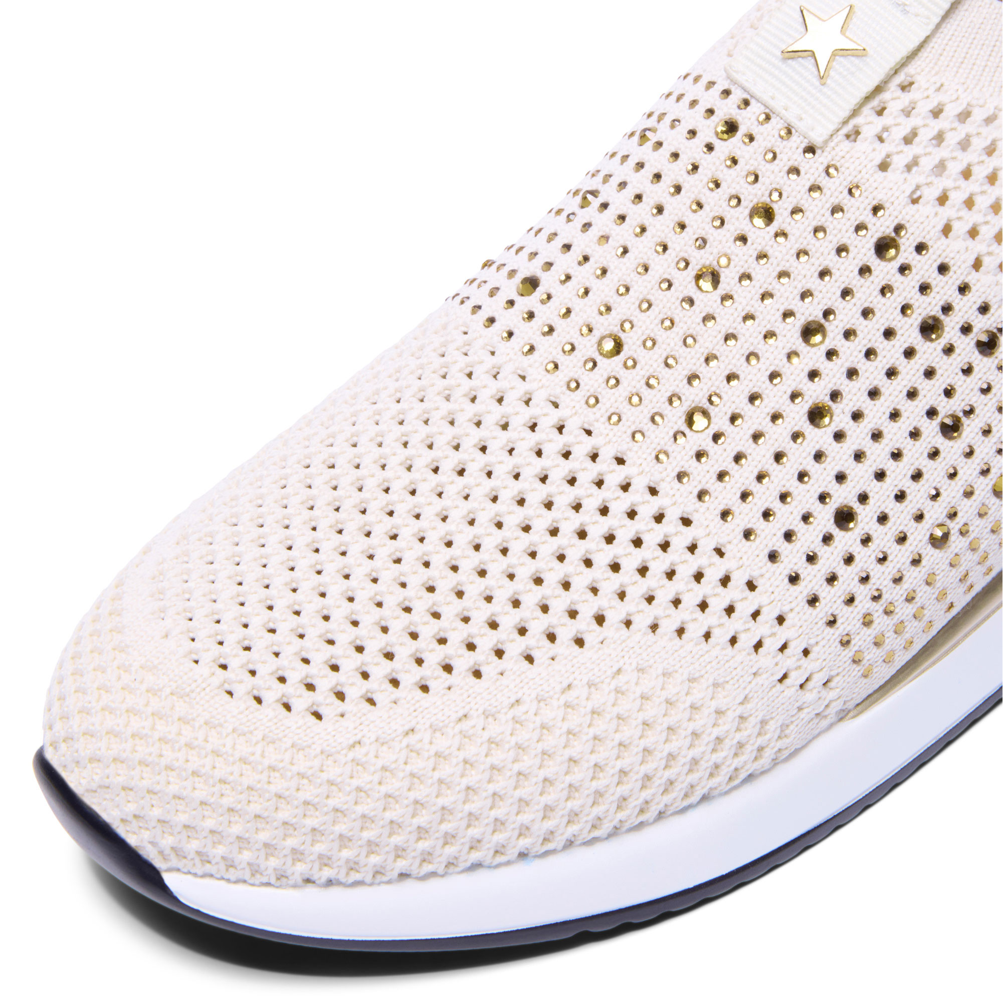 - Slip-on style, lightweight elevated sole, breathable knitted textile upper, metallic stud detailing, elasticated collar, pull tabs, lightweight cushioned sole, padded insole, durable rubber outsole