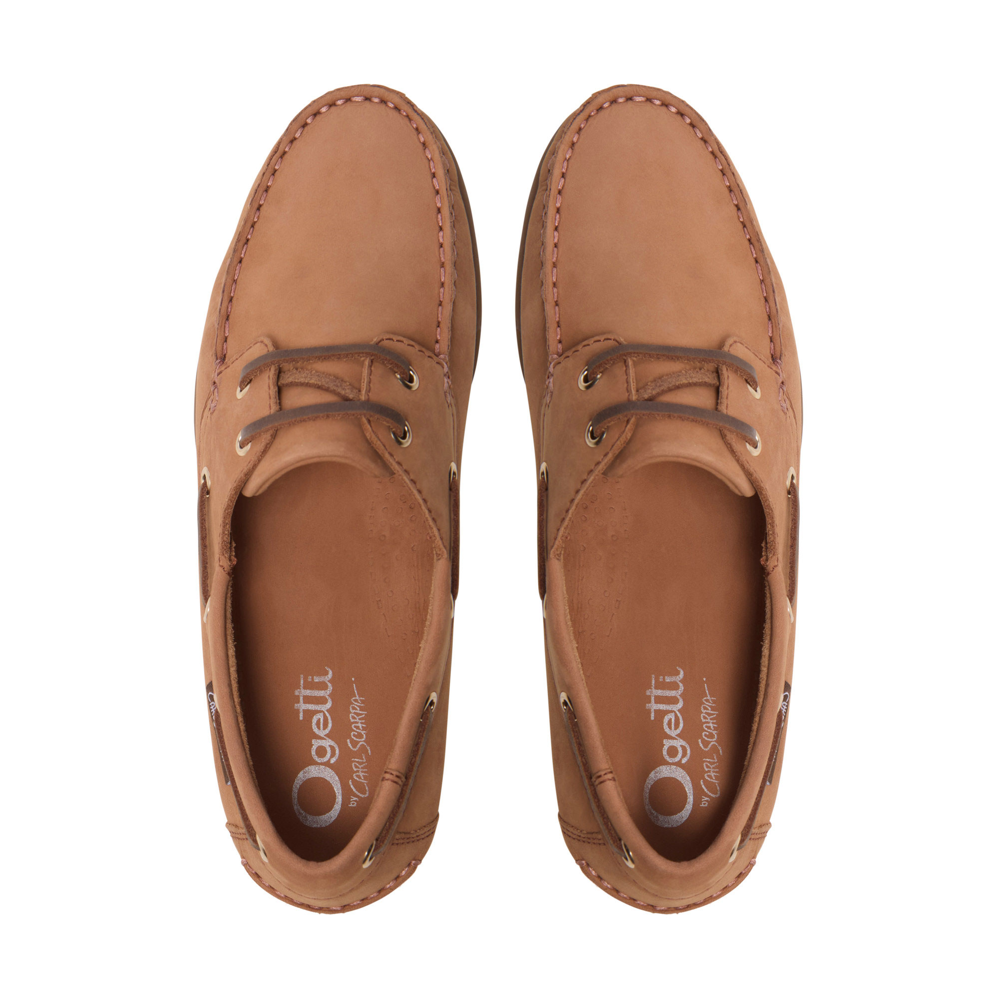 - Boat-style loafer, nubuck suede upper, moccasin-inspired silhouette, clean stitching, lace detailing, lightweight tonal sole, leather laces, metal eyelets, softly padded collar, lightweight, flexible sole, leather-lined interior, cushioned footbed, durable rubber outsole