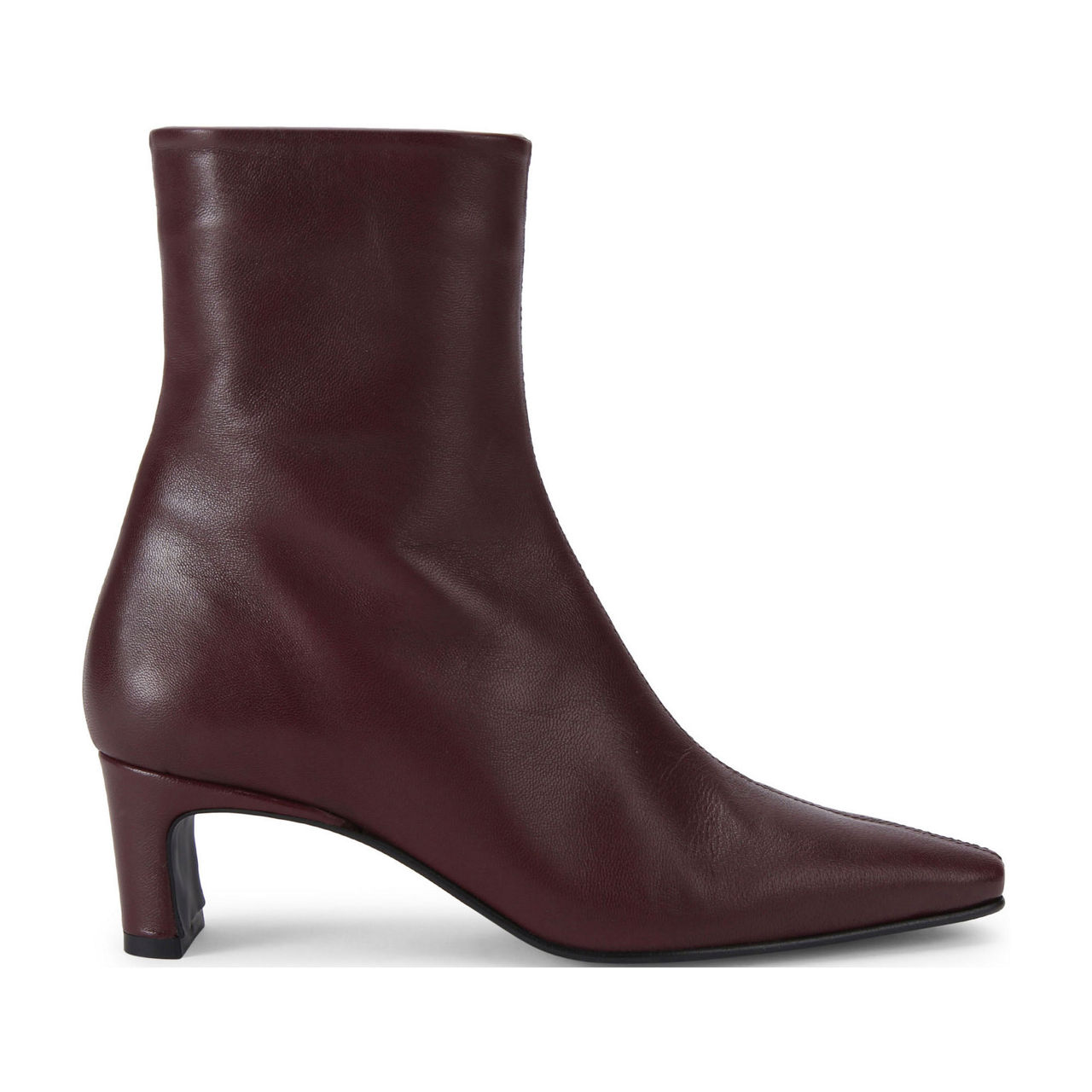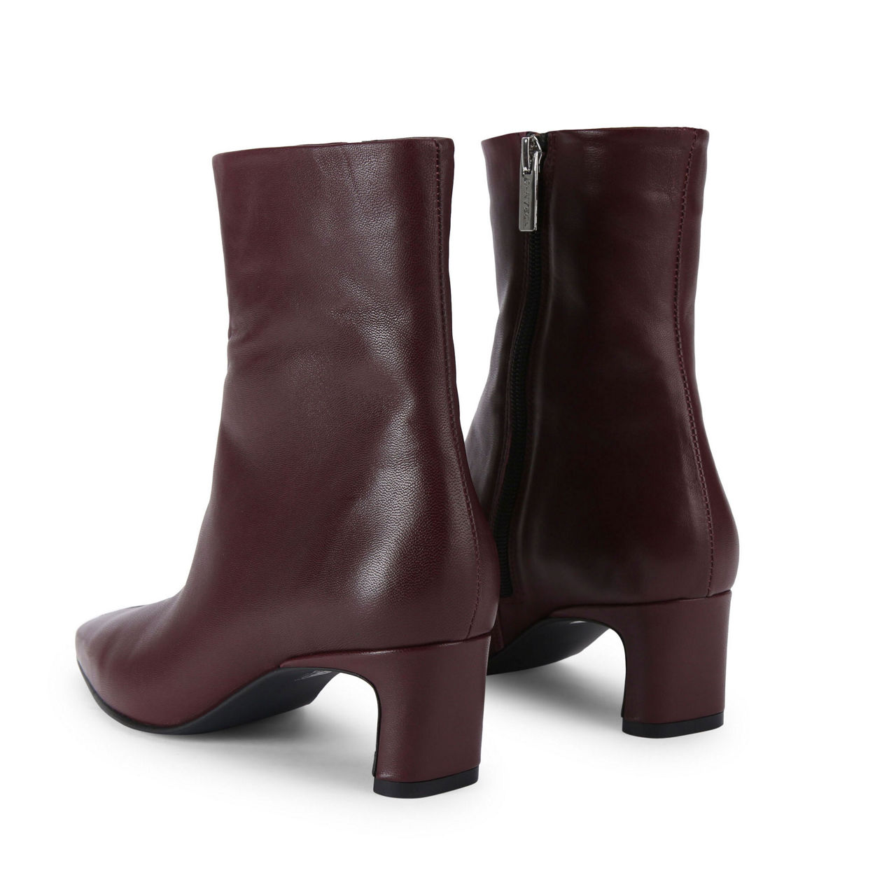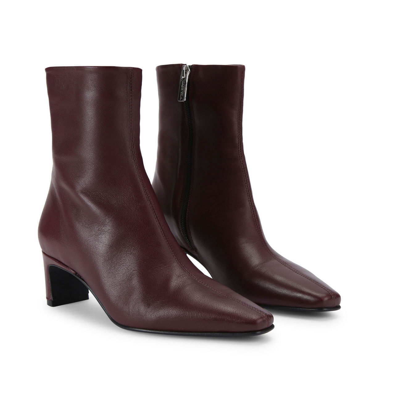 • Ankle length, softly squared toe, flexible cuff, block heel